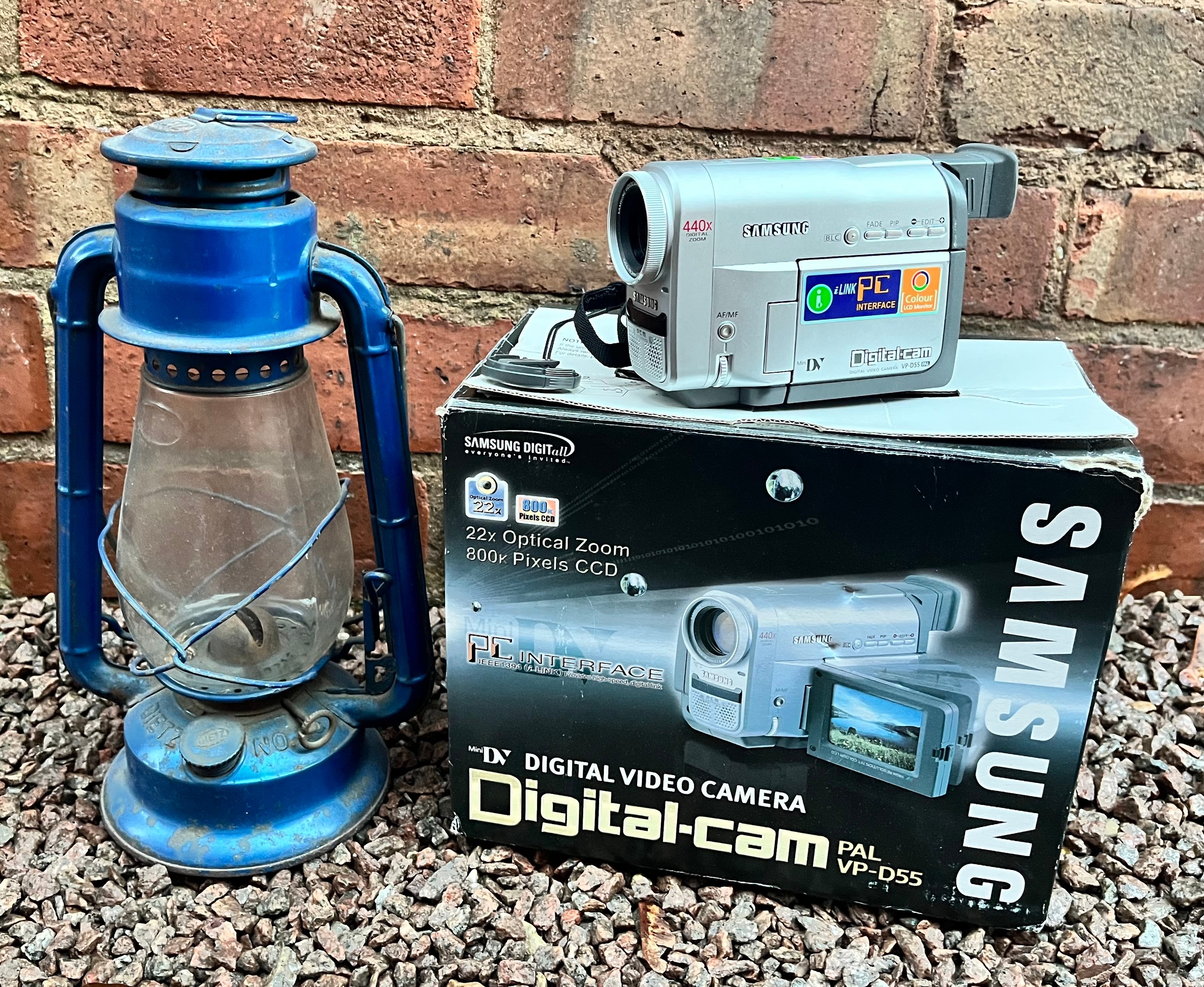 BOXED SAMSUNG DIGITAL CAMERA AND A HURRICANE LAMP