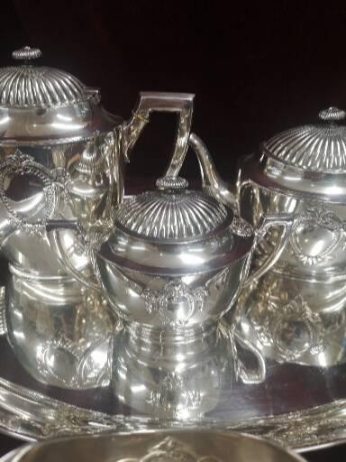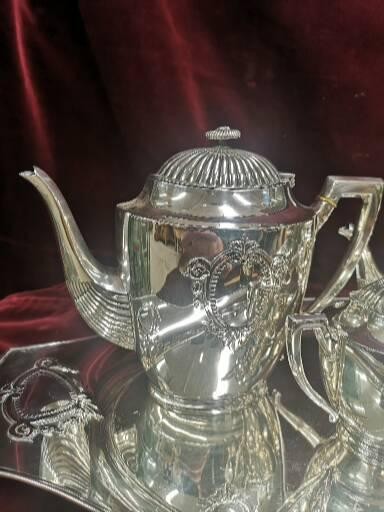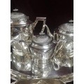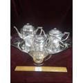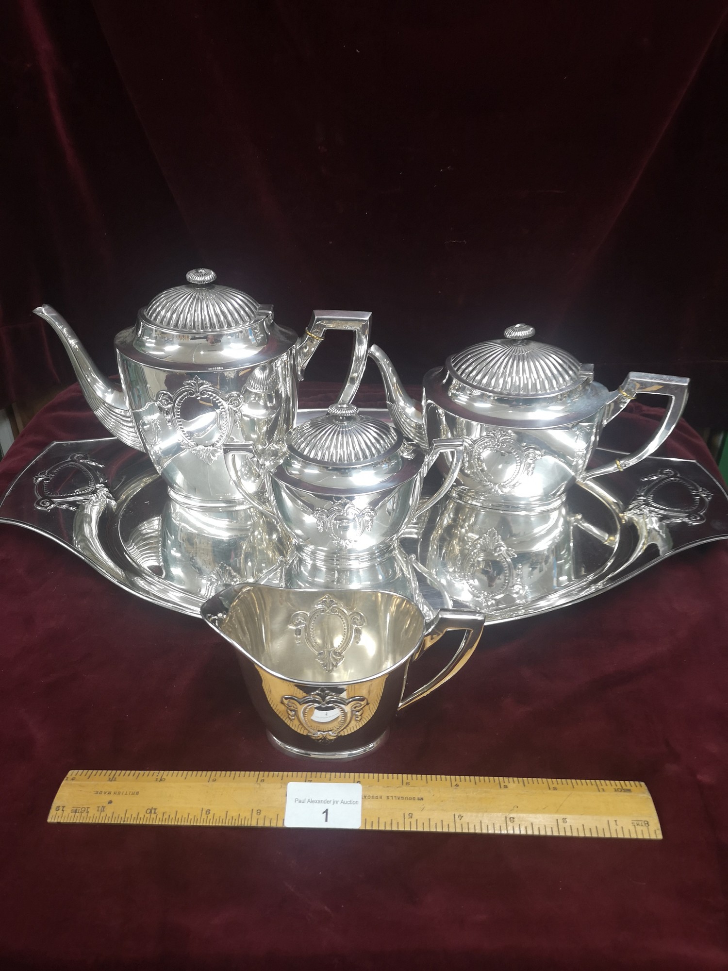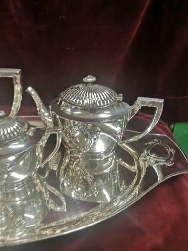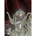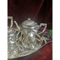 Contential White Metal 4 piece art nouveau tea set includes tray. 2930g