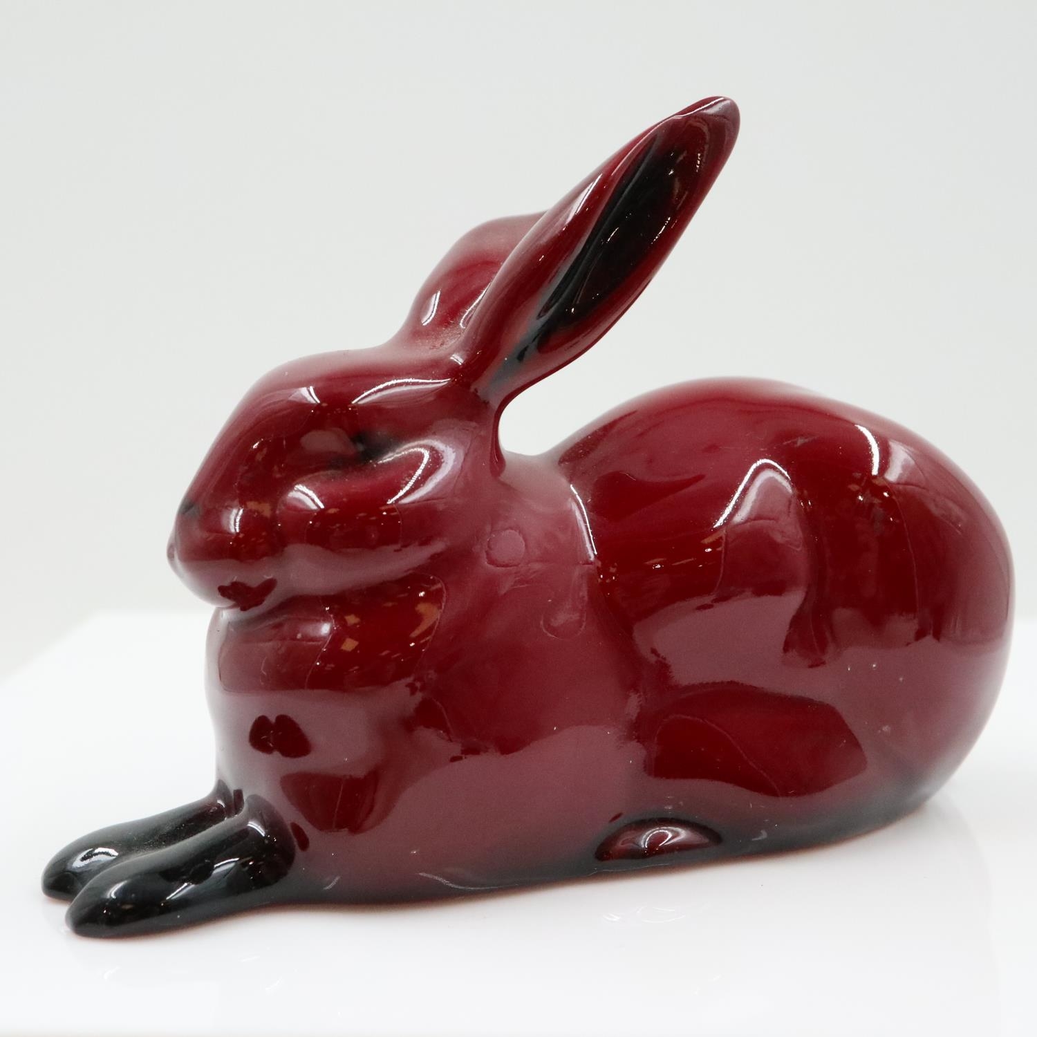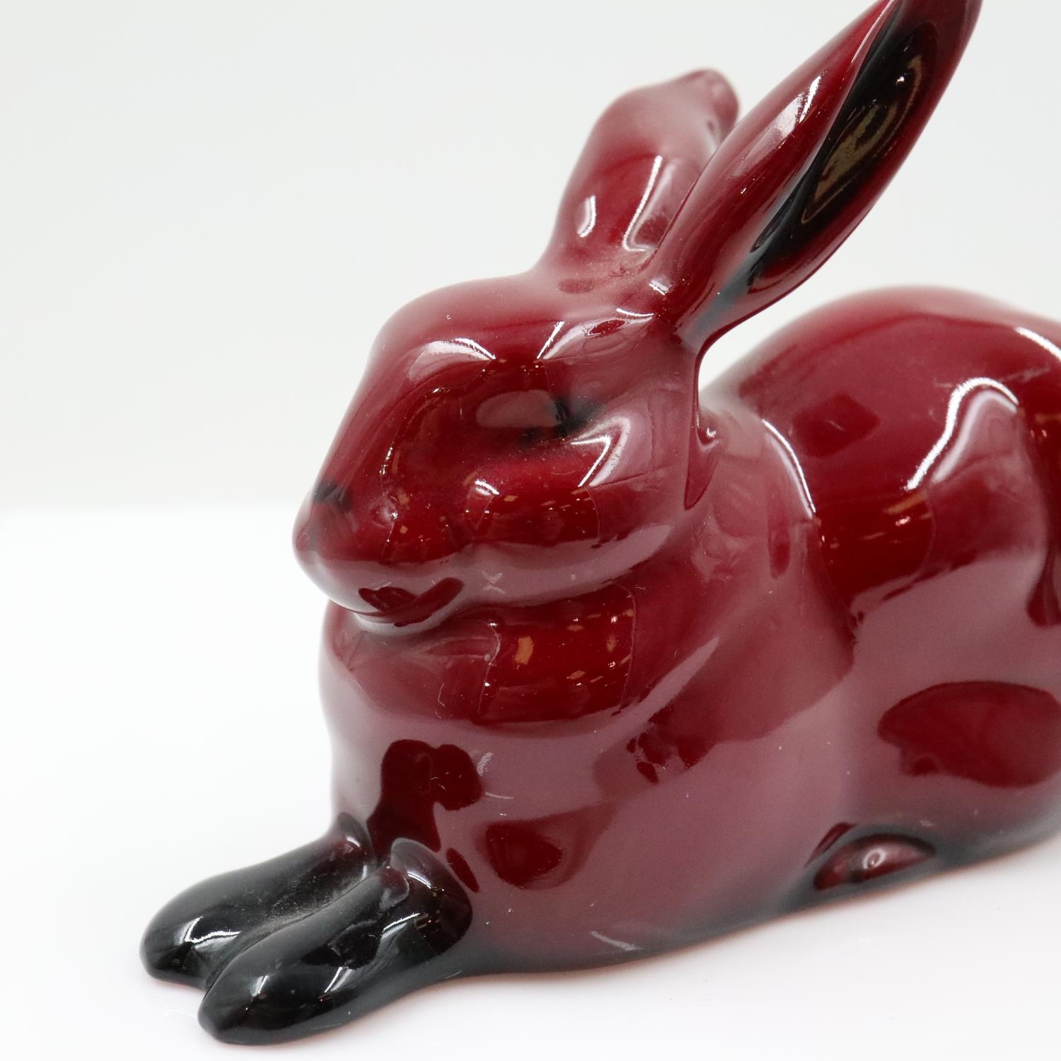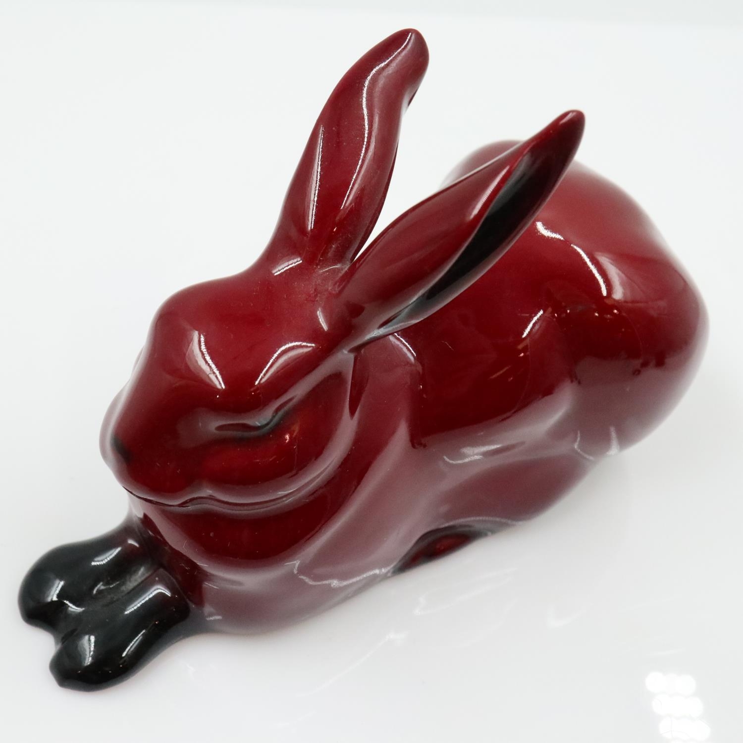 Royal Doulton flambé reclining hare, no cracks or chips, L: 11 cm. UK P&P Group 2 (£24+VAT for the first lot and £5+VAT for subsequent lots)