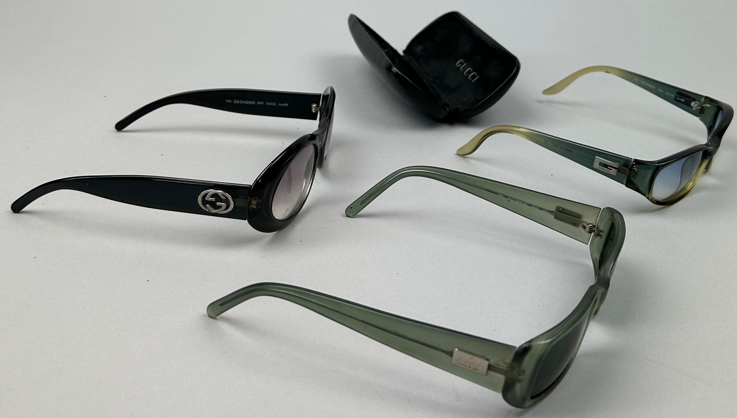 THREE PAIRS OF GUCCI SUNGLASSES, one in a case.