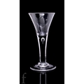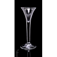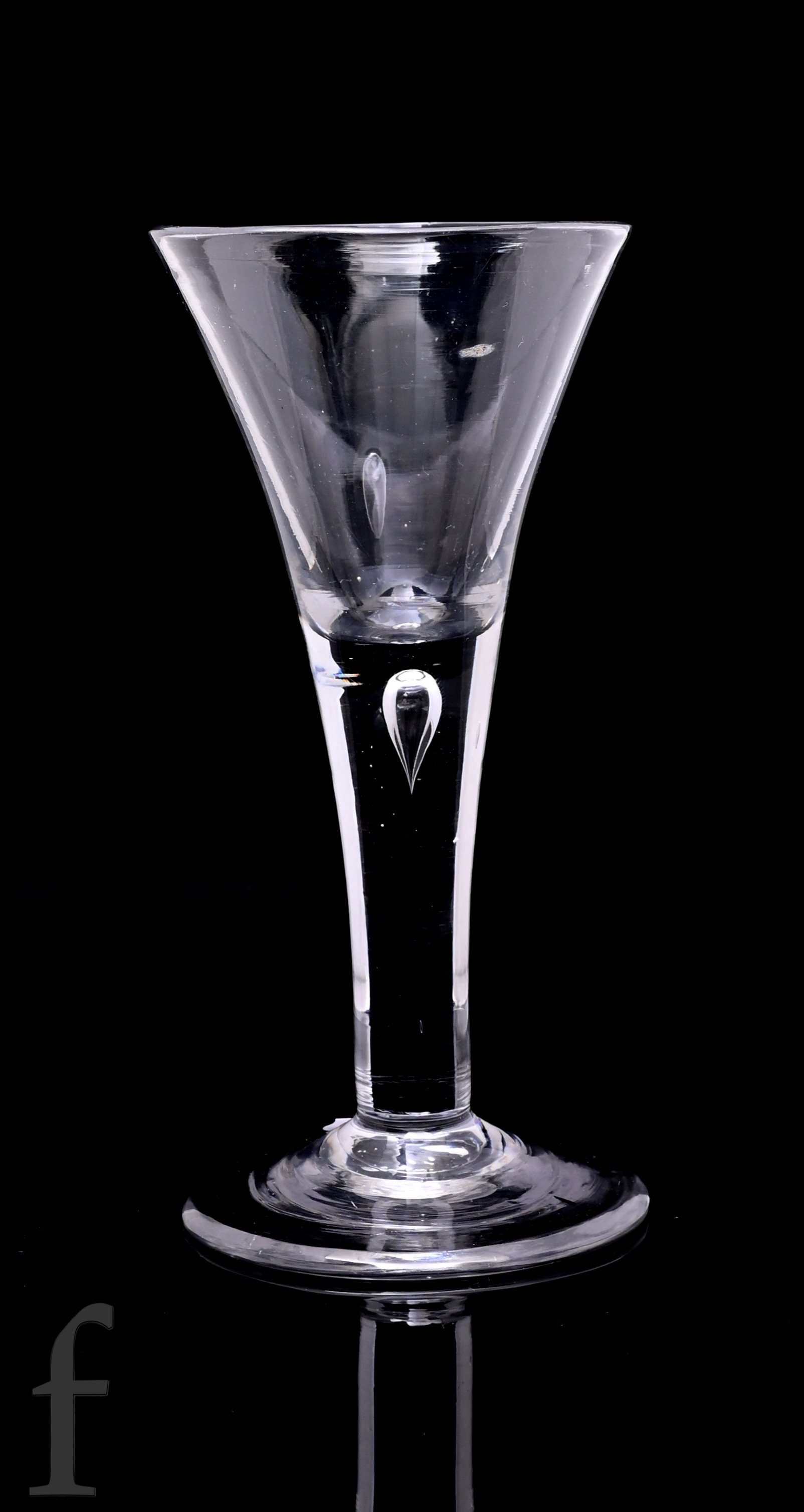 An 18th Century drinking glass circa 1740, the drawn trumpet bowl above a plain stem with upper tear, raised to a shallow conical foot, height 14.5cm, restored.
