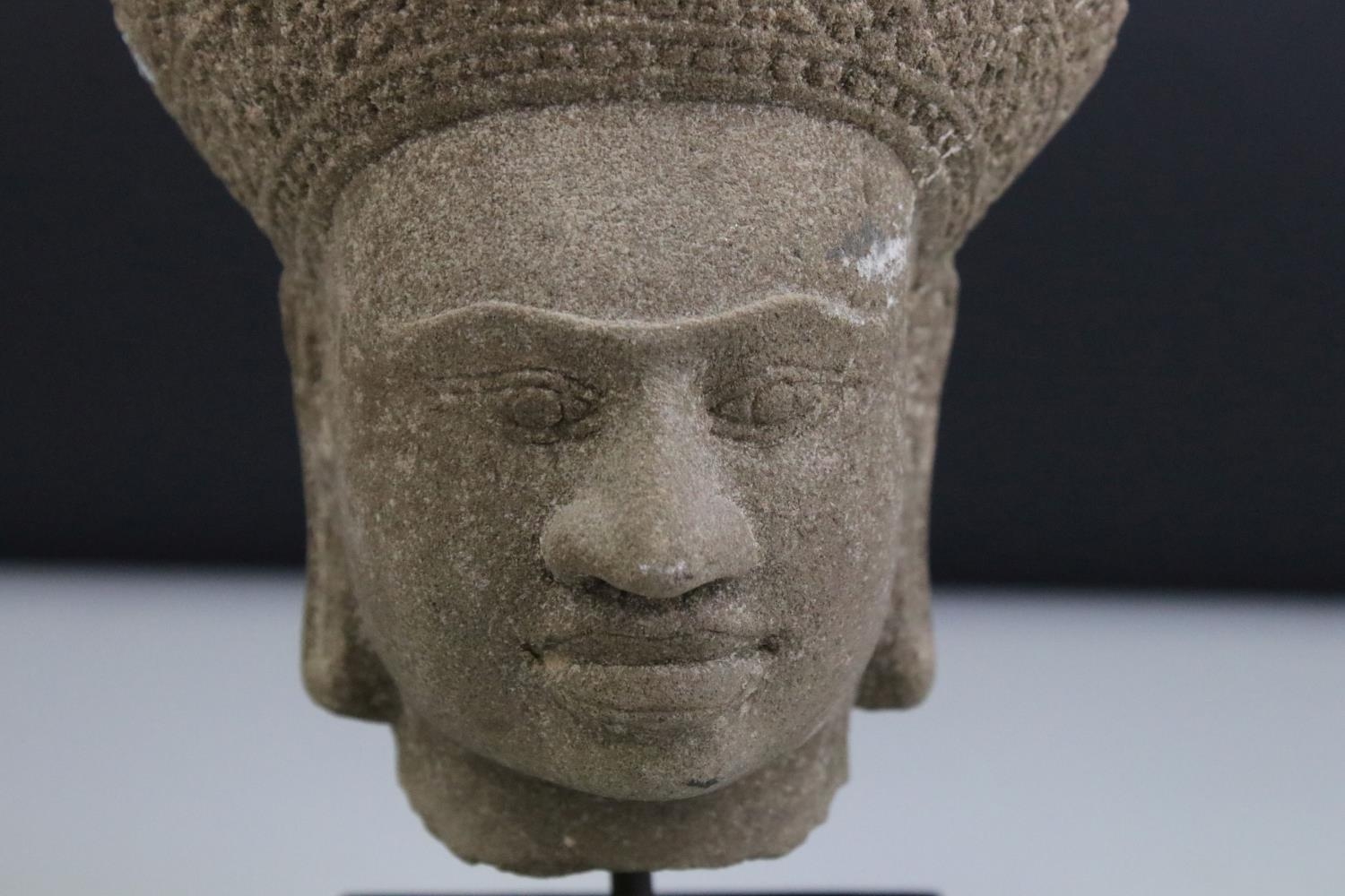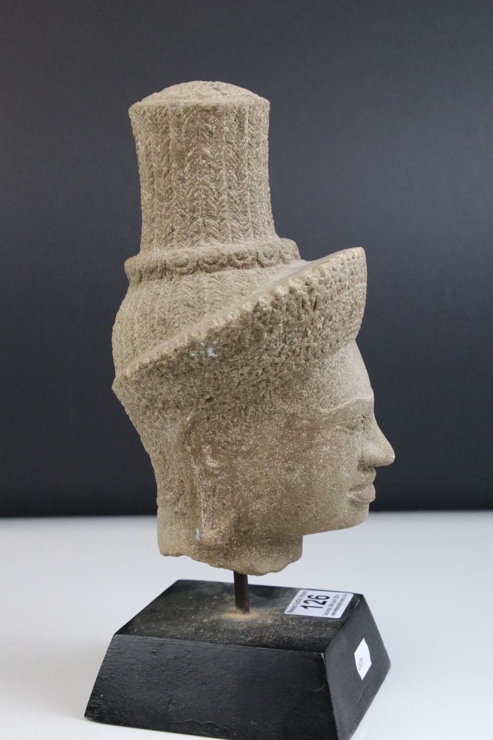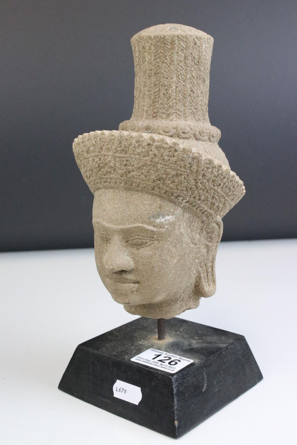 Composite Stone Head in the form of an Ethnic / Atzec Man, raised on a stand, 26cms high