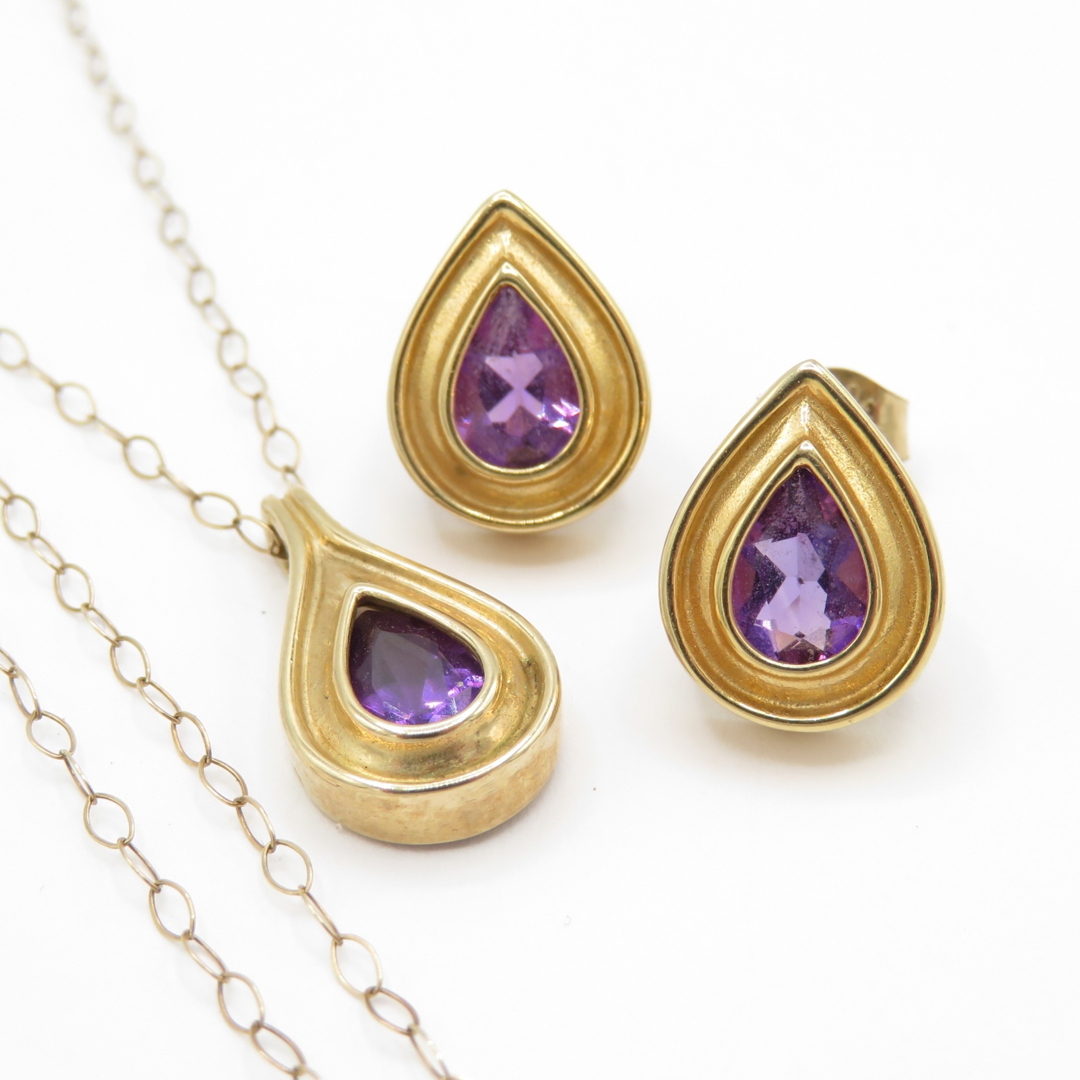 9ct gold amethyst earrings and necklace set (4.3g)