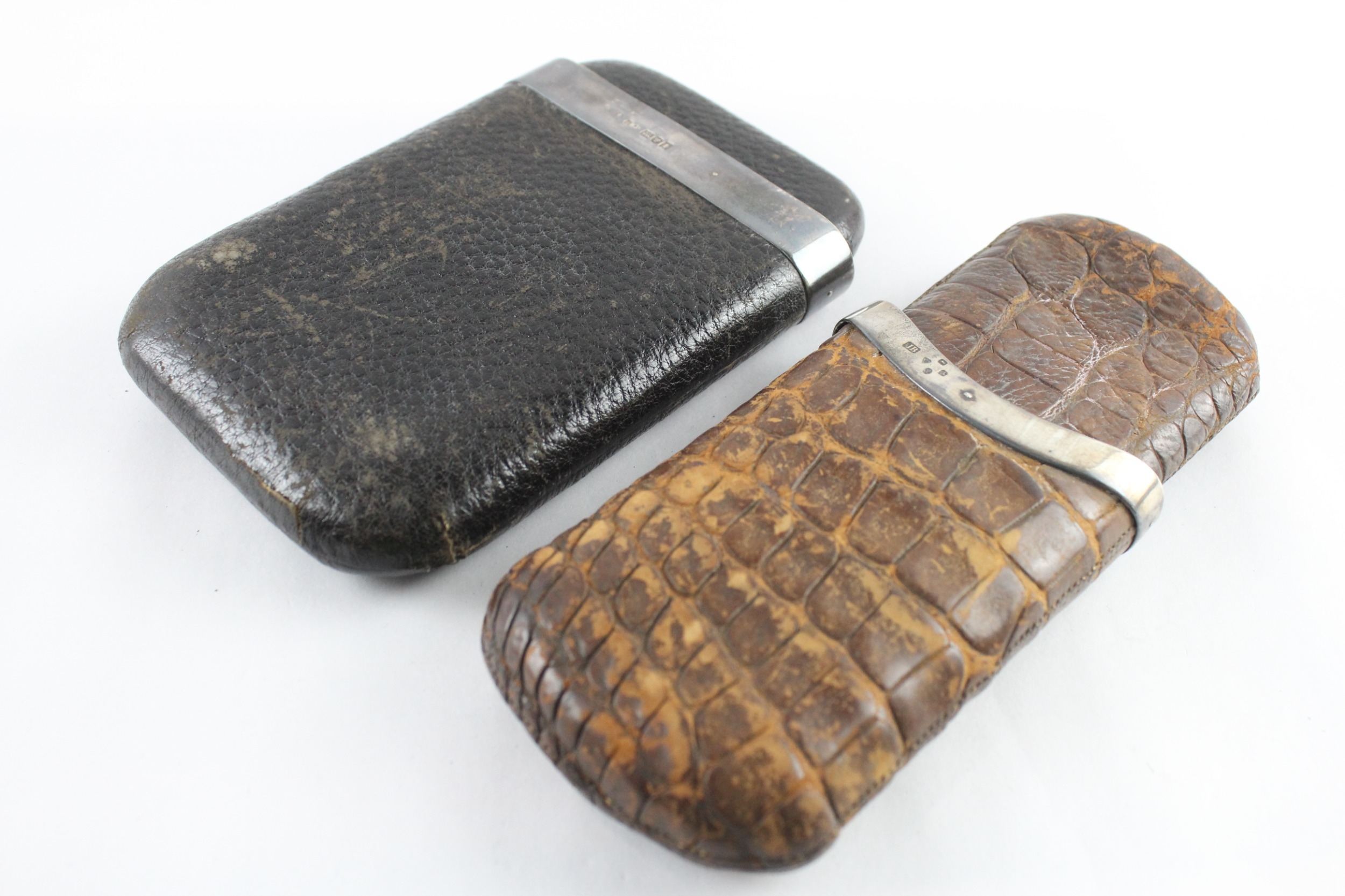 2 x Antique .925 Sterling Silver Detailed Leather Cigar Cases 180g