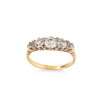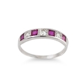 A DIAMOND AND RUBY SEVEN STONE RING, mounted in 18ct white g...