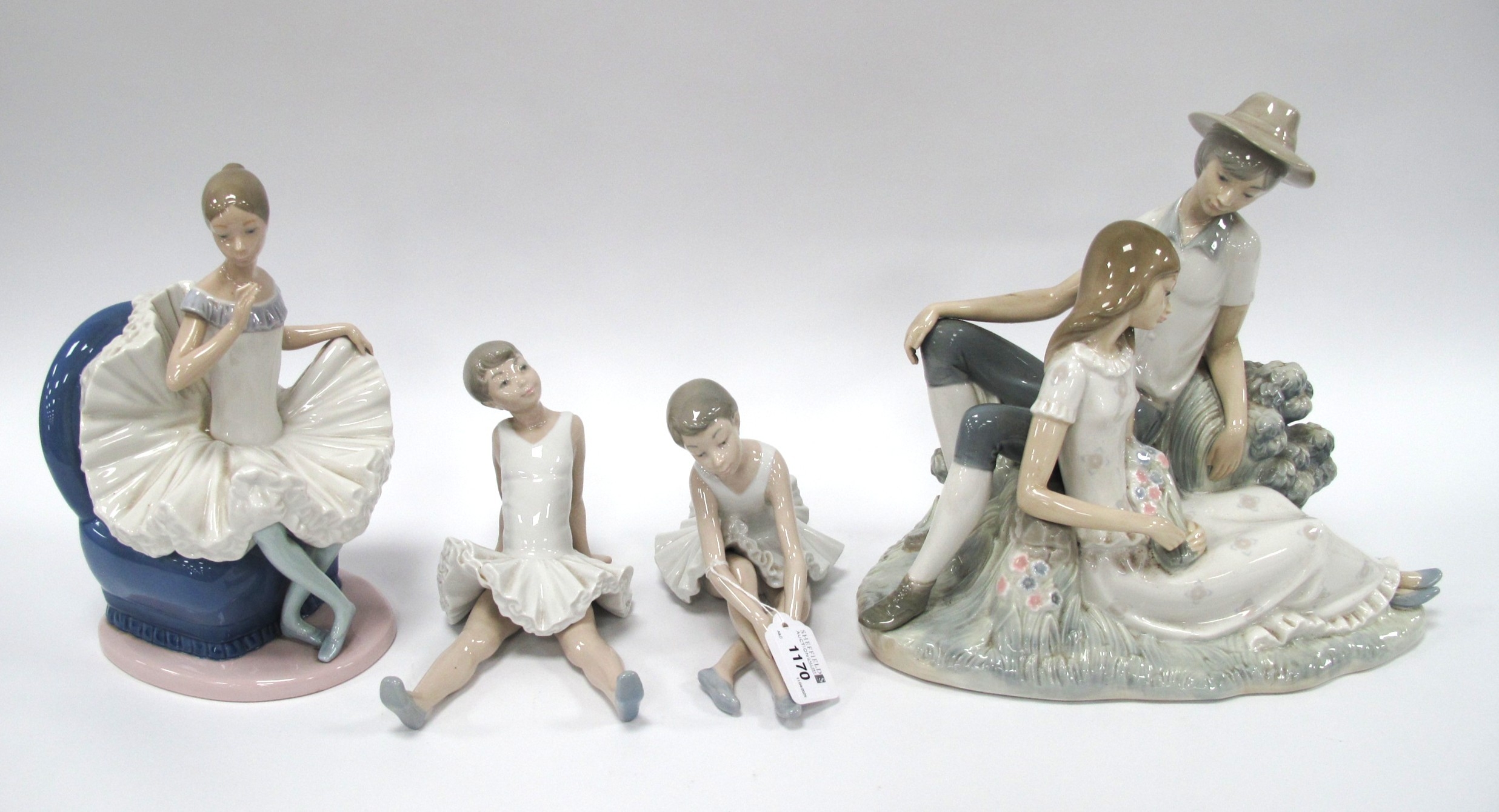 Nao Seated Courting Couple, 30cm wide and three ballerinas.