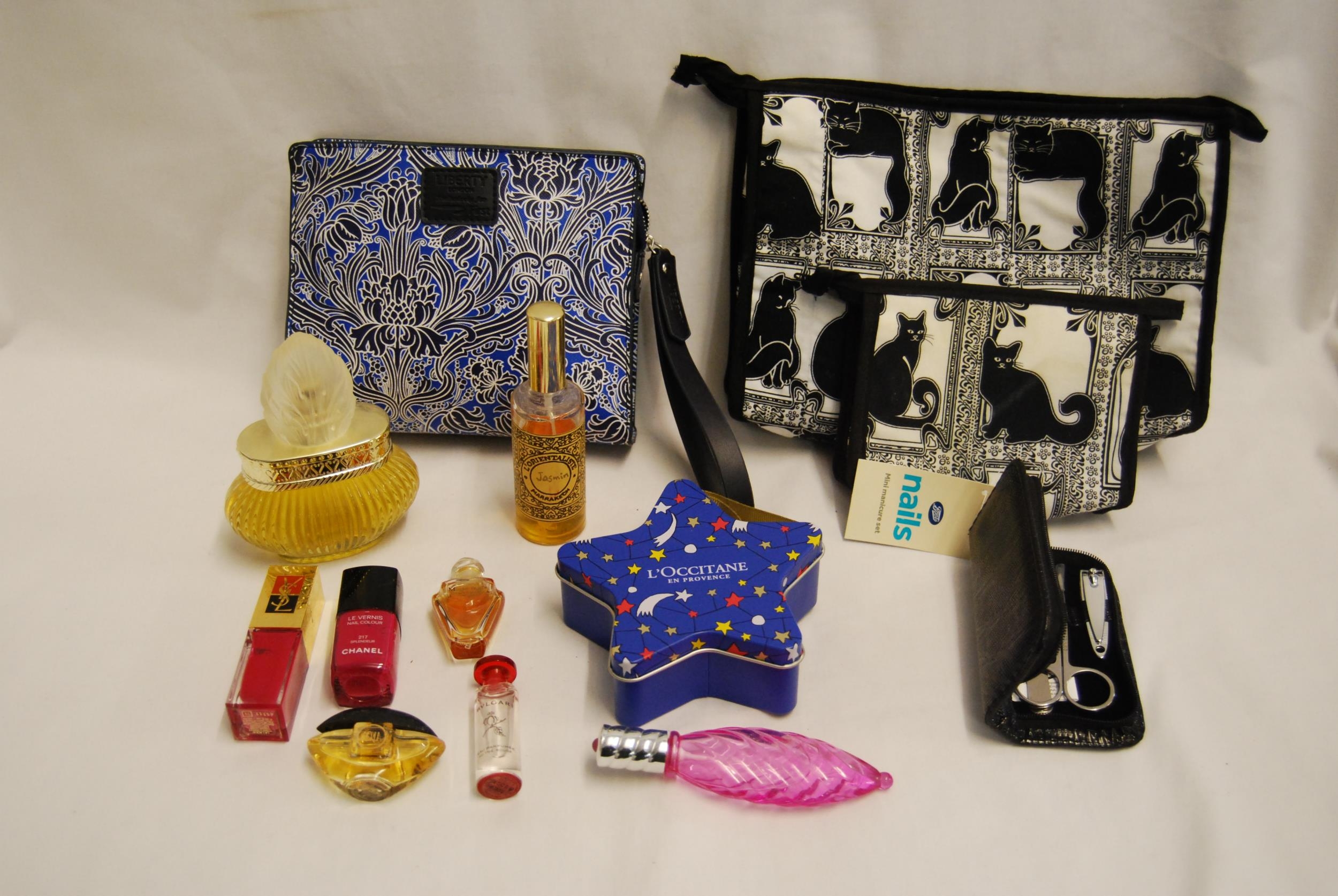 LIBERTY LONDON "EXCLUSIVELY FOR FIRST" TRAVEL BAG & CONTENTS, PERFUMES, YSL & CHANEL NAIL VARNISHES, ETC