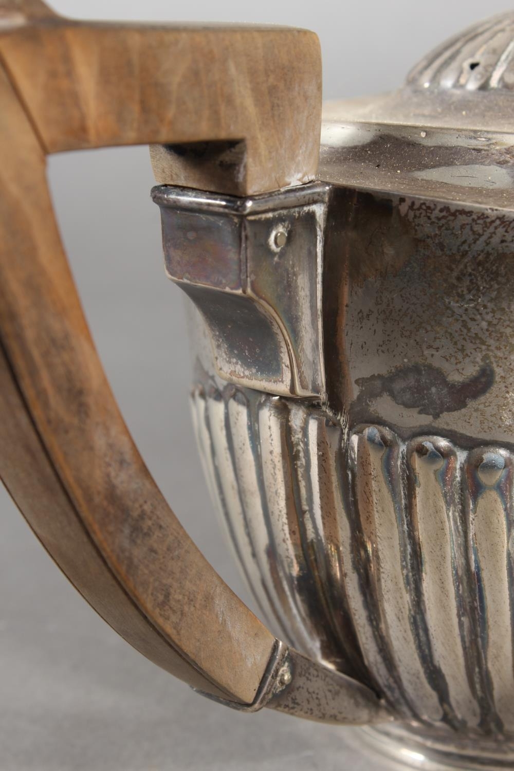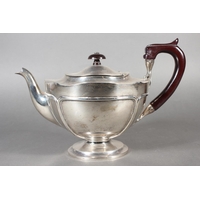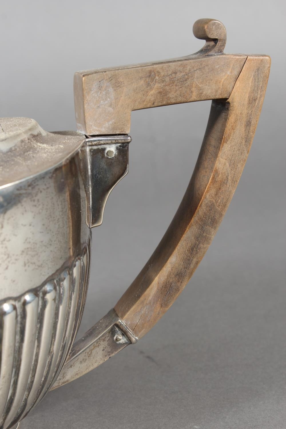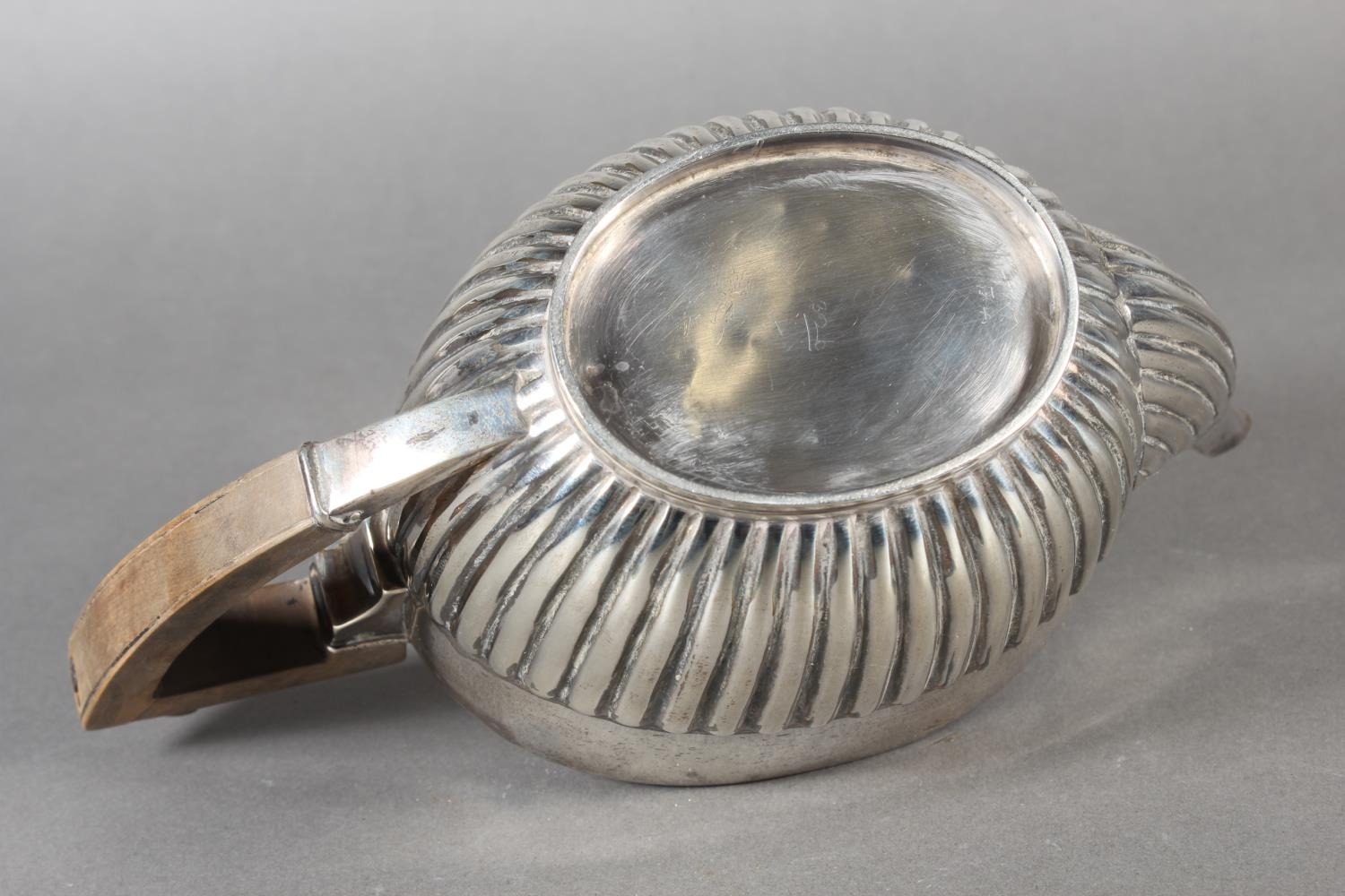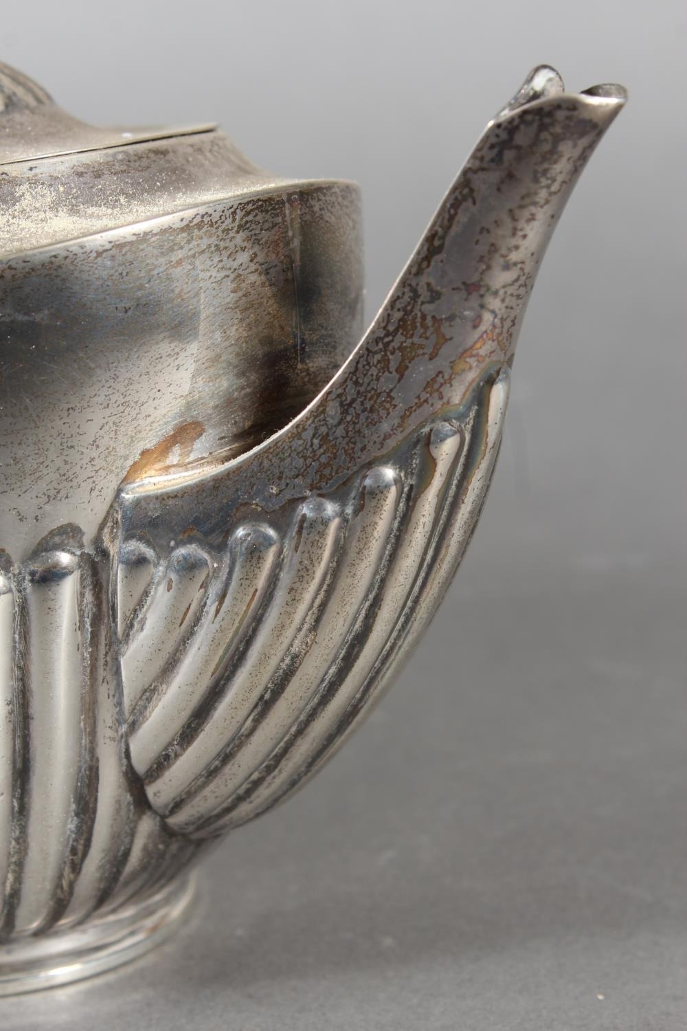 Harlequin three piece silver teaset of half gadrooned form, the teapot by William Hutton & Sons Ltd, London, 1894 and the sugar and cream, Birmingham, 668g gross.