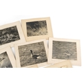 A collection of black and white bird photographs, mostly signed by G R Duval including a greenfinch, teal duck and Merlin on nest, each mounted and pencil signed, the largest 19.5cm x 24cm.