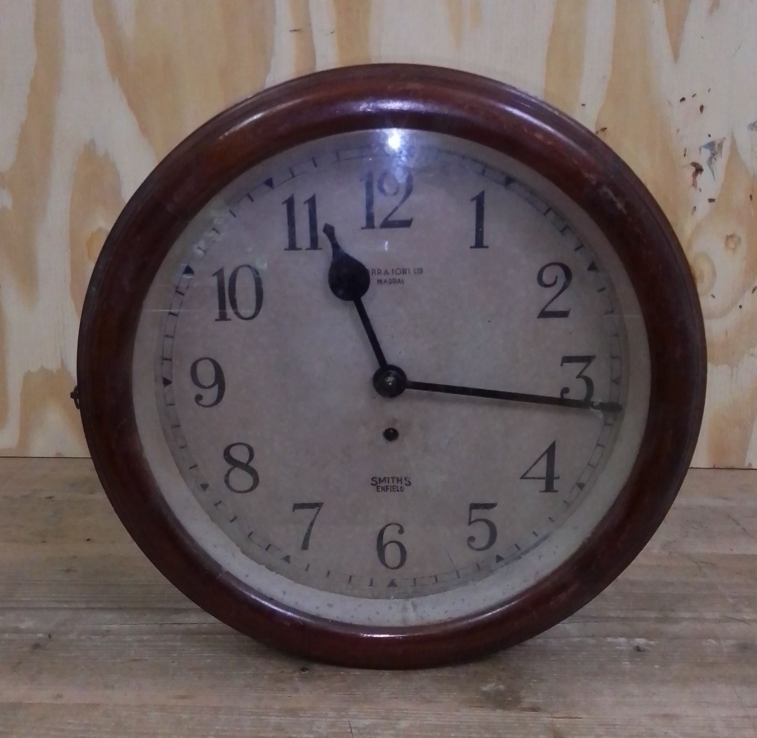 A Smiths Enfield round wall clock, retailer Borr & Sons Ltd Madras, diam. 36cm.