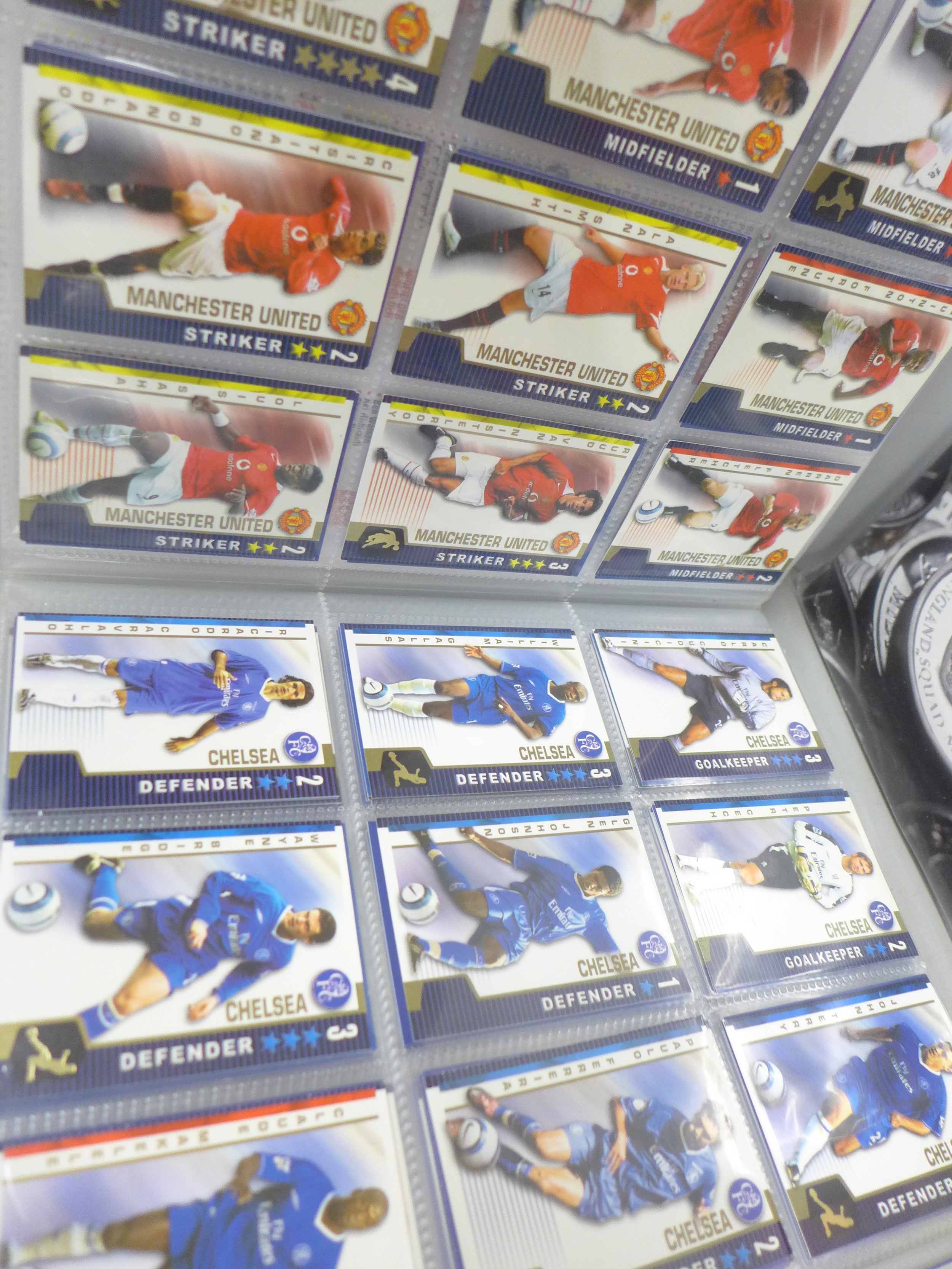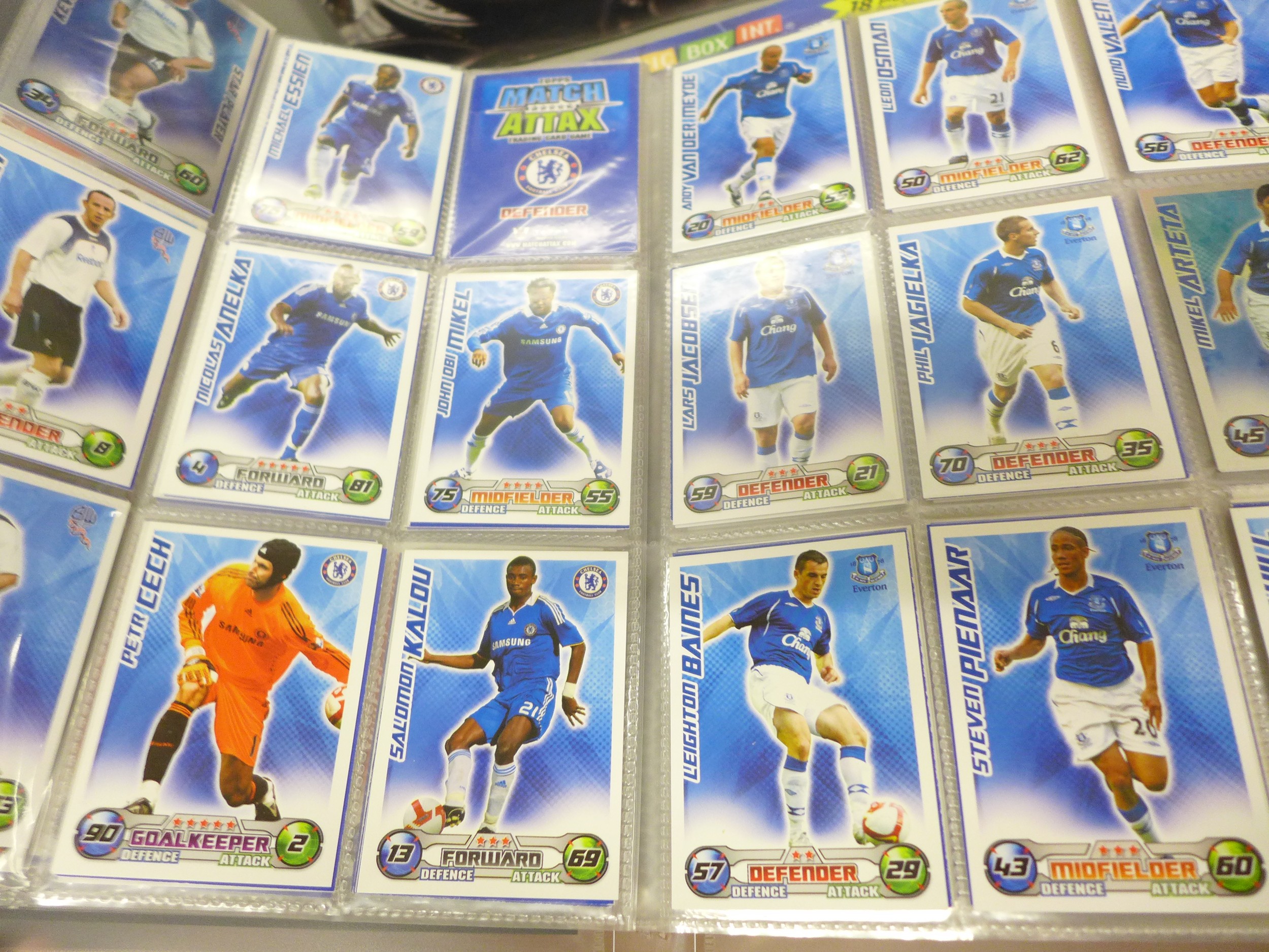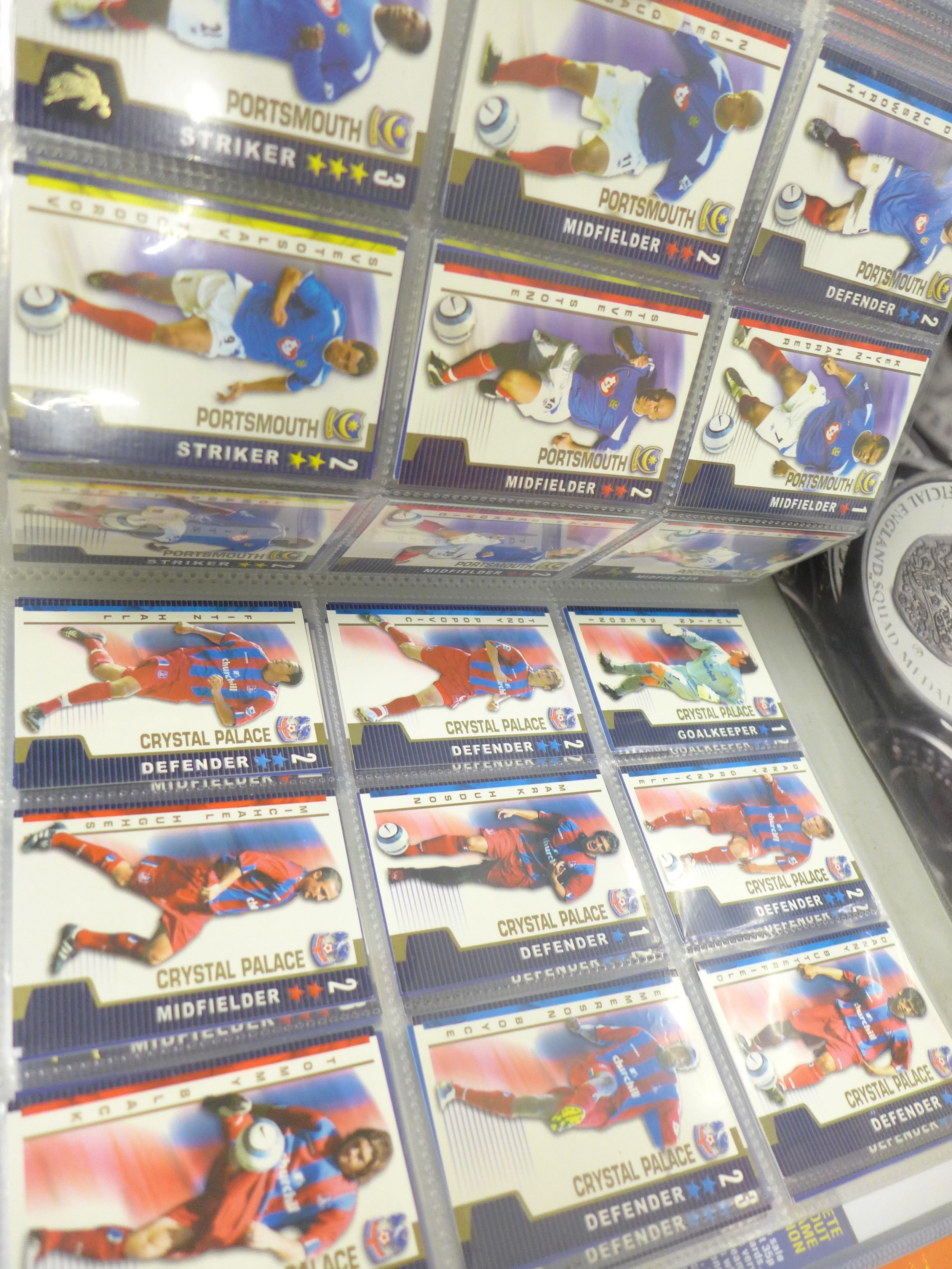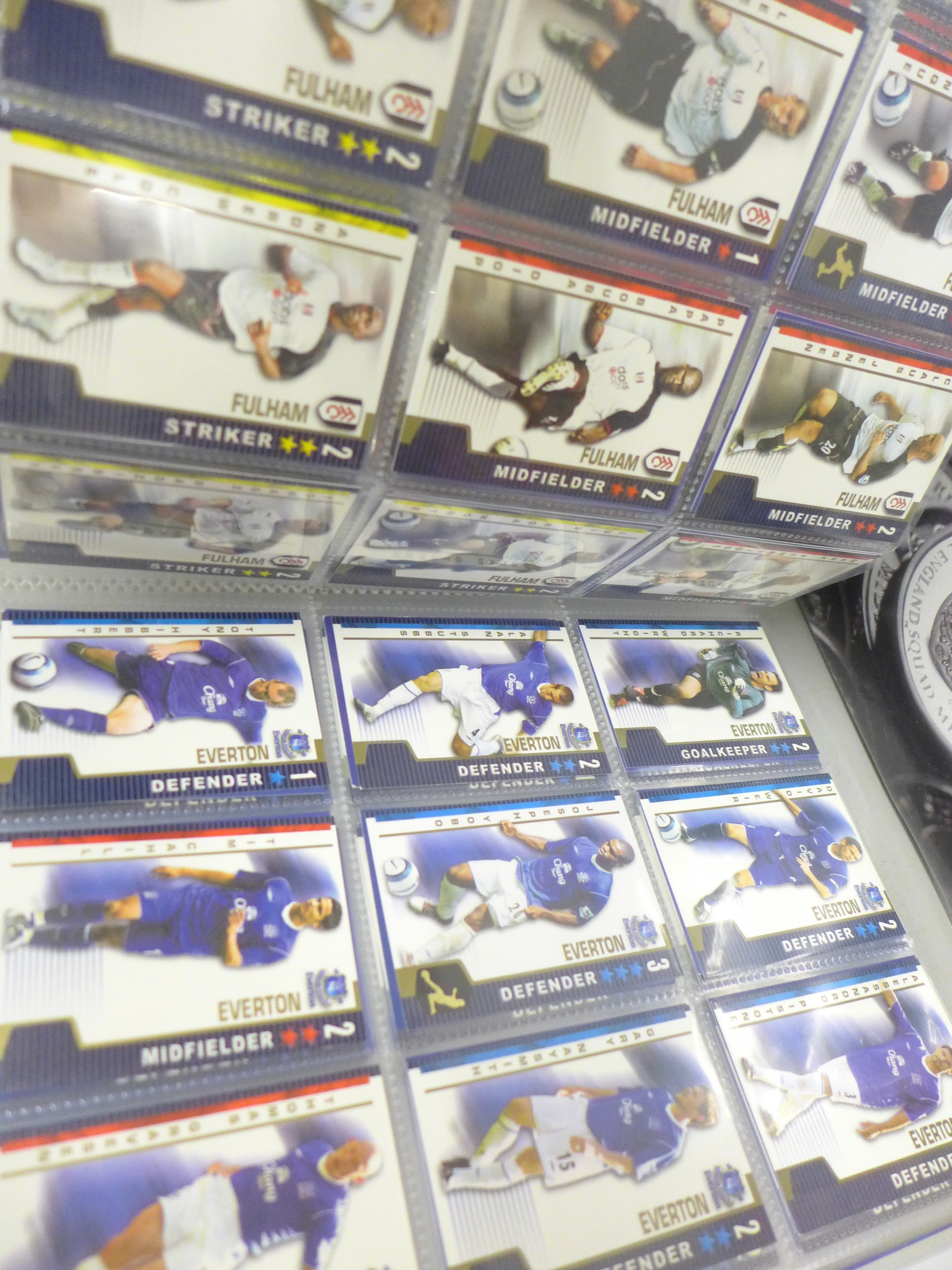Collection of football trading cards and albums to include World Cup Soccer Stars Mexico 70 (incomplete), Trading Card Game Shoot Out, Topps Match Attax 2008-2009, and large collection of loose The Sun Soccer Cards