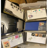 Assorted world stamps, medallic covers and other items (box)
