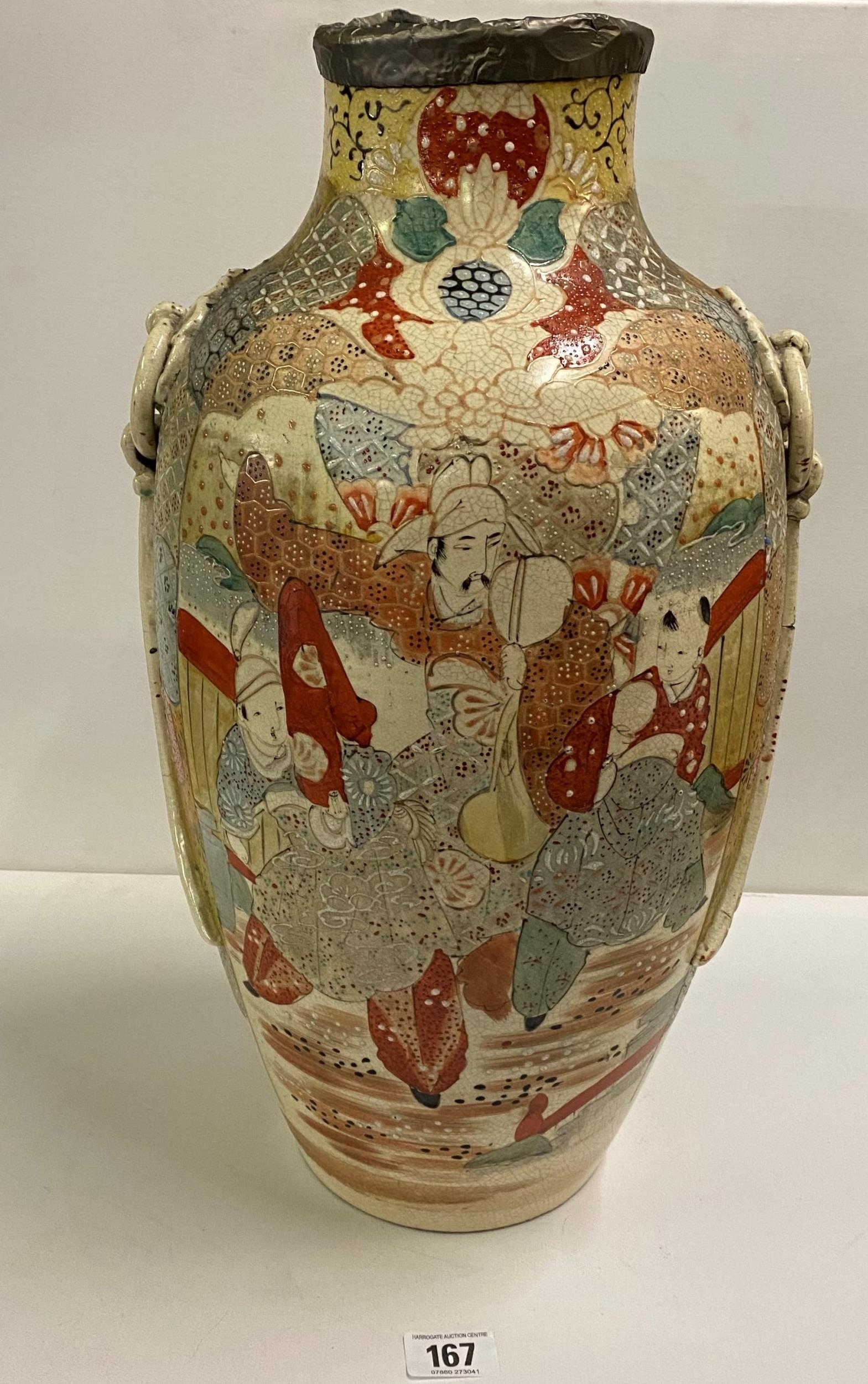 Tall Antique Oriental Samurai satsuma vase 17” tall