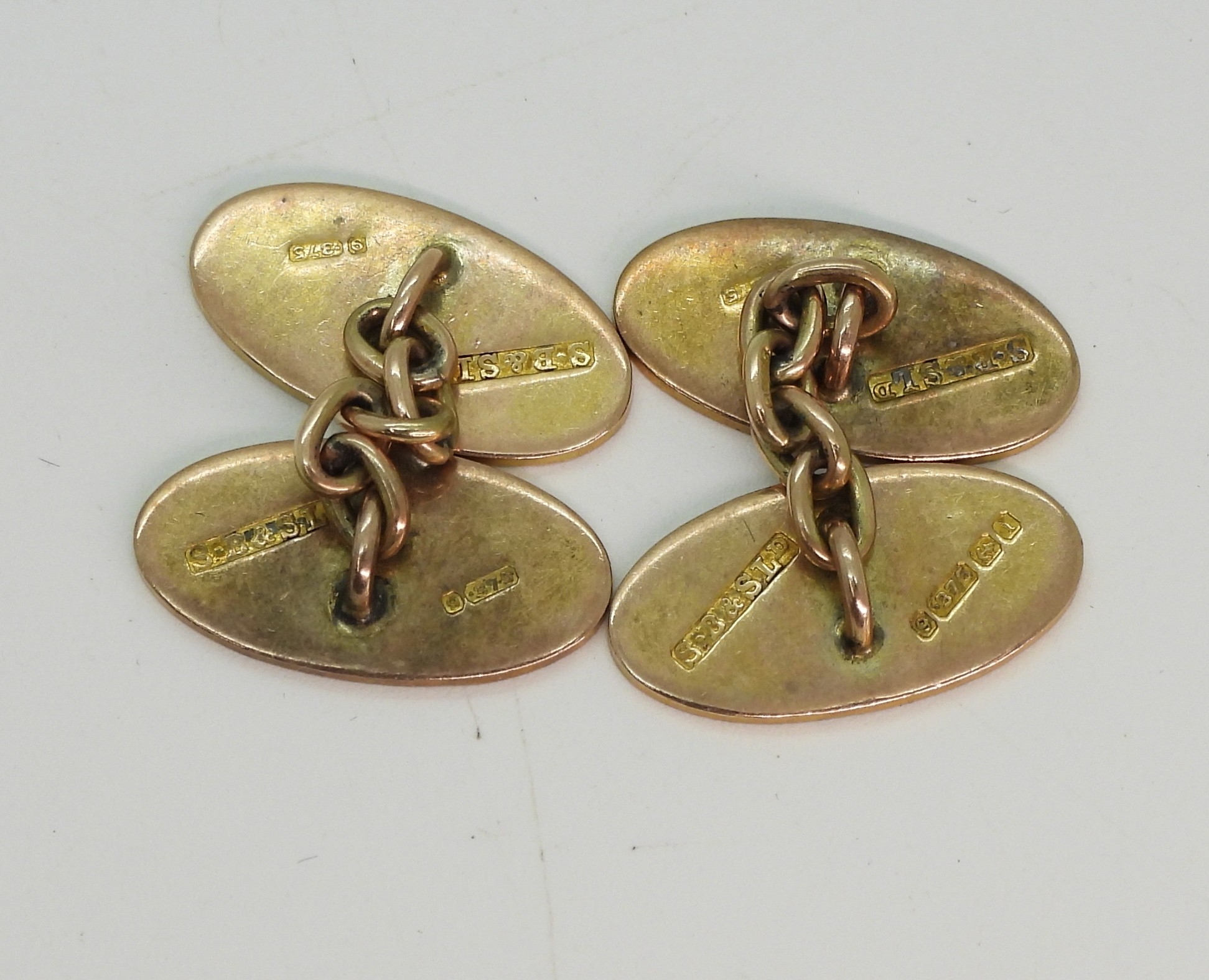 A pair of rose gold floral engraved cufflinks, hallmarked Birmingham 1908, weight 6gms