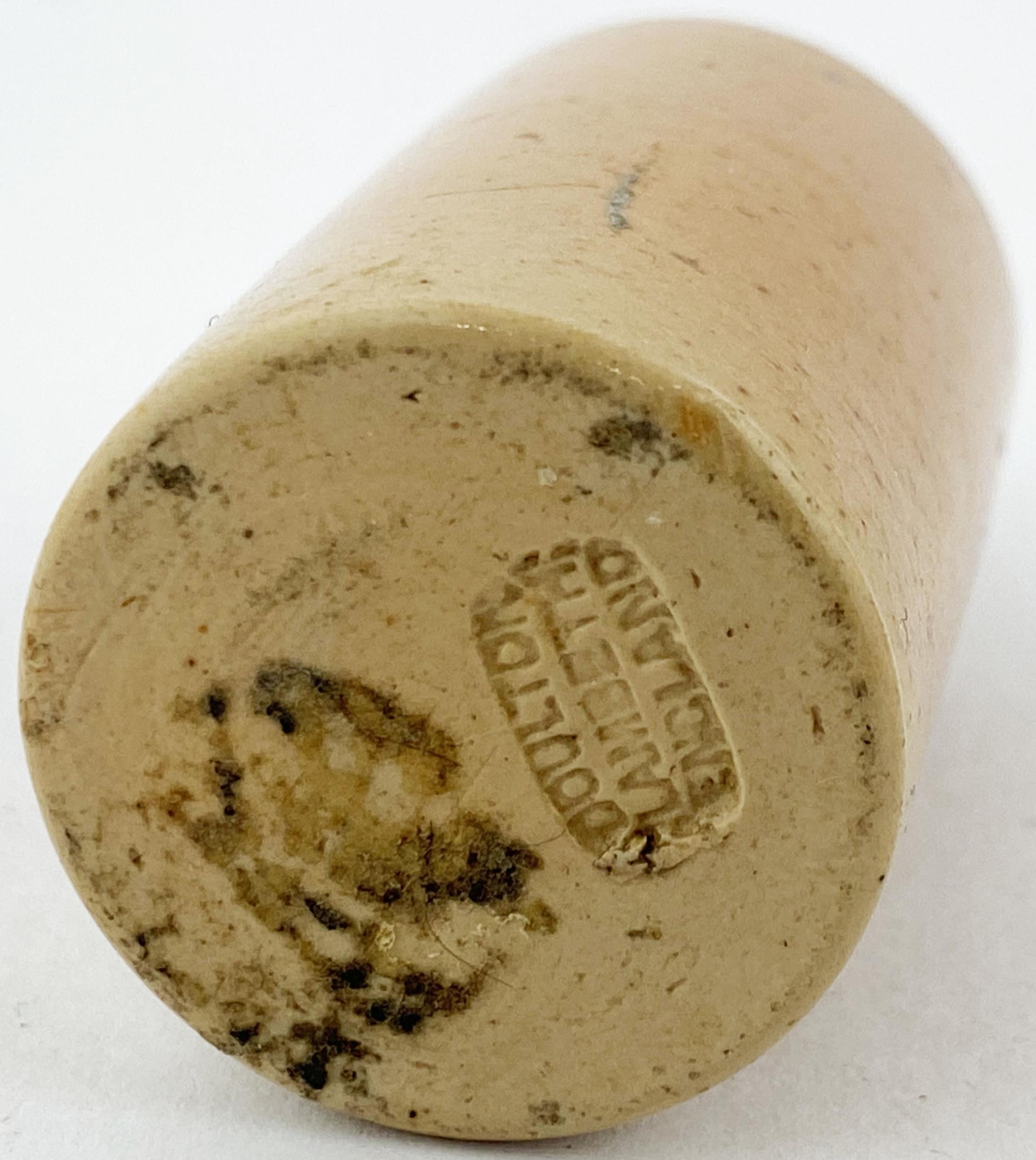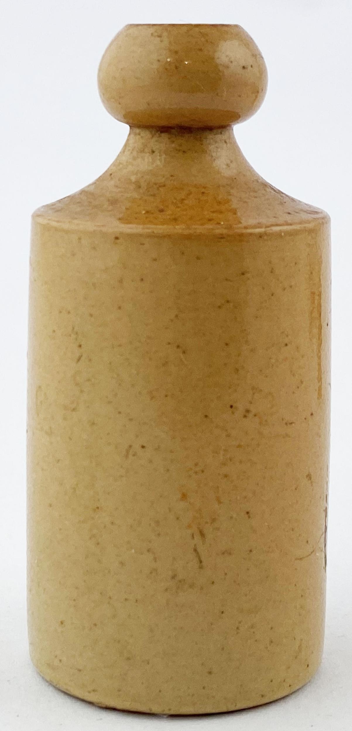 MINIATURE DOULTON GINGER BEER BOTTLE. 57mms tall. Tan salt glaze, blob lip. Base impressed. Exc/ A1.