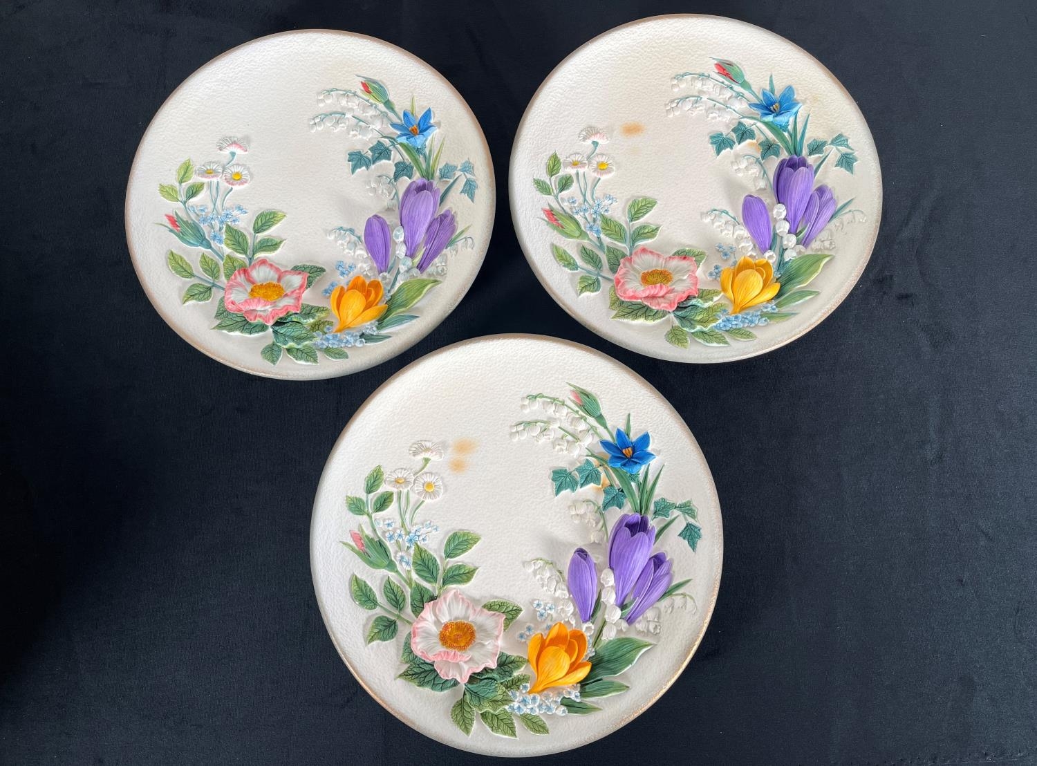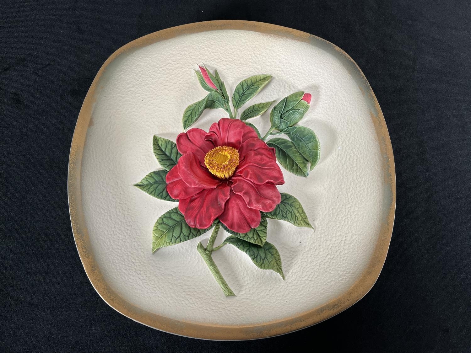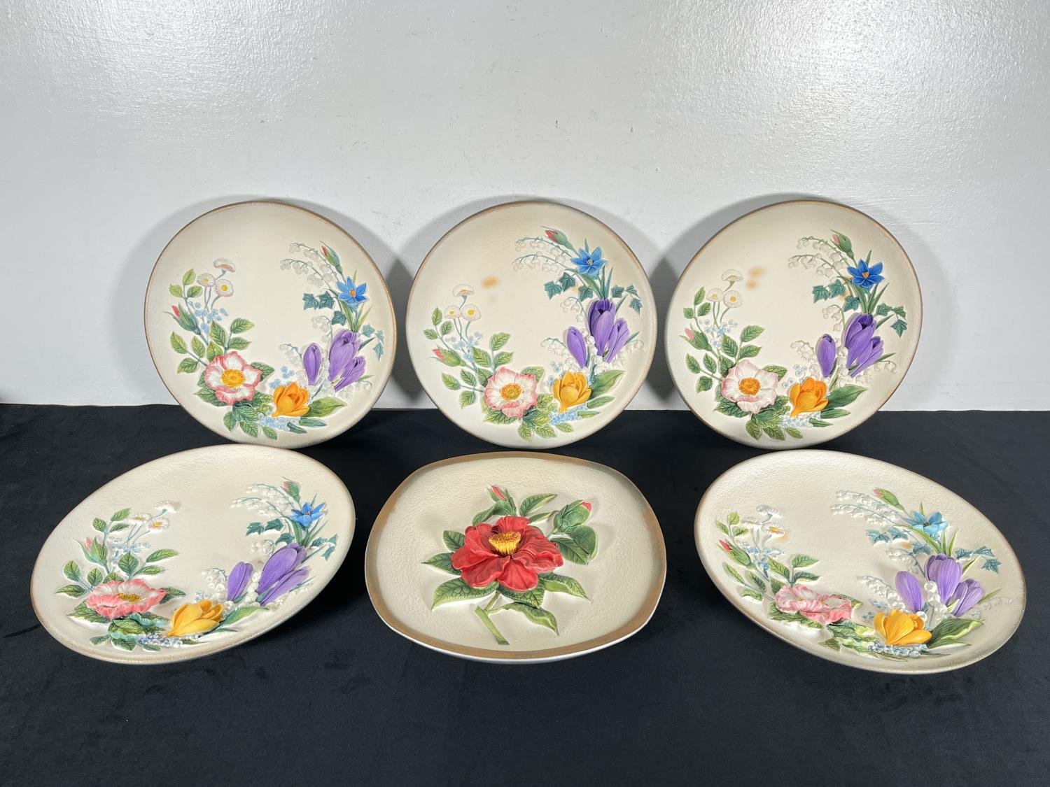 Six Bossons chalkware wall plaques comprising four Floral spray and one Camellia