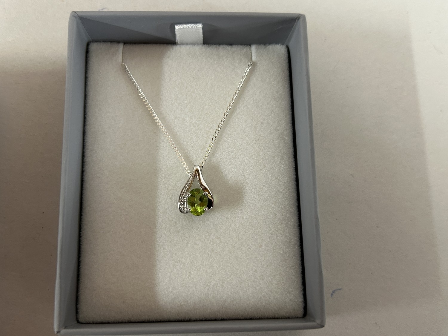 925 Silver Peridot & Diamond Pendant & Chain