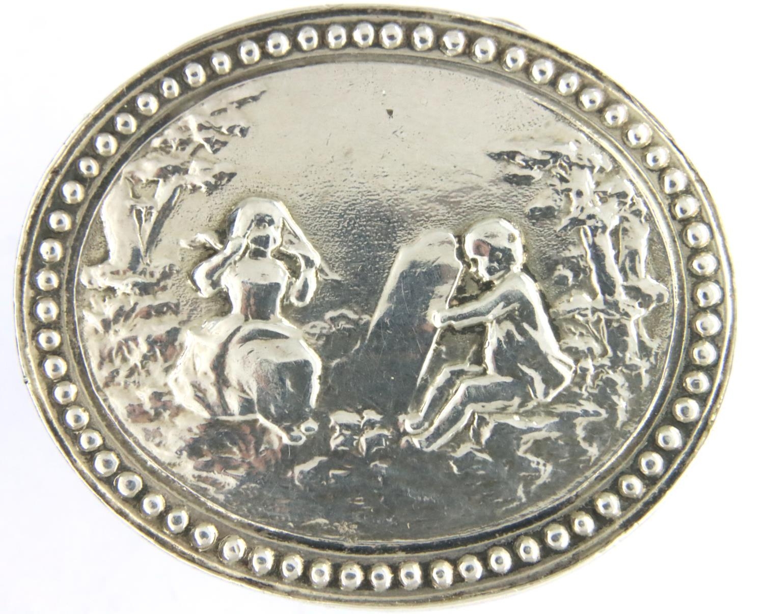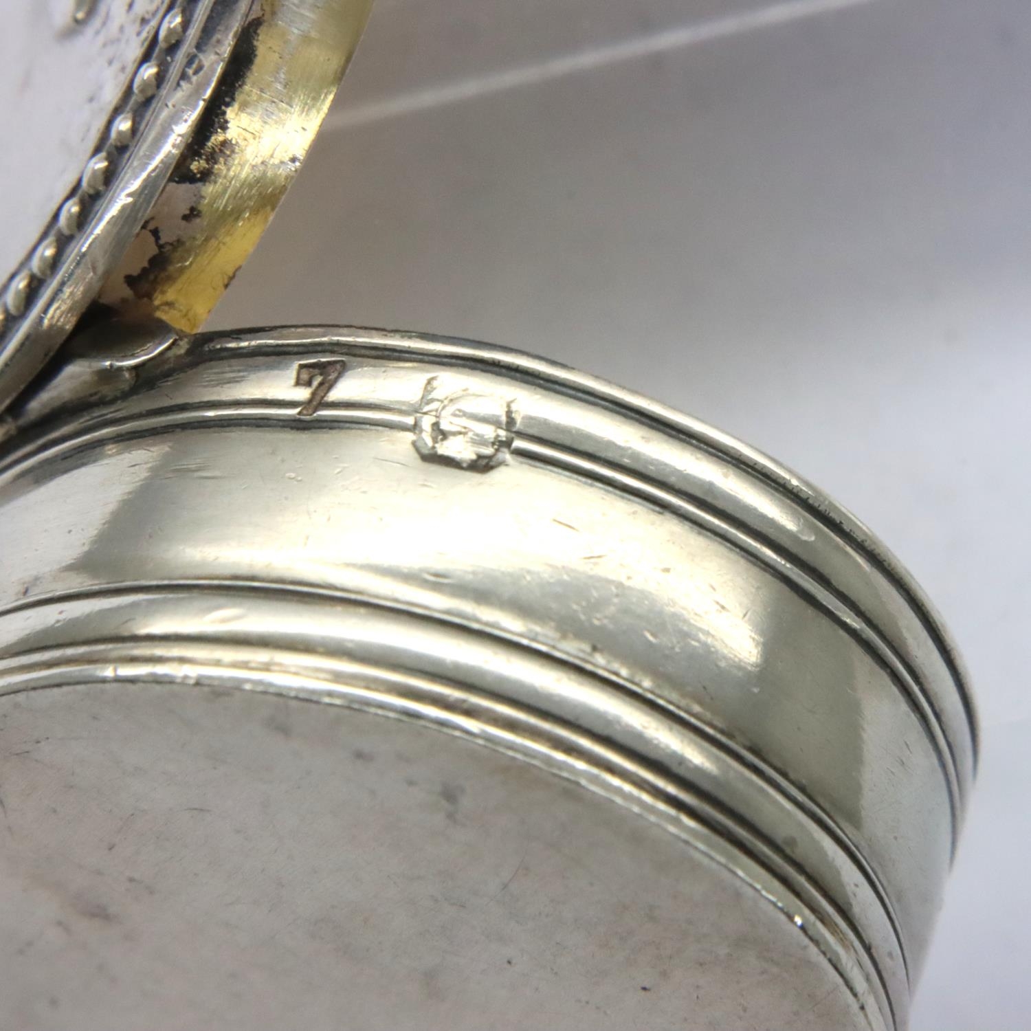 Dutch silver antique pill box, D: 33 mm, 16g. P&P Group 1 (£14+VAT for the first lot and £1+VAT for subsequent lots)