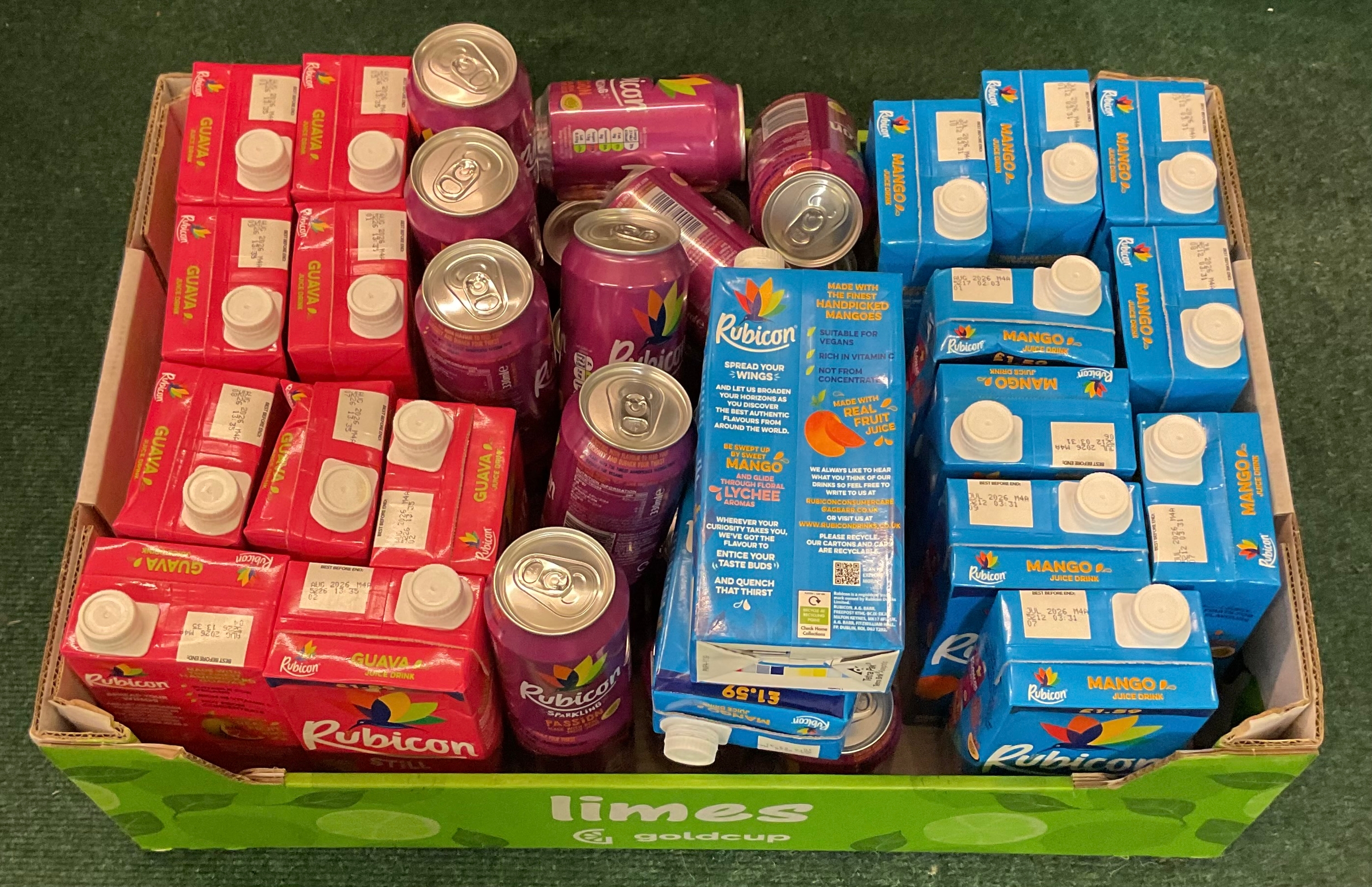 BOXED OF MIXED RUBICON INCLUDING STILL 1LTR CARTONS AND 330ML CANS
