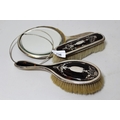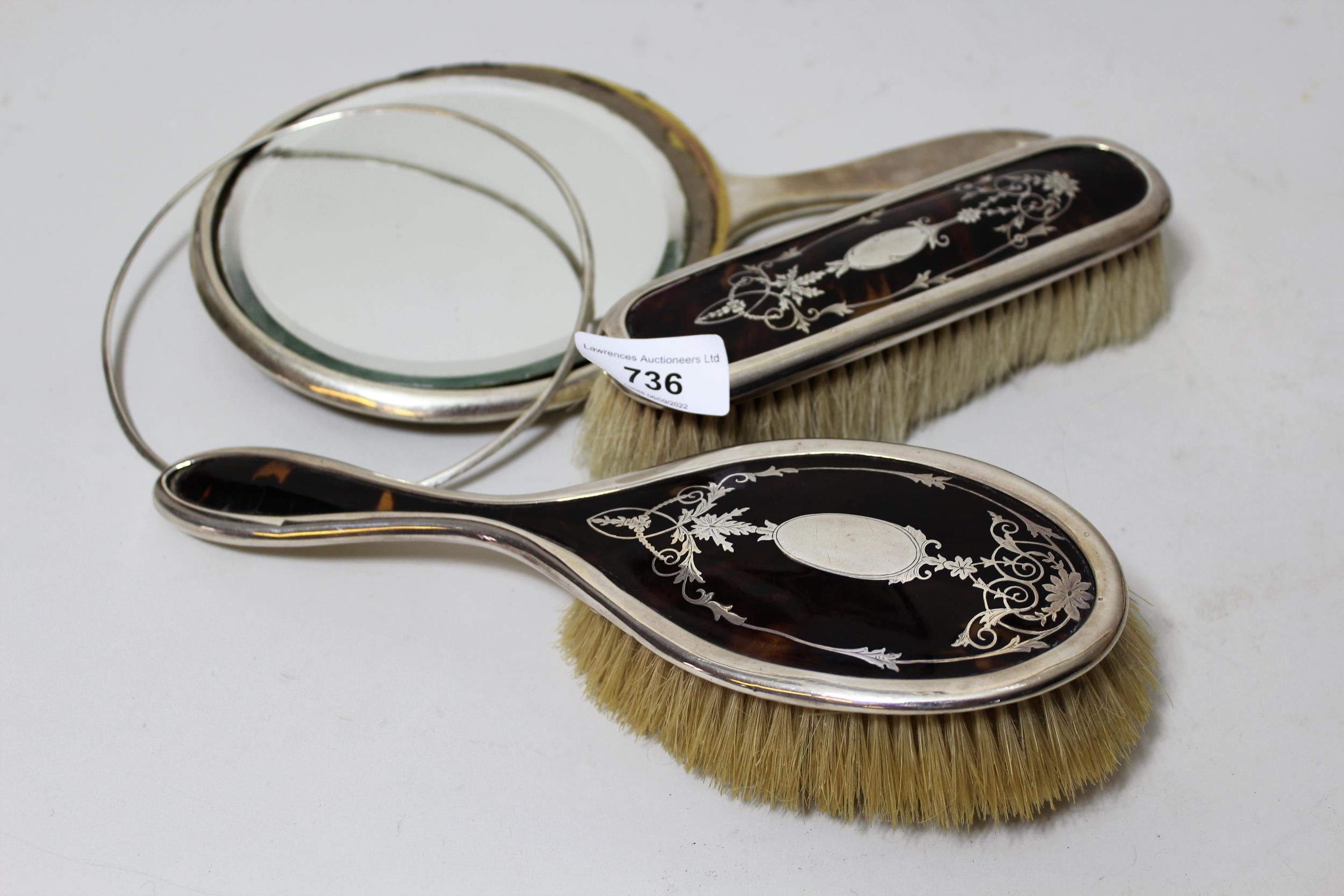 Three piece silver and tortoiseshell mounted dressing table set
