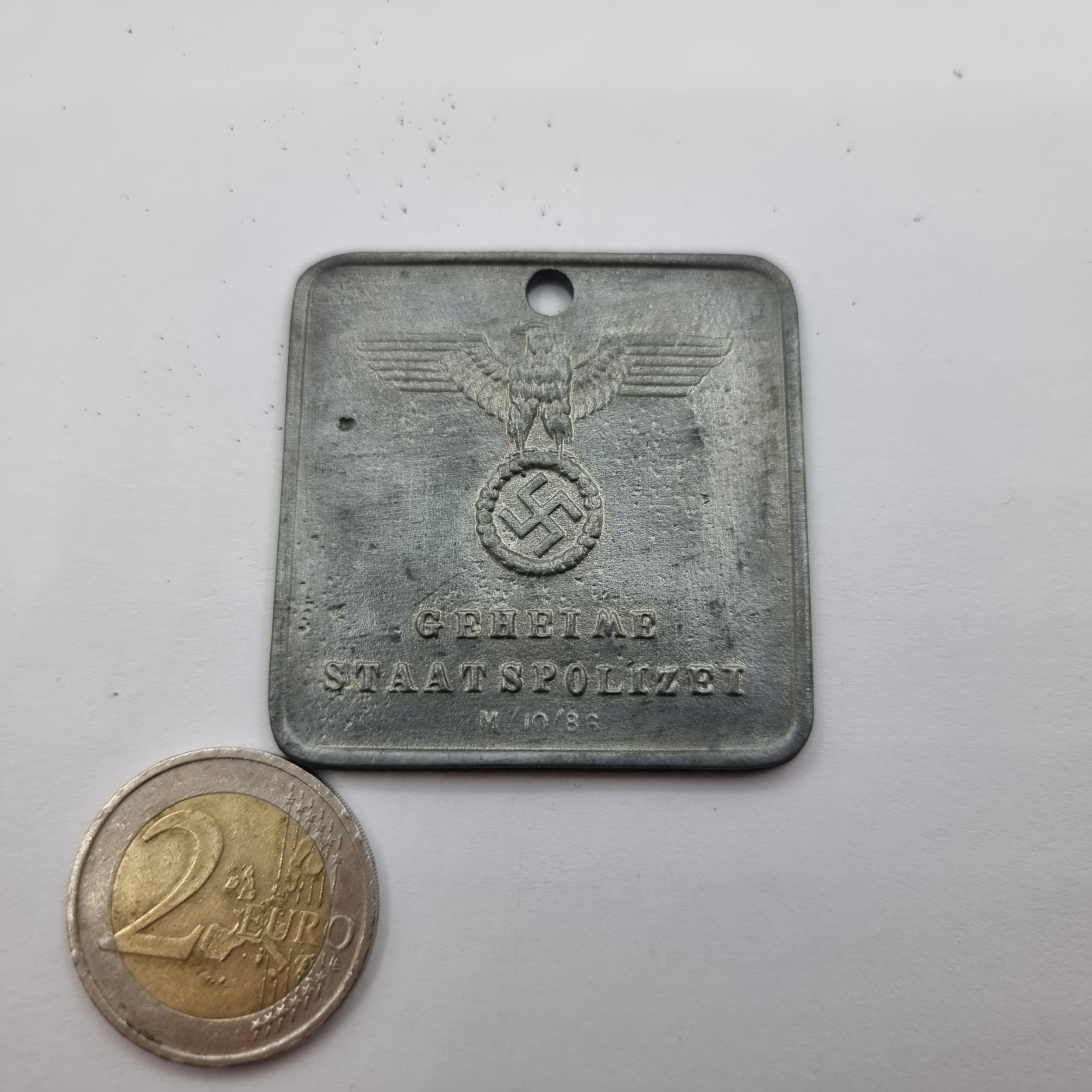 WWII German Secret State Police (Gestapo) identification tag. Very clean condition.