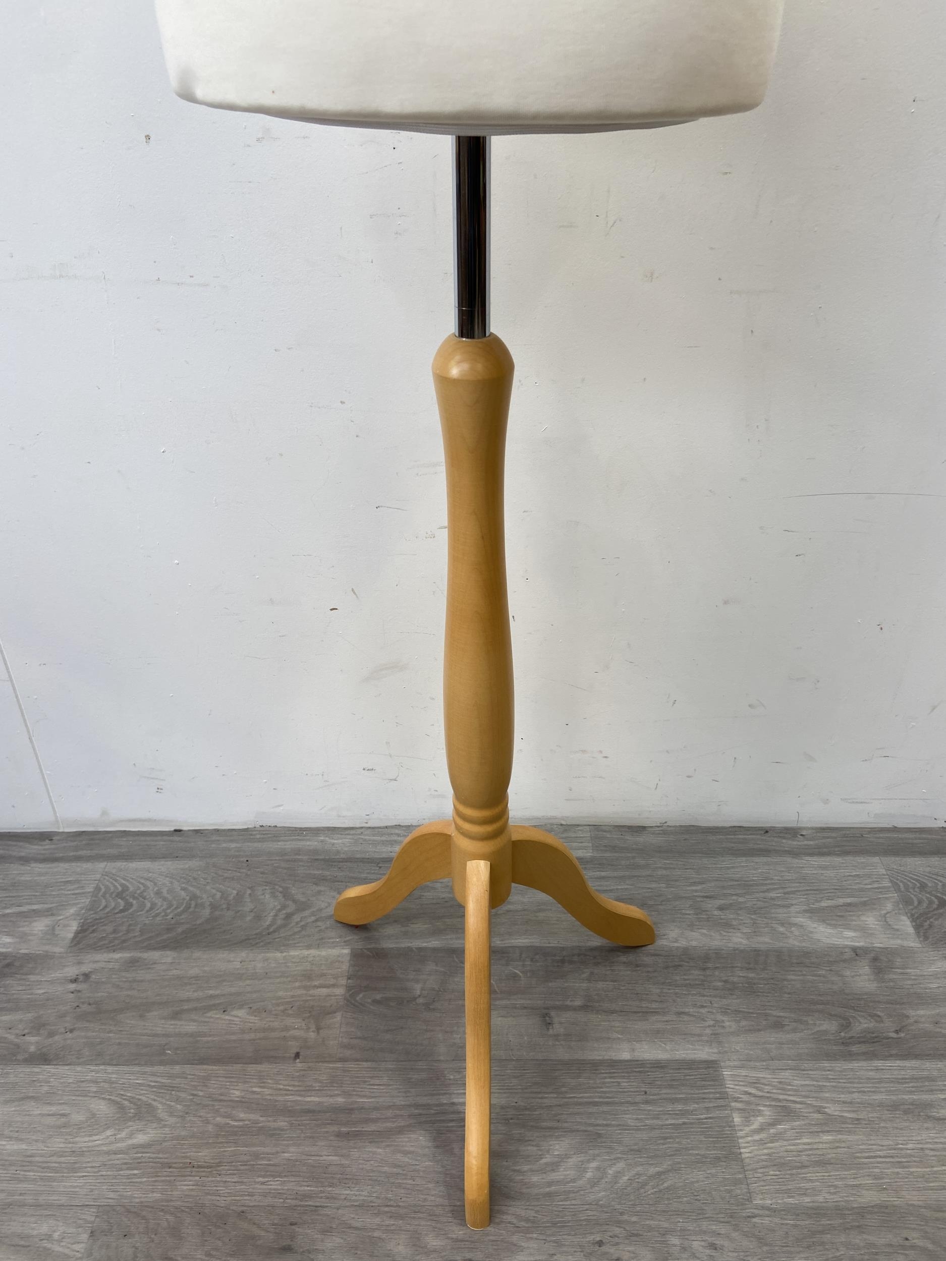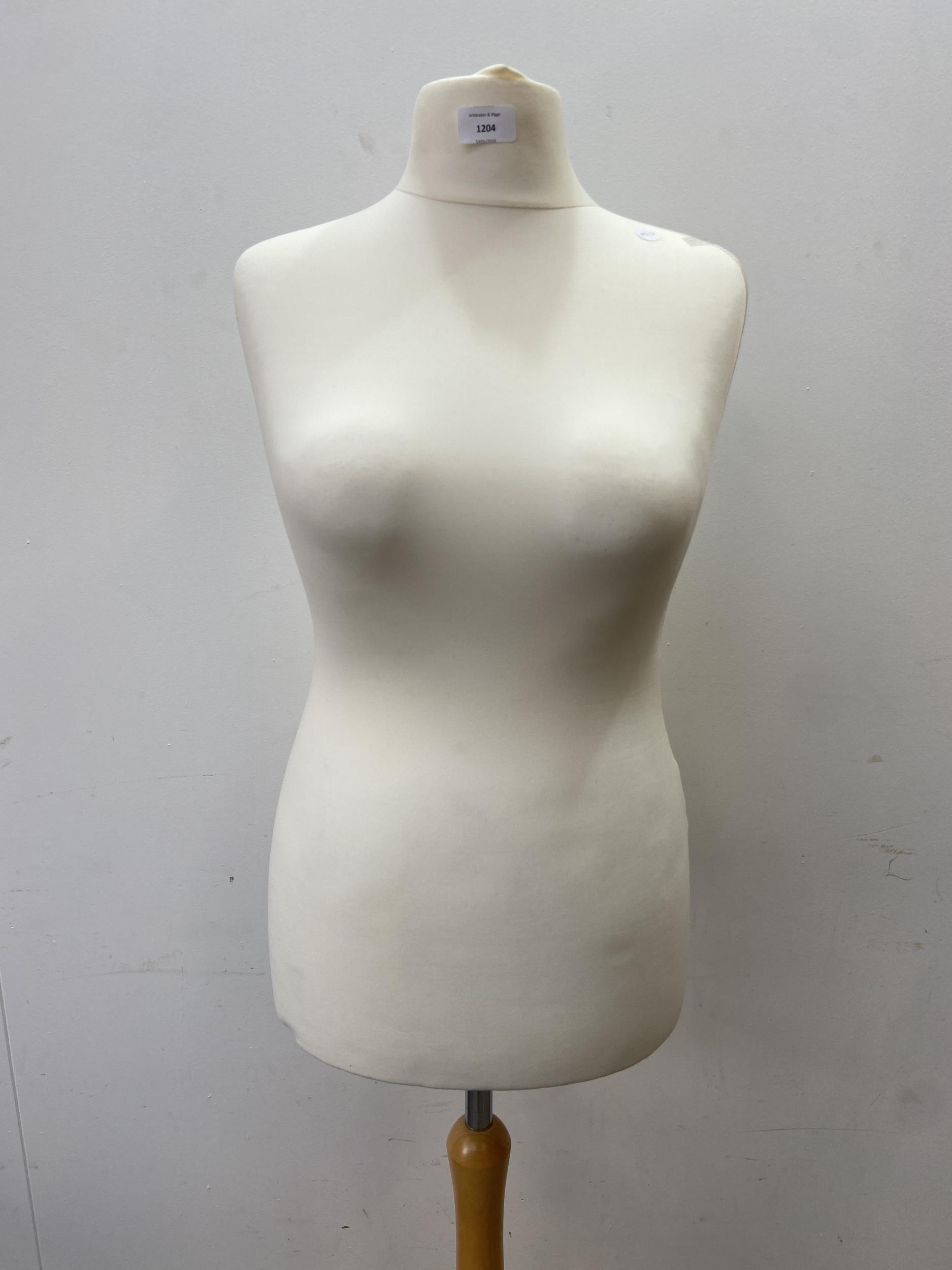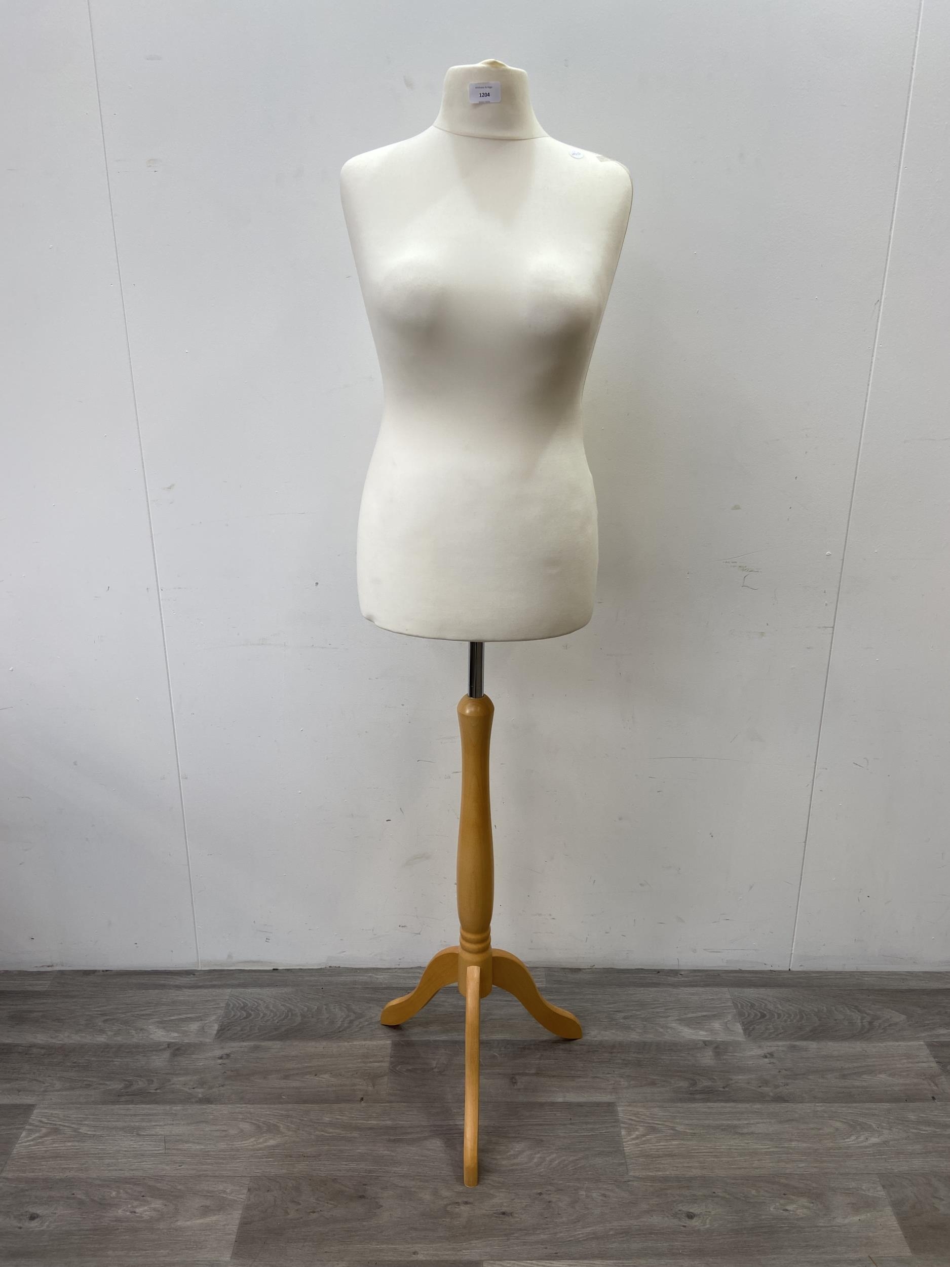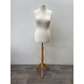 A modern white fabric female mannequin torso on beech tripod stand - approx. 158cm high