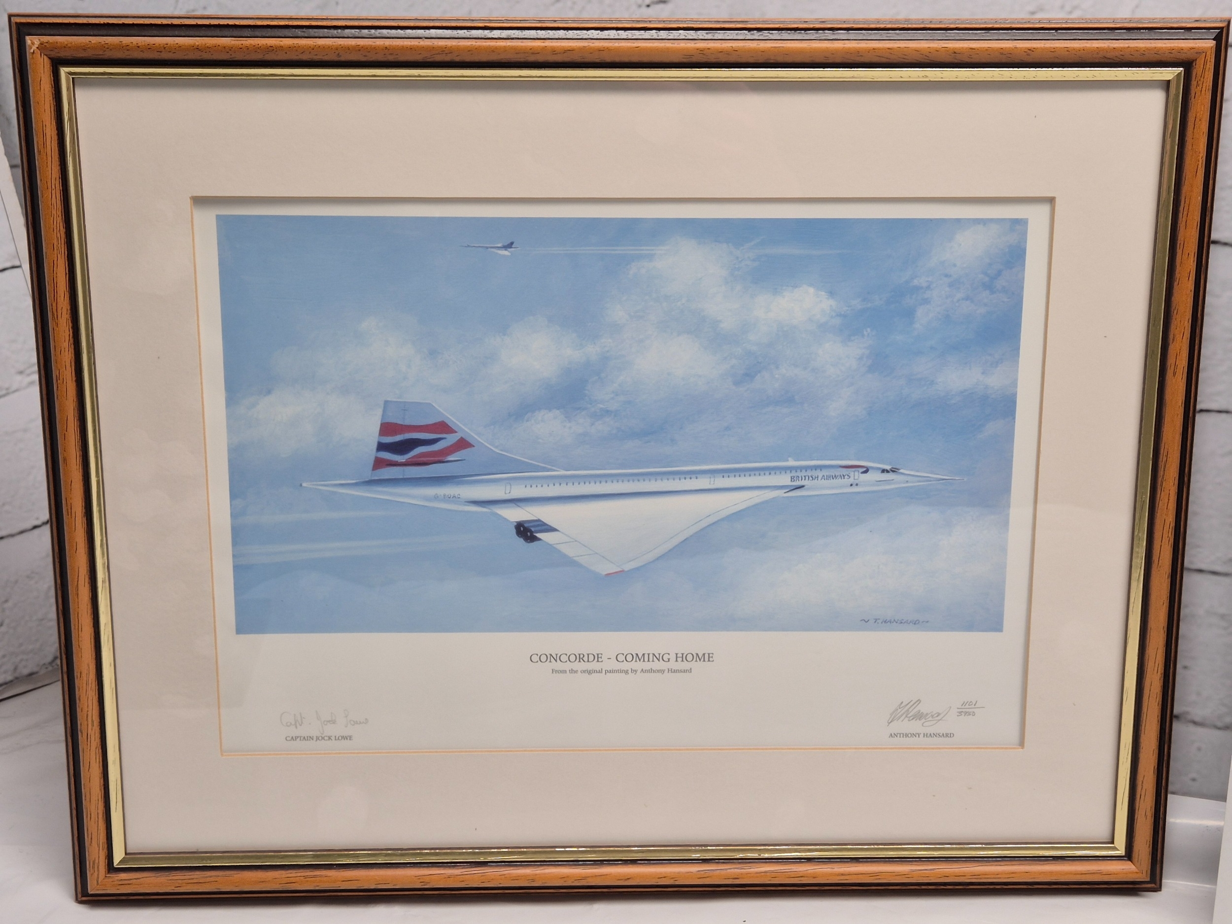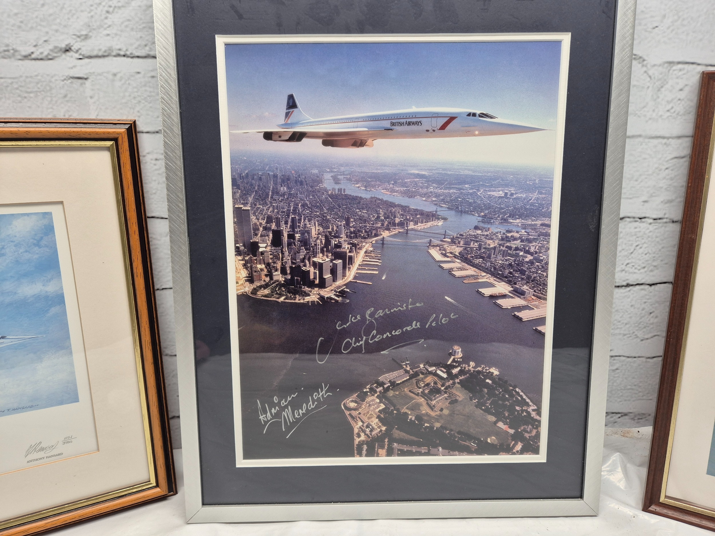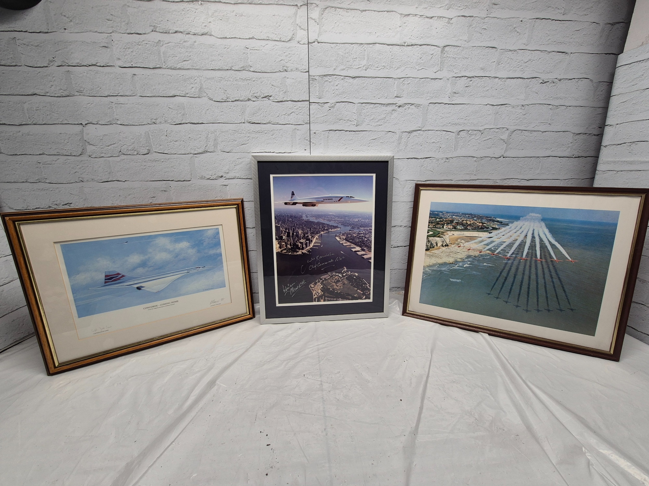 Concorde & Red Arrows interest - a Signed Limited Edition Print by Anthony Hansard also signed by Captain Jock Lowe, a Photo of Concorde signed by Chief Concorde Pilot Mike Bannister and Photographer Adrian Meredith and a Photo of the Red Arrows