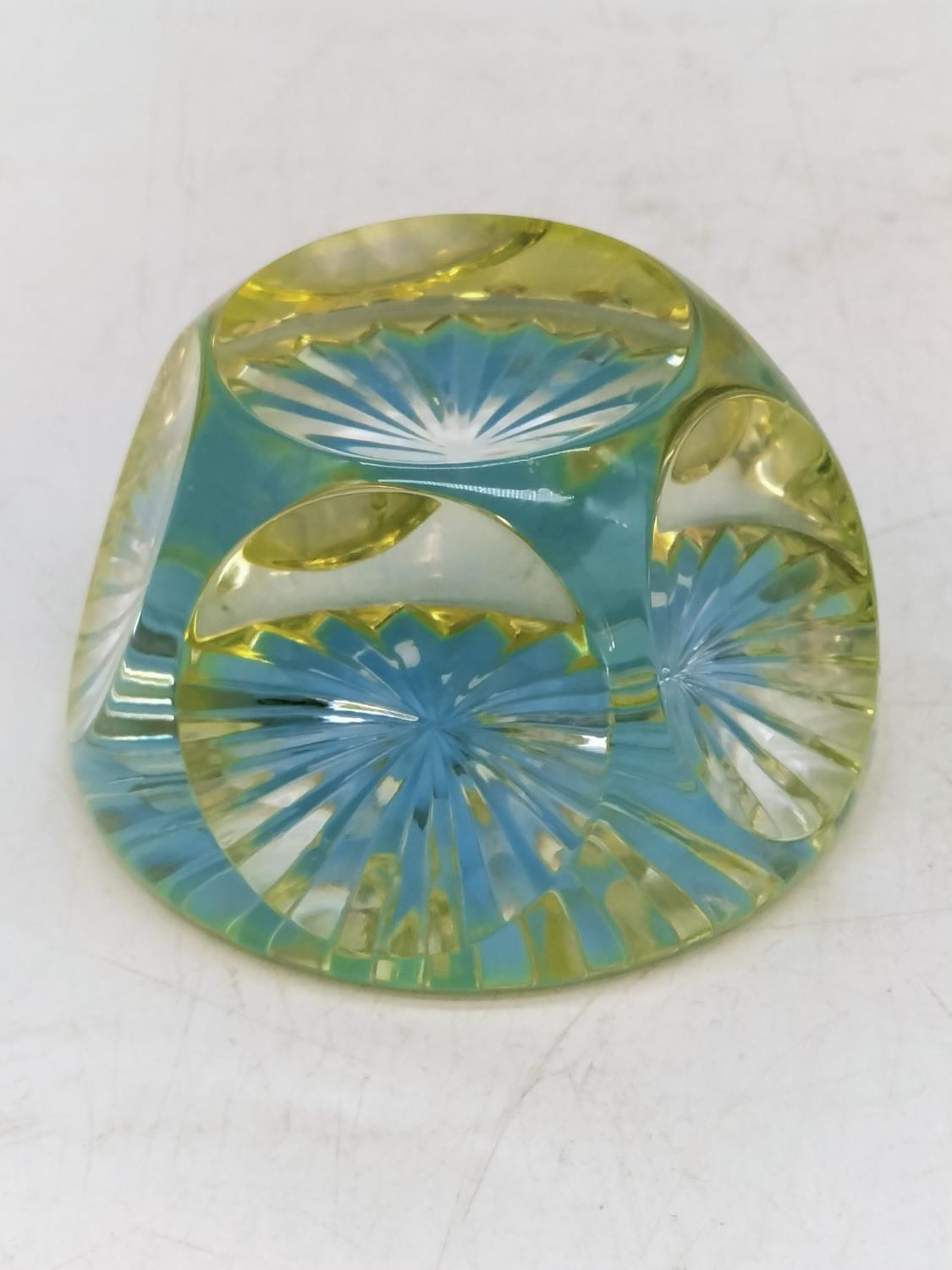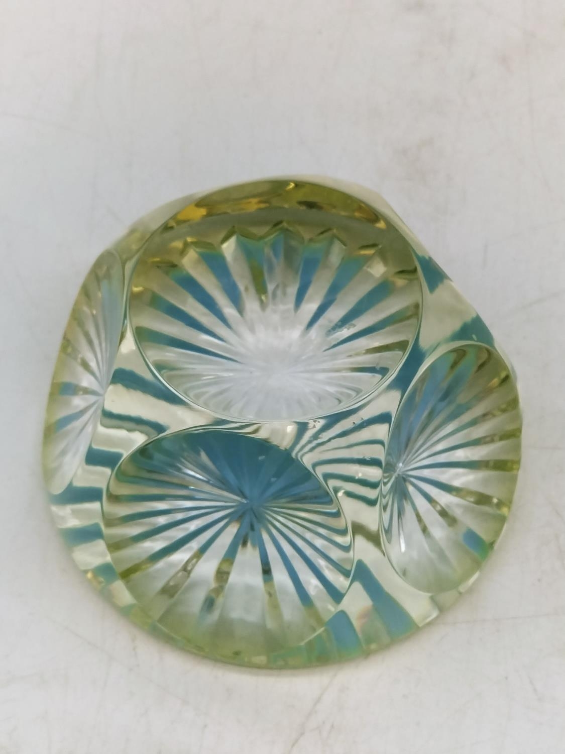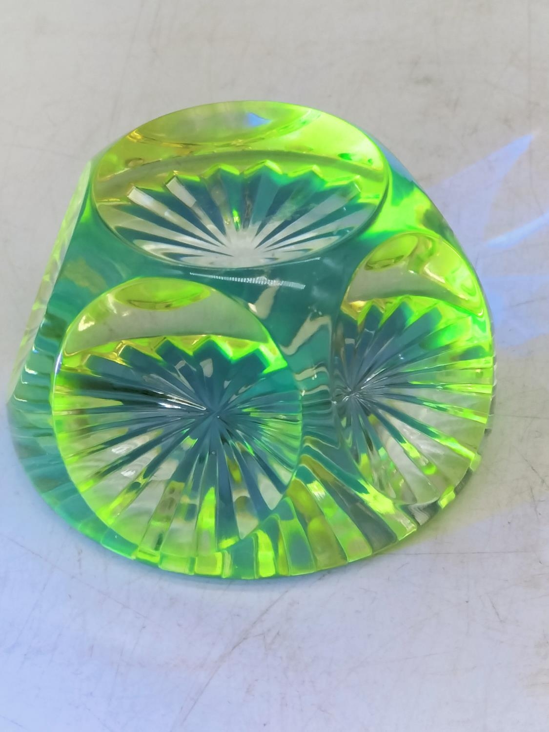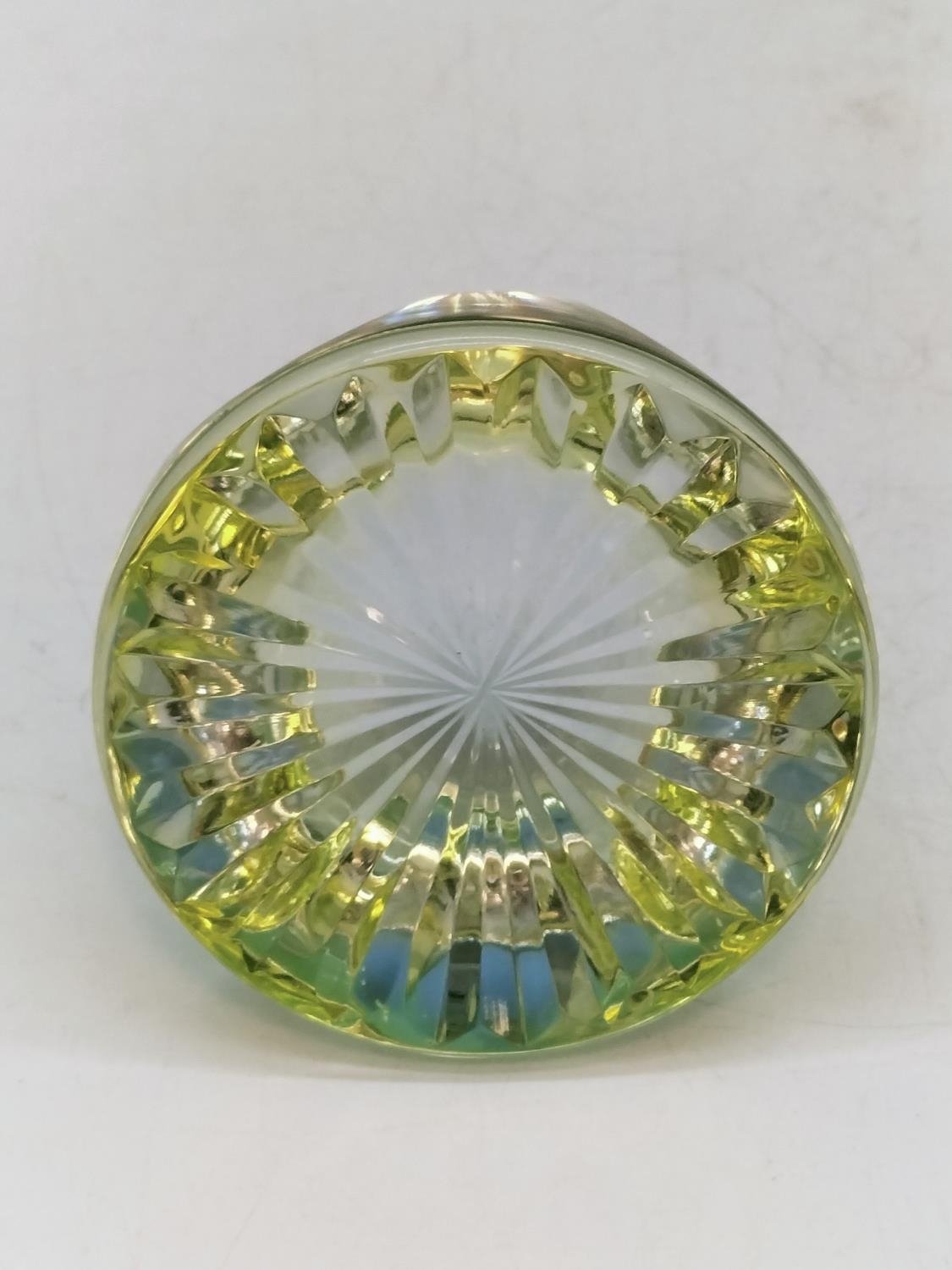 Uranium Glass Webb Corbett Faceted Cut Paperweight.