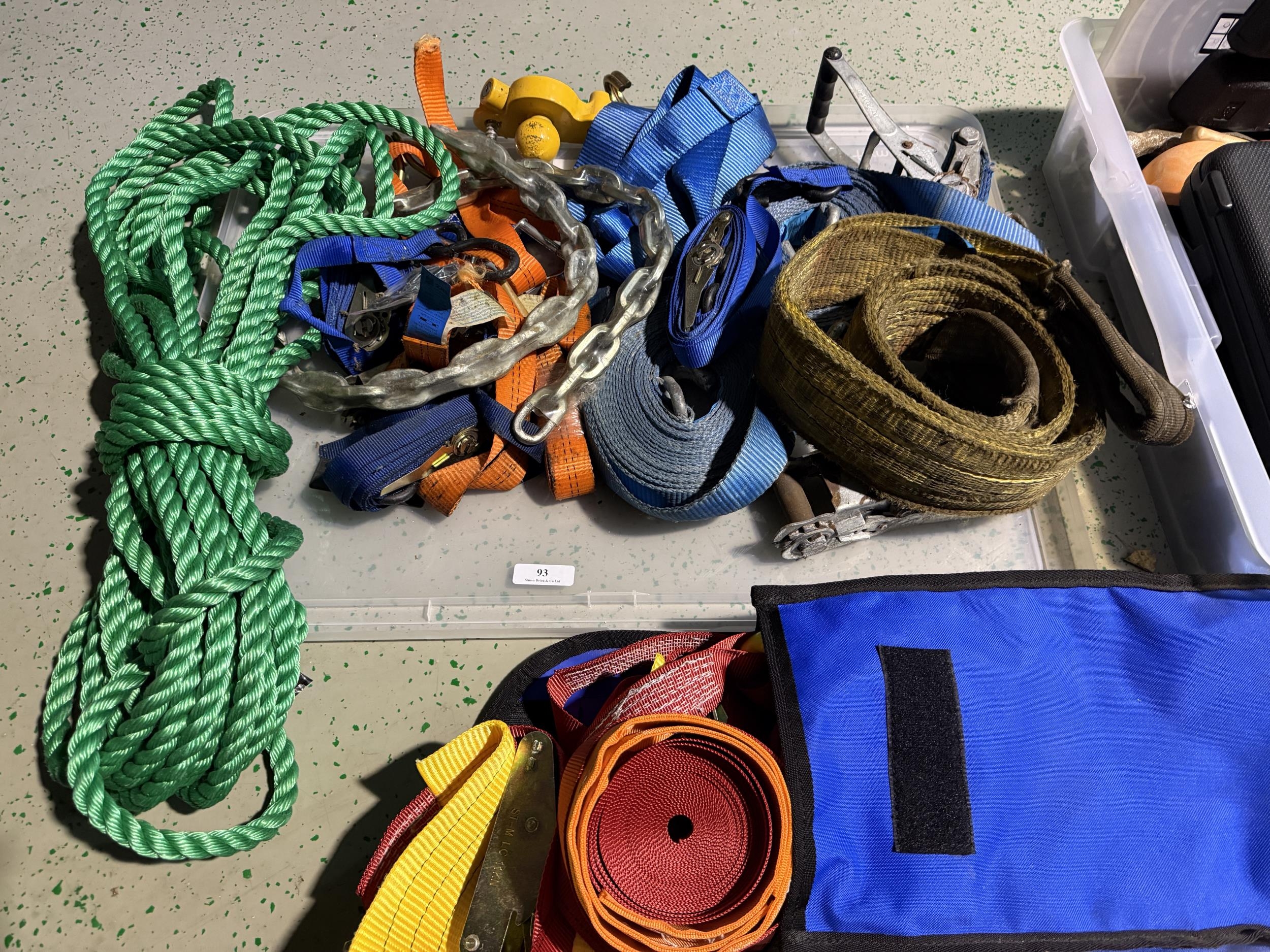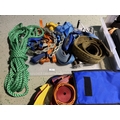 An assortment of ratchet straps, strops, rope etc.