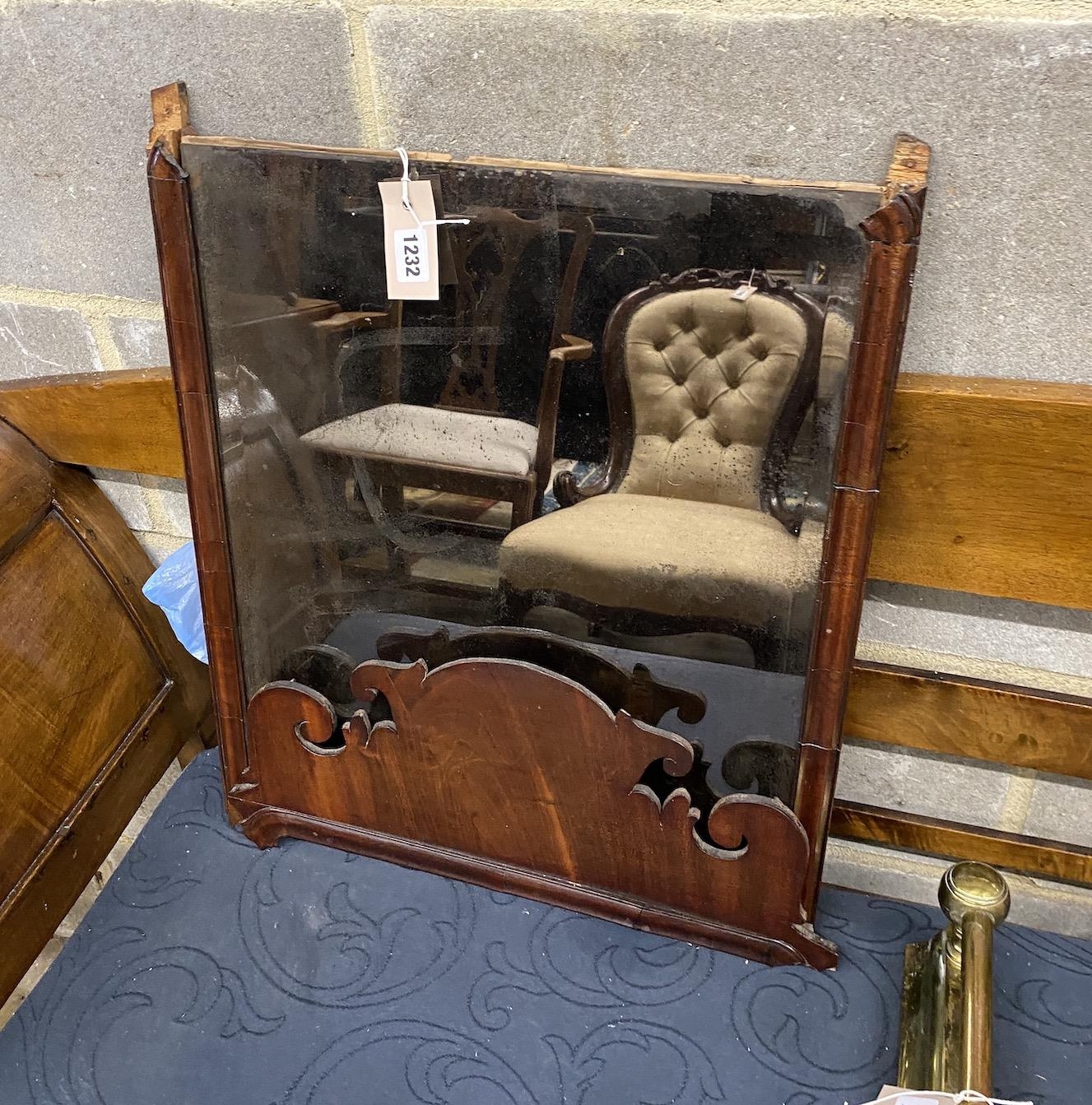 An 18th century style walnut fret cut wall mirror, width 46cm, (damaged)
