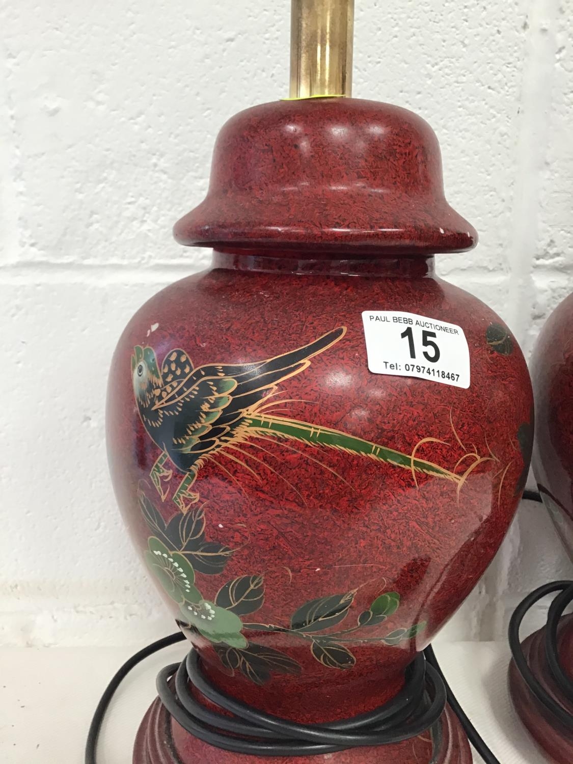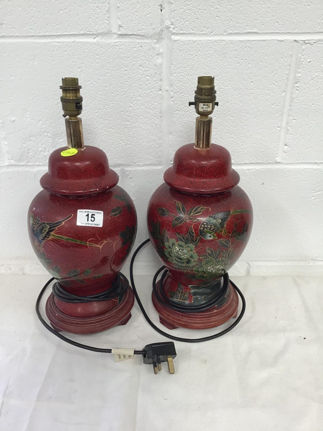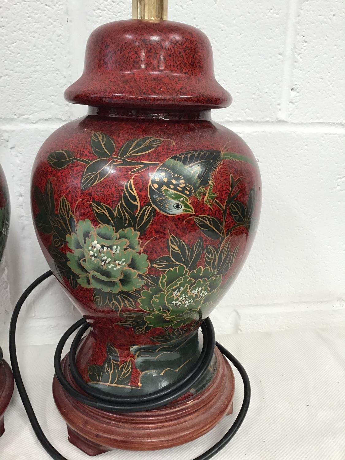 PAIR OF CHINESE STYLE LAMP BASES DECORATED WITH BIRDS & FOILAGE
