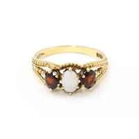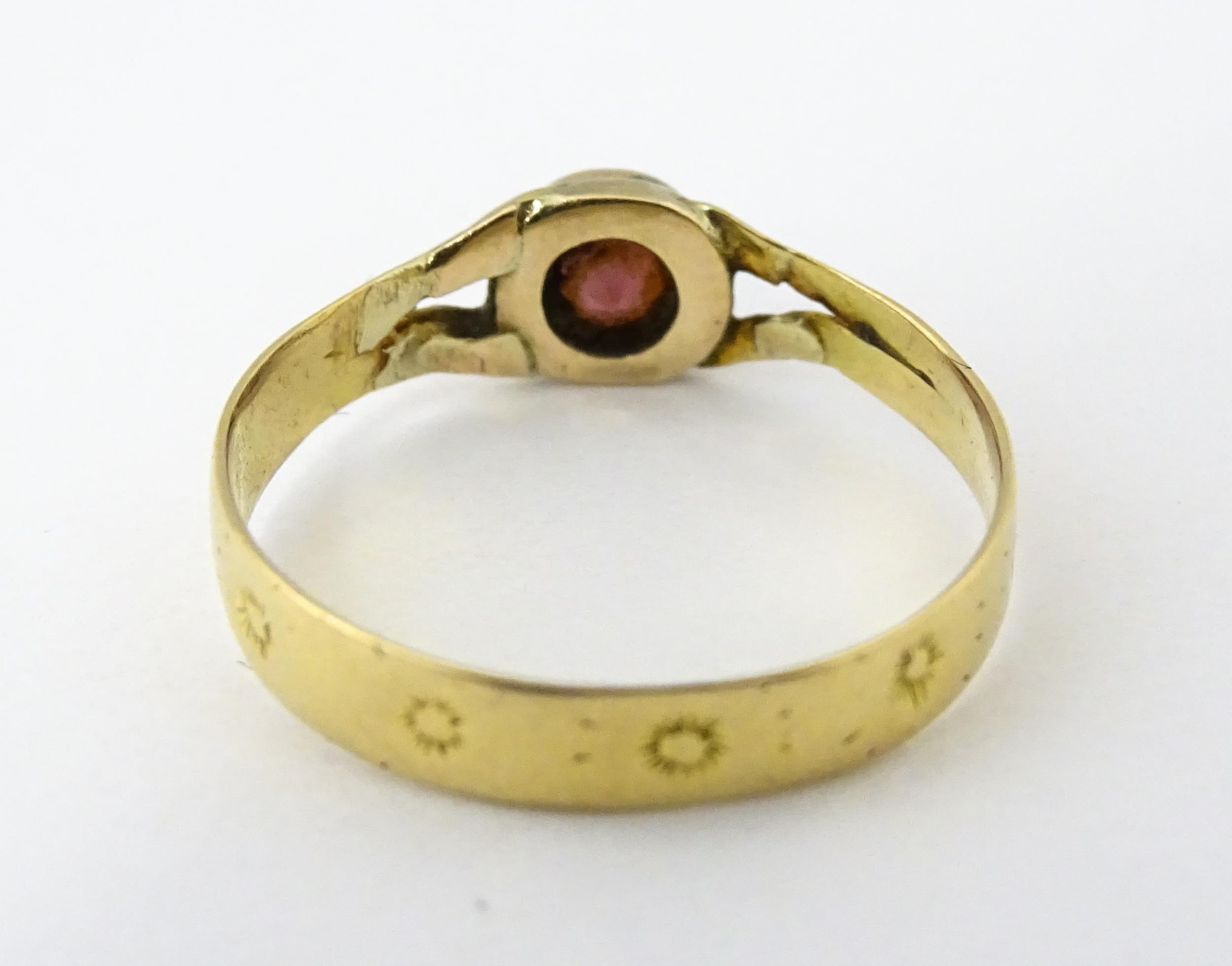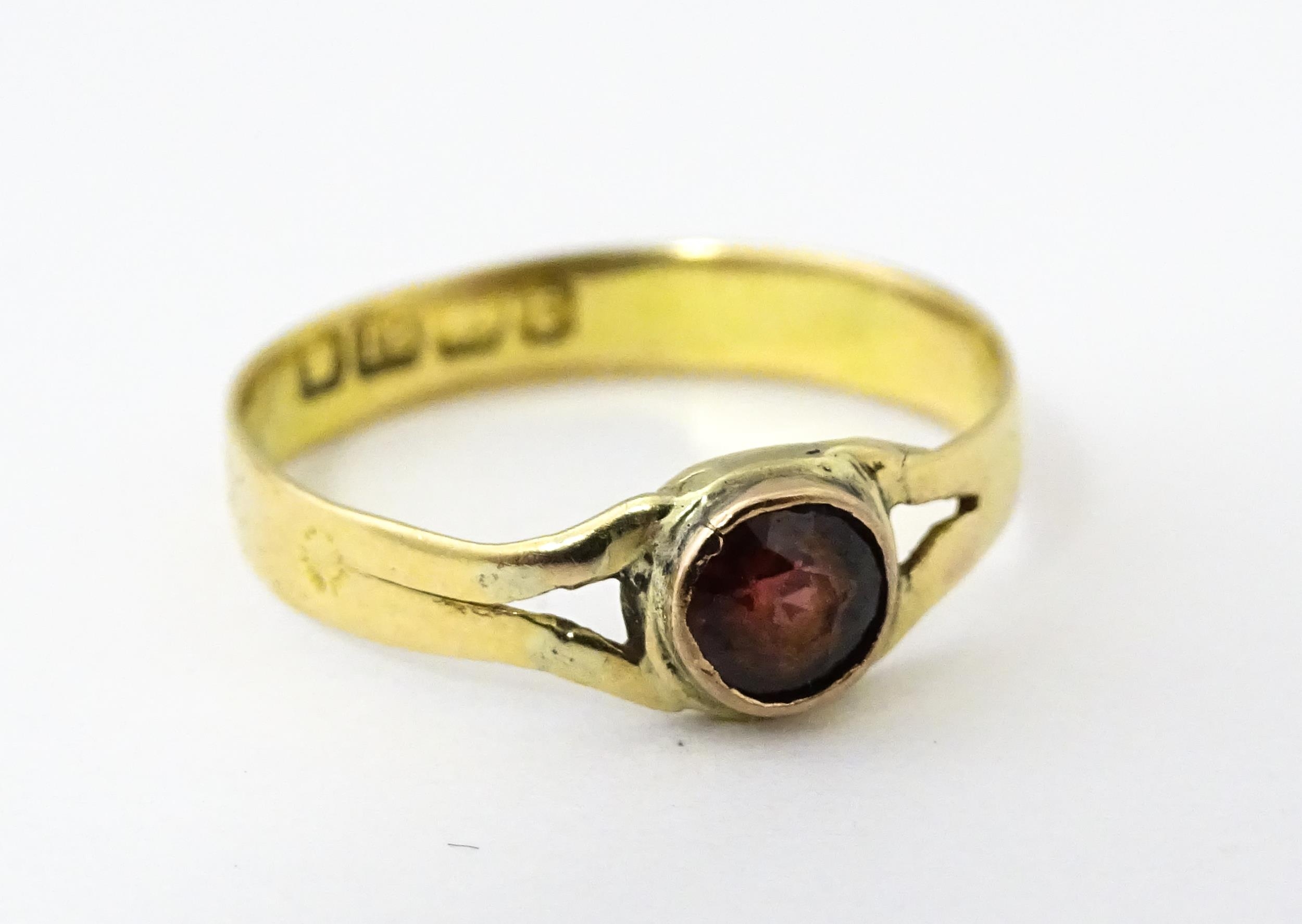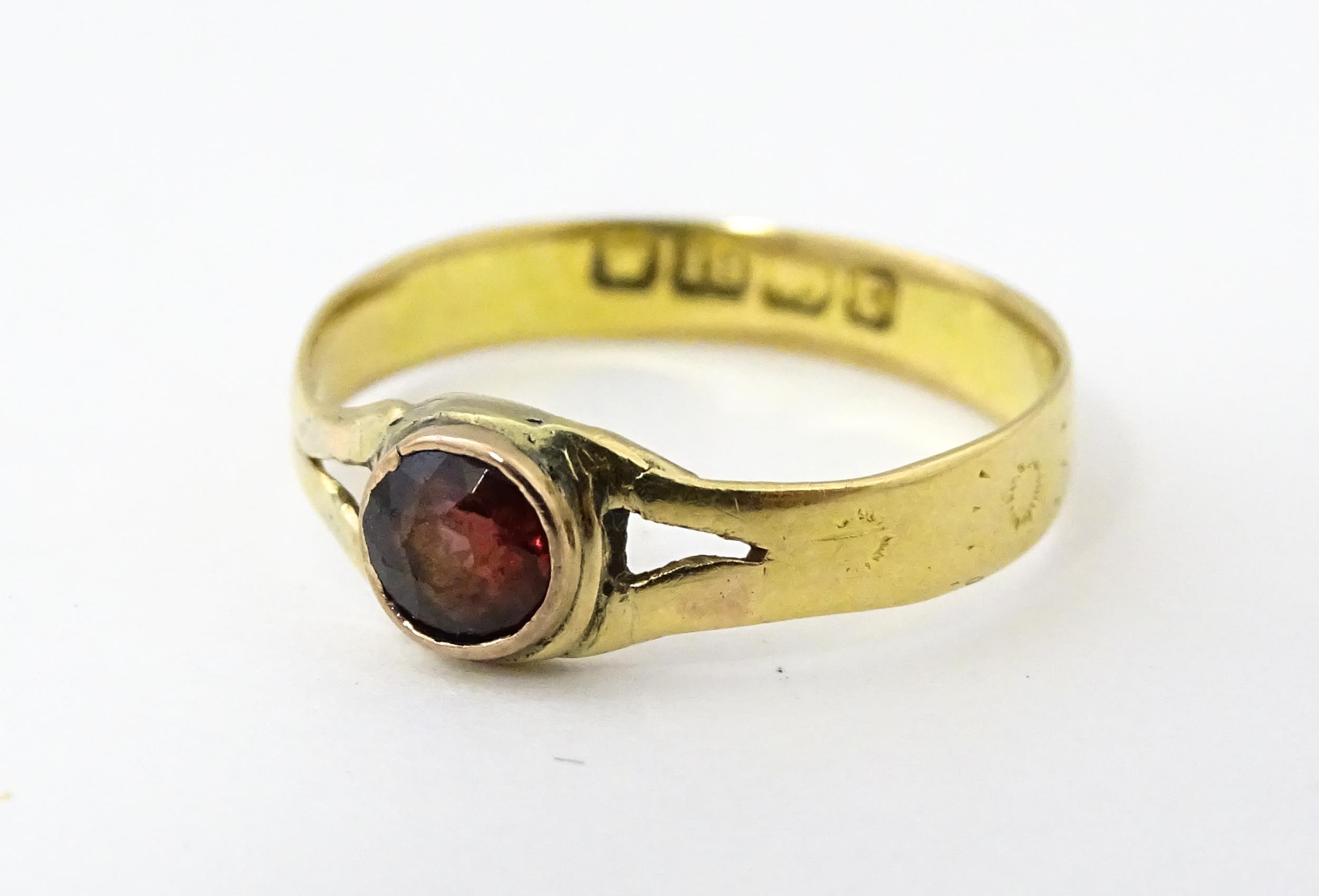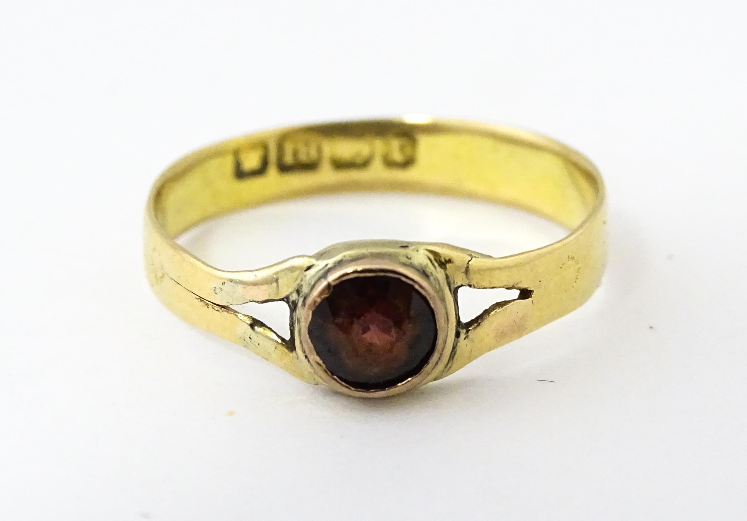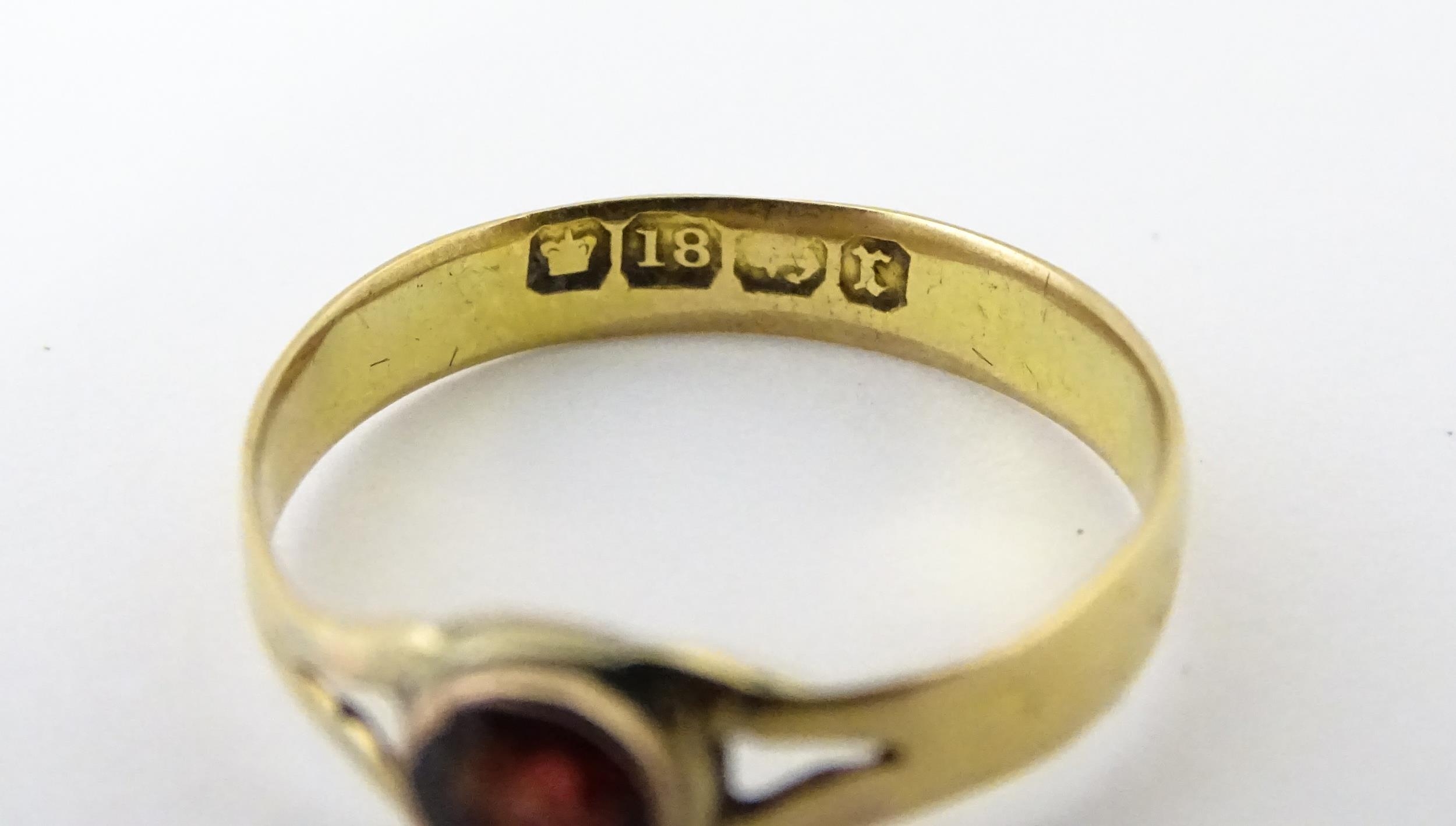 A Victorian 18ct gold ring set with garnet. Ring size approx. M 1/2