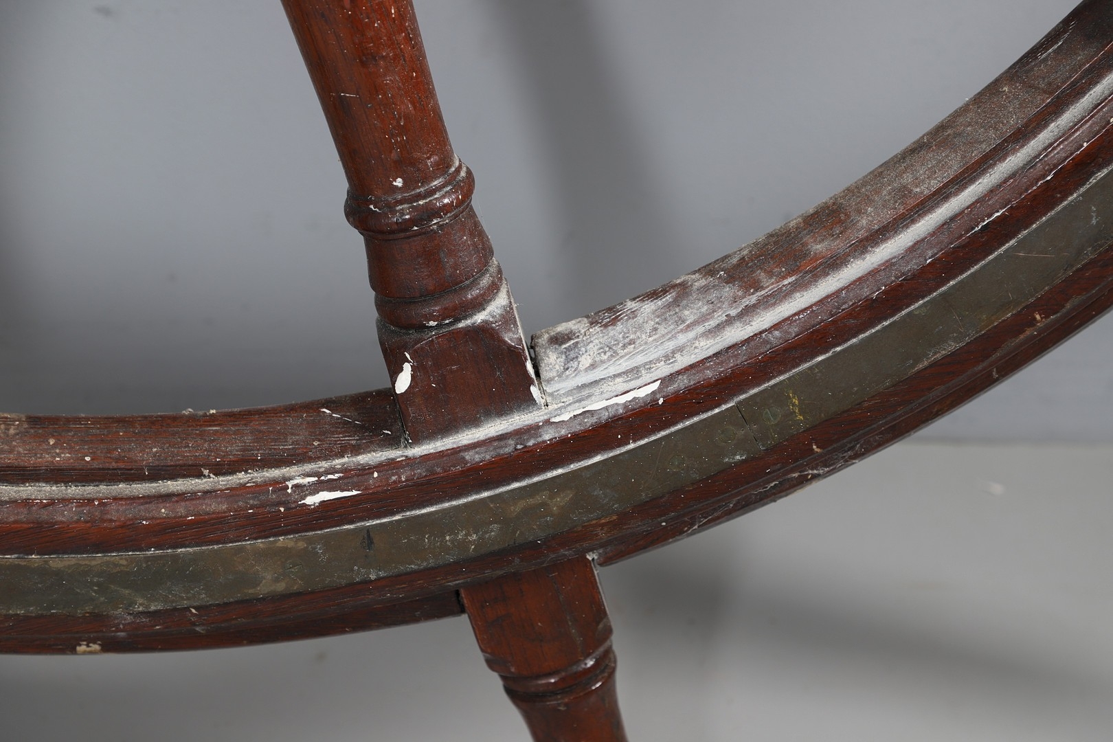 Minor losses and scuffs, some white paint remnants to back. Several metal mounting brackets.