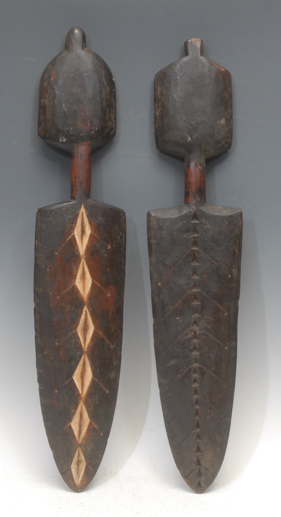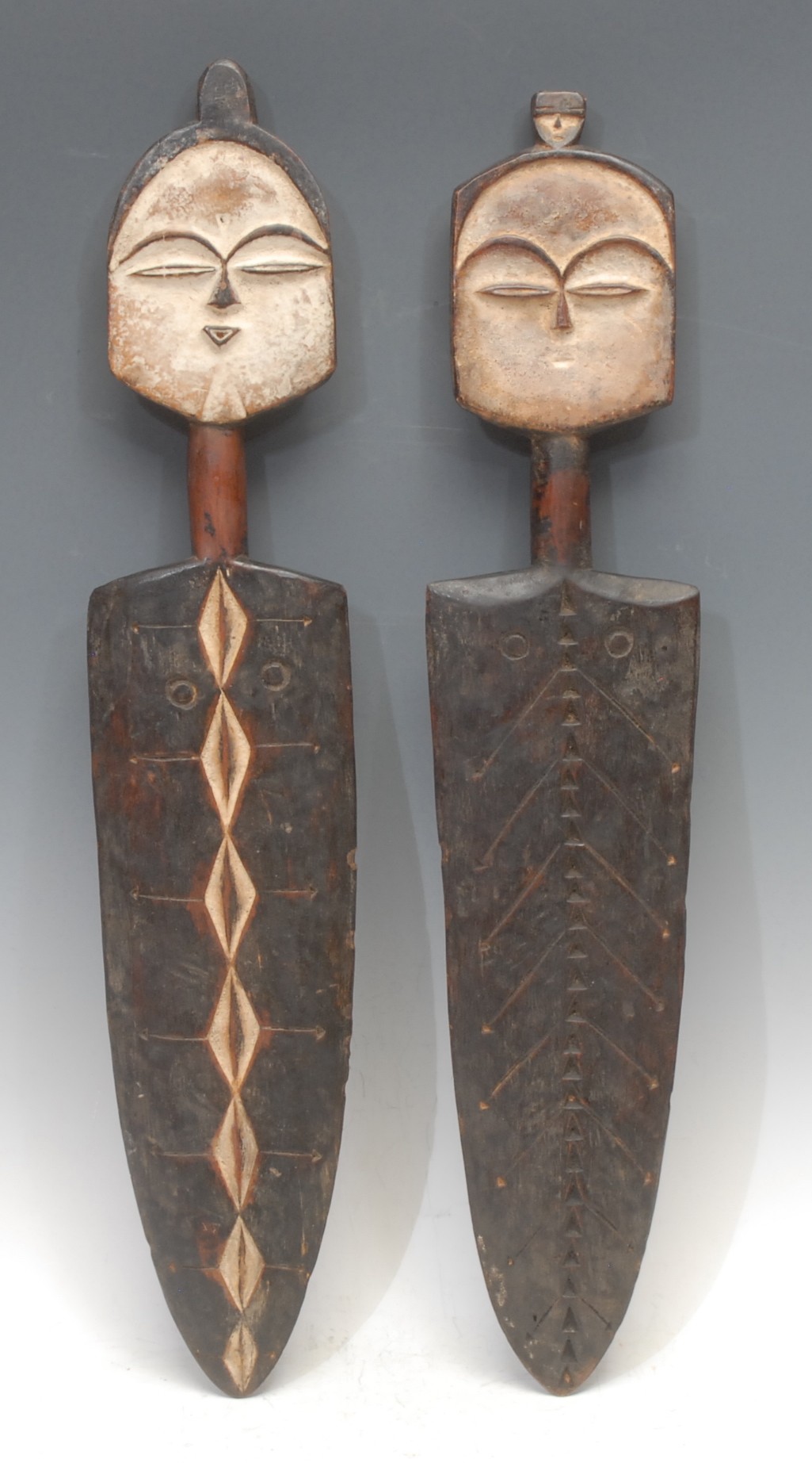 Tribal Art - a pair of West African Sogo Tsogho boundary markers, 58cm high, Gabon