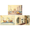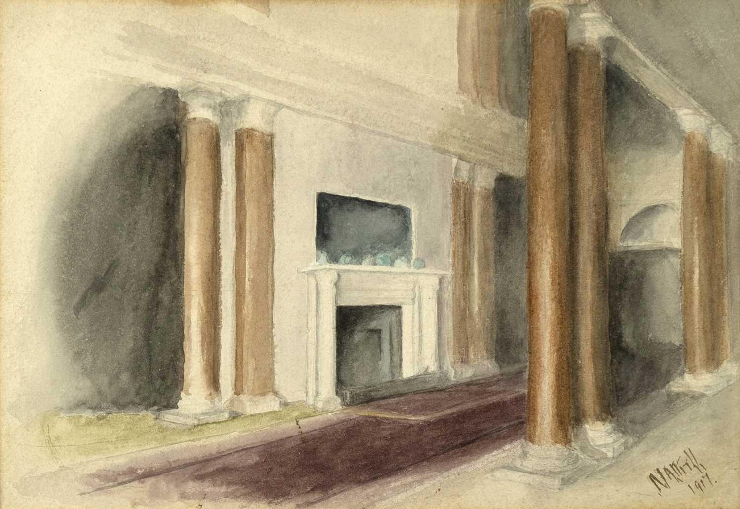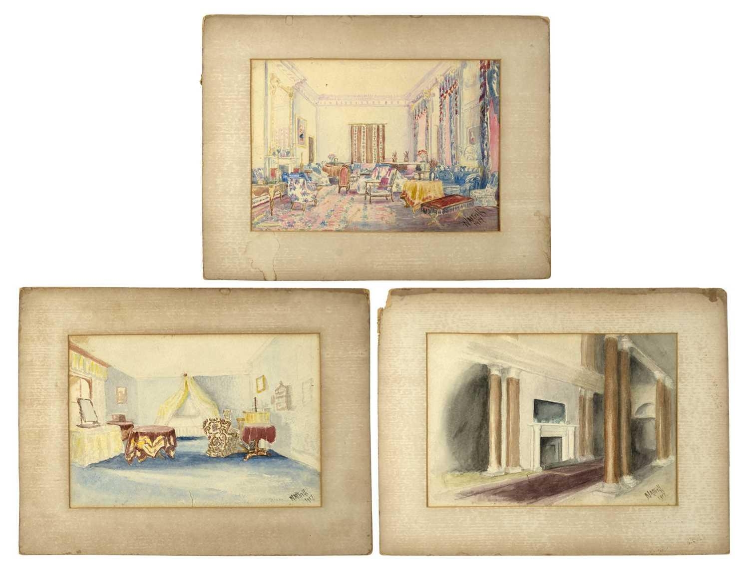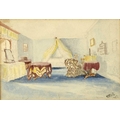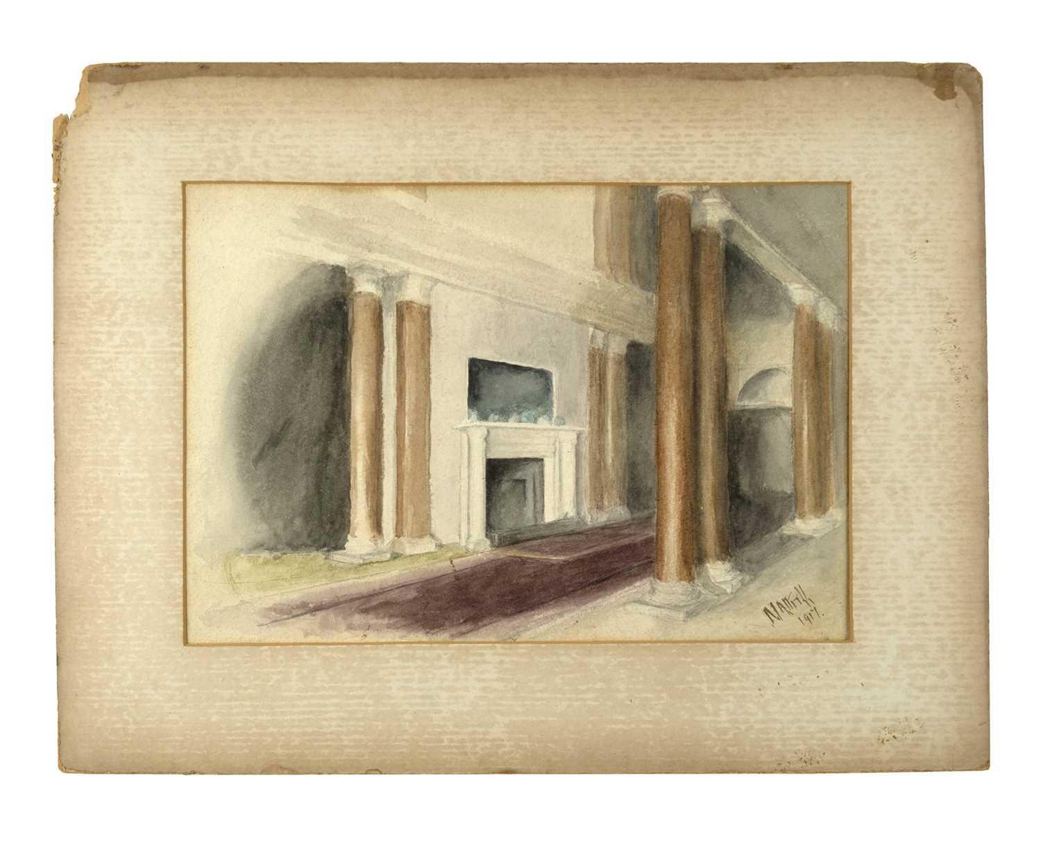 Three Edwardian interior watercolours. The property of Peter Hone. Indistinctly signed and dated 1917. 18 x 26cm. Mounted and unframed. Stepping over the threshold into Peter Hone’s London home is an unforgettable experience; a sensory over load of the most delightful sort; inside is a curated wonderland interior as enchanting and extraordinary as the man himself. Peter has lived in his Notting Hill flat since the 1960s. Its fabulous interior has graced the cover of World of Interiors more than once and its creator is adored by the cognoscenti of the interior design world. Peter is a man of many stories, and one of last year’s exciting chapters was the auction we held for him, selling the remarkable contents of his London abode: all the ancient architectural fragments, classical busts, urns, marbles and curios, and perhaps most wondrous of all, Peter’s beautiful plaster reliefs, which adorn almost every available wall. Peter’s interest in plasterwork developed during his 15 years at Clifton Nurseries in Little Venice, where he managed an architectural antiques shop for Lord Jacob Rothschild. This is where Hone ‘honed in’ on plaster, as he likes to joke. These further items from Peter are excess lots to his previous sale. We will also have further items in our next Oak & Country sale on June 13th 2024.