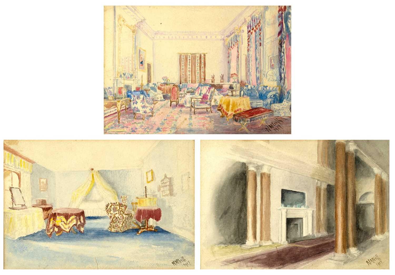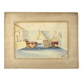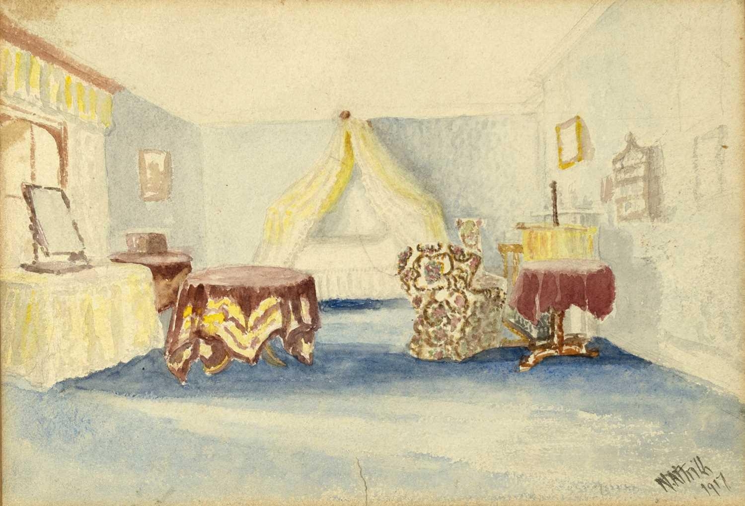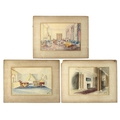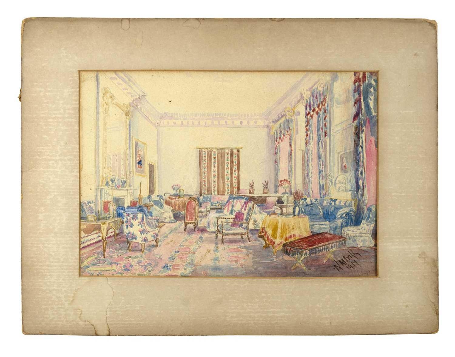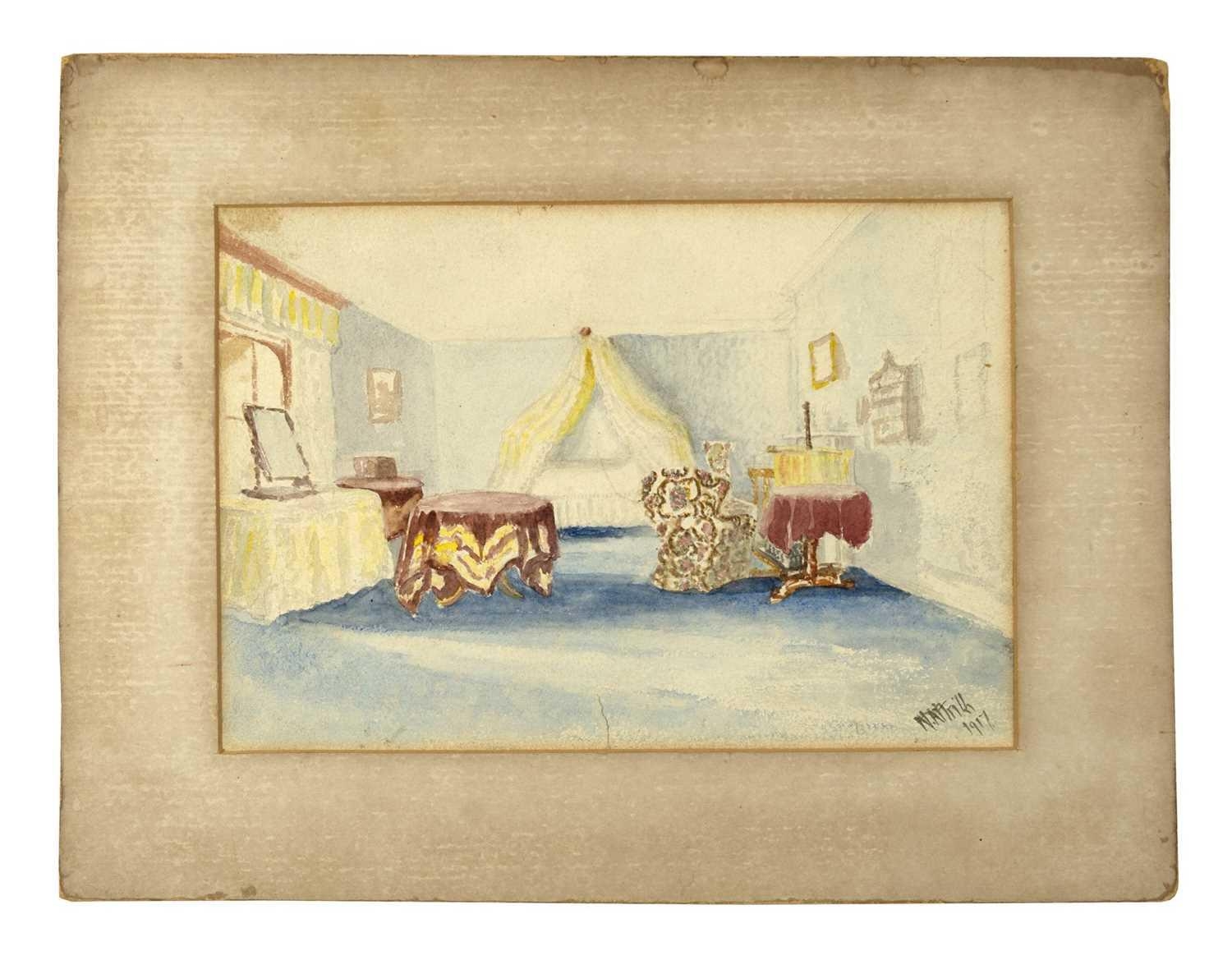 Three Edwardian interior watercolours. The property of Peter Hone. Indistinctly signed and dated 1917. 18 x 26cm. Mounted and unframed. Stepping over the threshold into Peter Hone’s London home is an unforgettable experience; a sensory over load of the most delightful sort; inside is a curated wonderland interior as enchanting and extraordinary as the man himself. Peter has lived in his Notting Hill flat since the 1960s. Its fabulous interior has graced the cover of World of Interiors more than once and its creator is adored by the cognoscenti of the interior design world. Peter is a man of many stories, and one of last year’s exciting chapters was the auction we held for him, selling the remarkable contents of his London abode: all the ancient architectural fragments, classical busts, urns, marbles and curios, and perhaps most wondrous of all, Peter’s beautiful plaster reliefs, which adorn almost every available wall. Peter’s interest in plasterwork developed during his 15 years at Clifton Nurseries in Little Venice, where he managed an architectural antiques shop for Lord Jacob Rothschild. This is where Hone ‘honed in’ on plaster, as he likes to joke. These further items from Peter are excess lots to his previous sale. We will also have further items in our next Oak & Country sale on June 13th 2024.