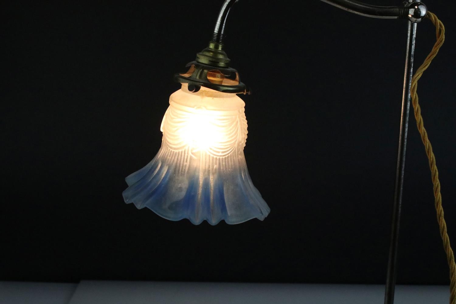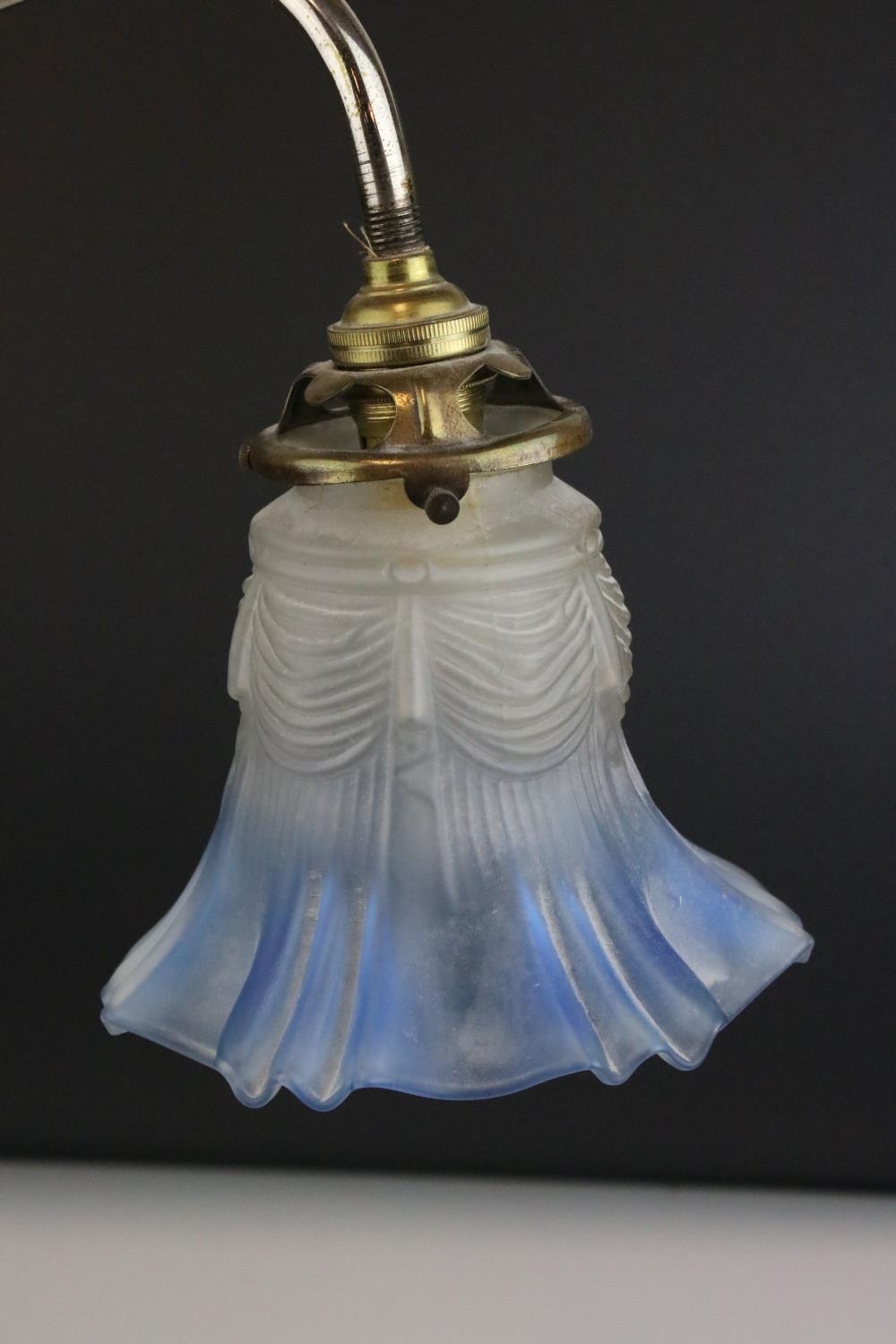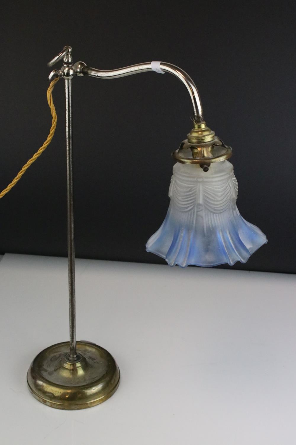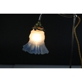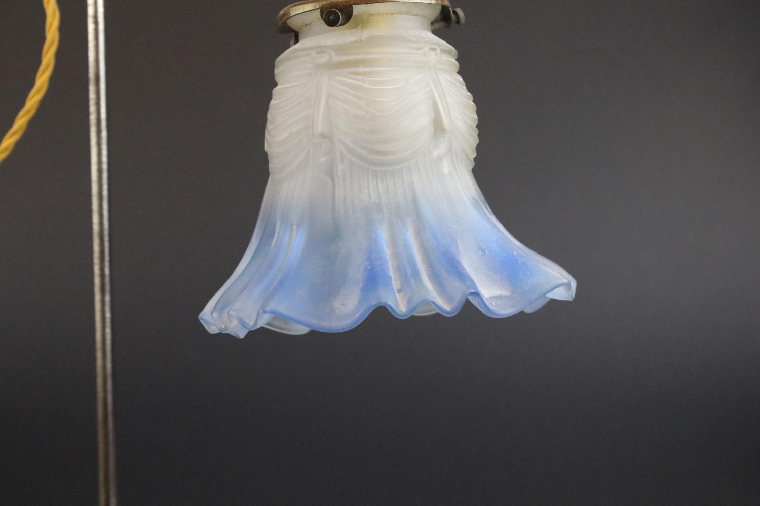 Early 20th century Table Light with Blue Tinted Frilled Glass Shade, 49cms high