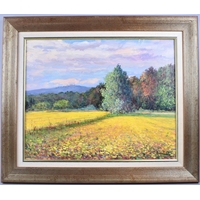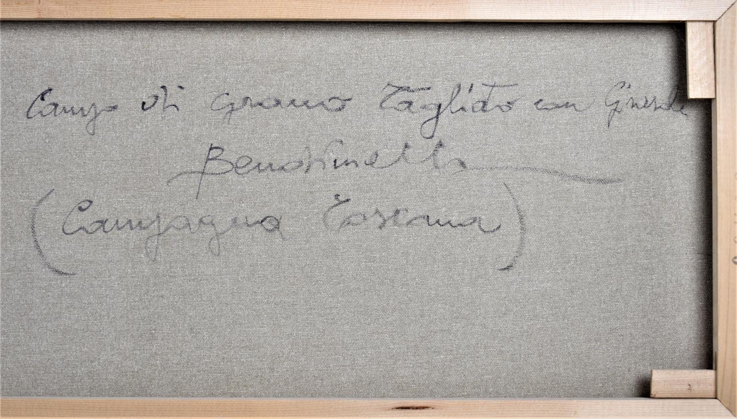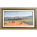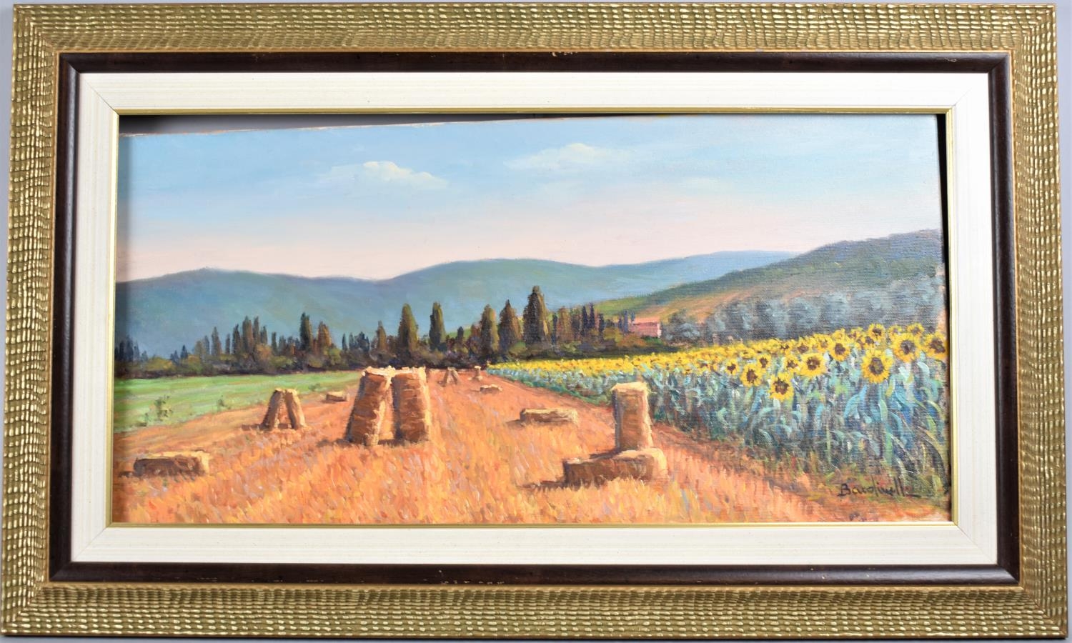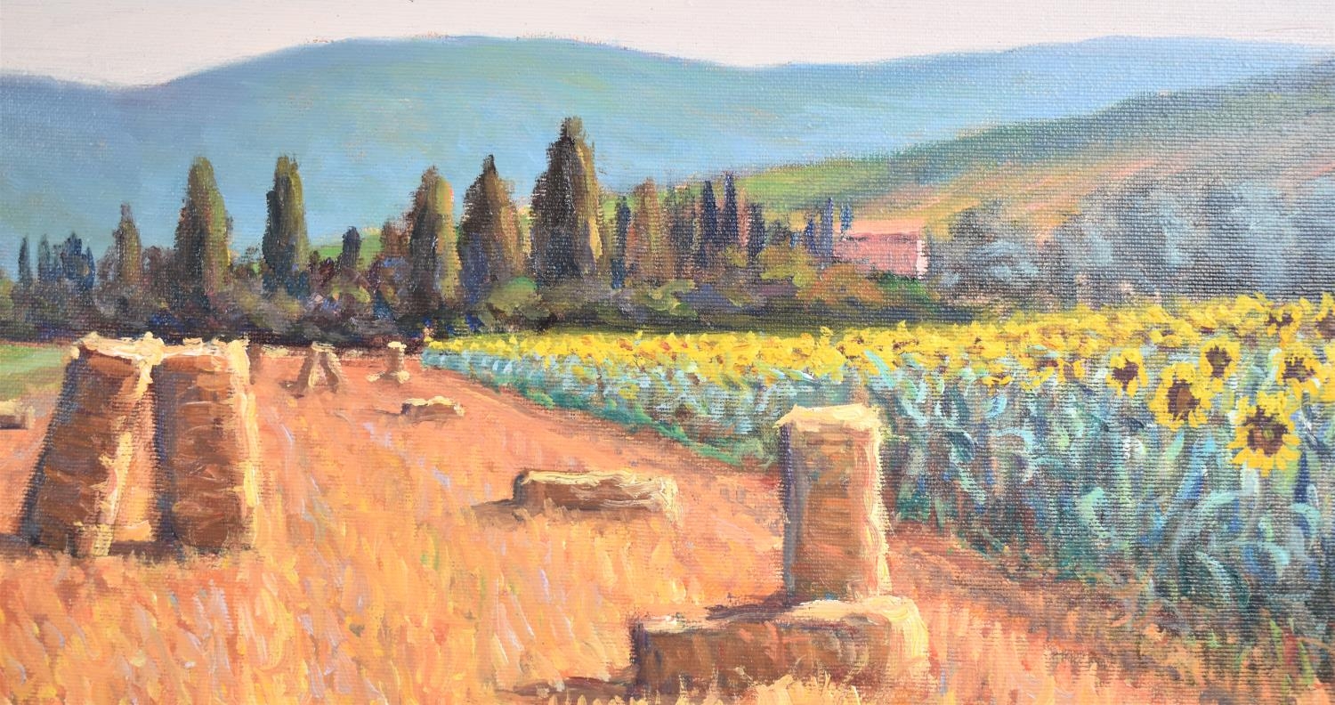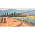 A Framed Italian Pastel Depicting Sunflowers and Cornfield in Tuscany, Signed Bendinelli, 60x30cm