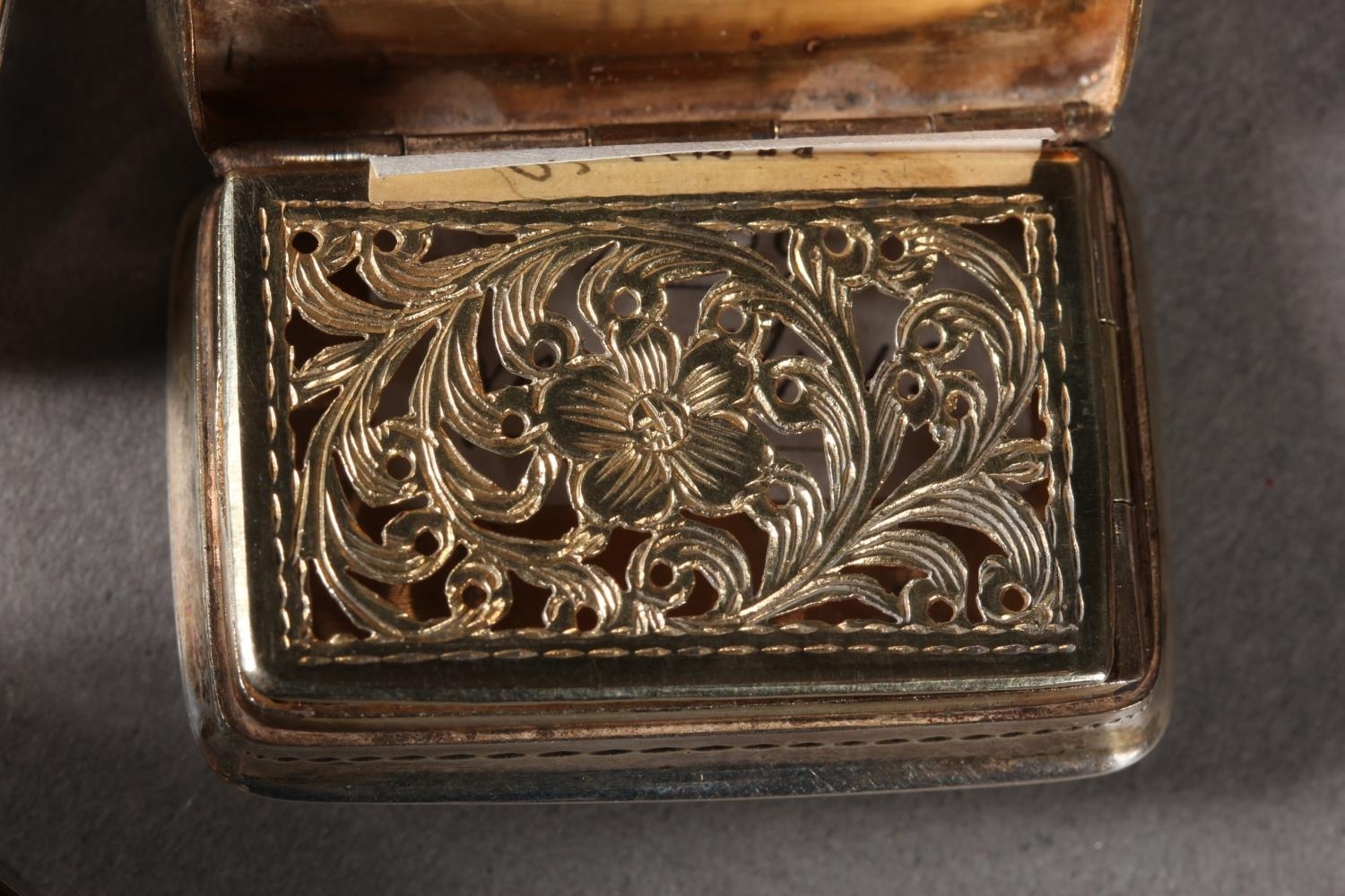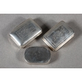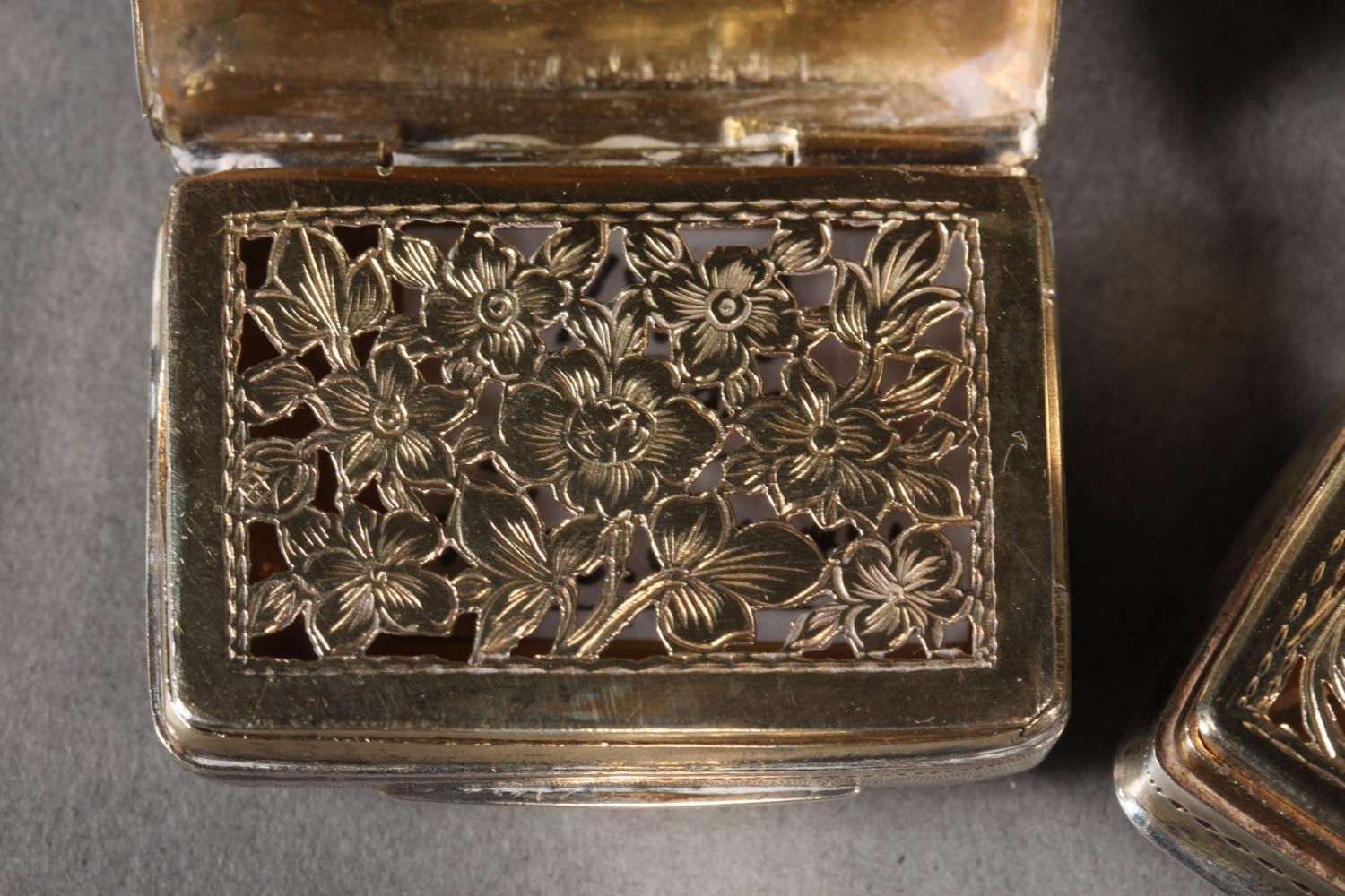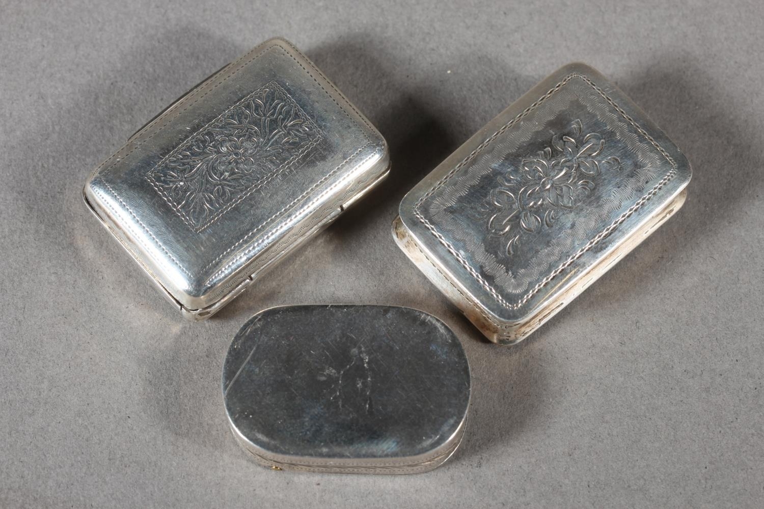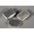 Two antique silver vinaigrettes, Nathaniel Mills and Thomas Shaw, Birmingham, and a small silver snuff box, Sam Pemberton, Birmingham, 44g.