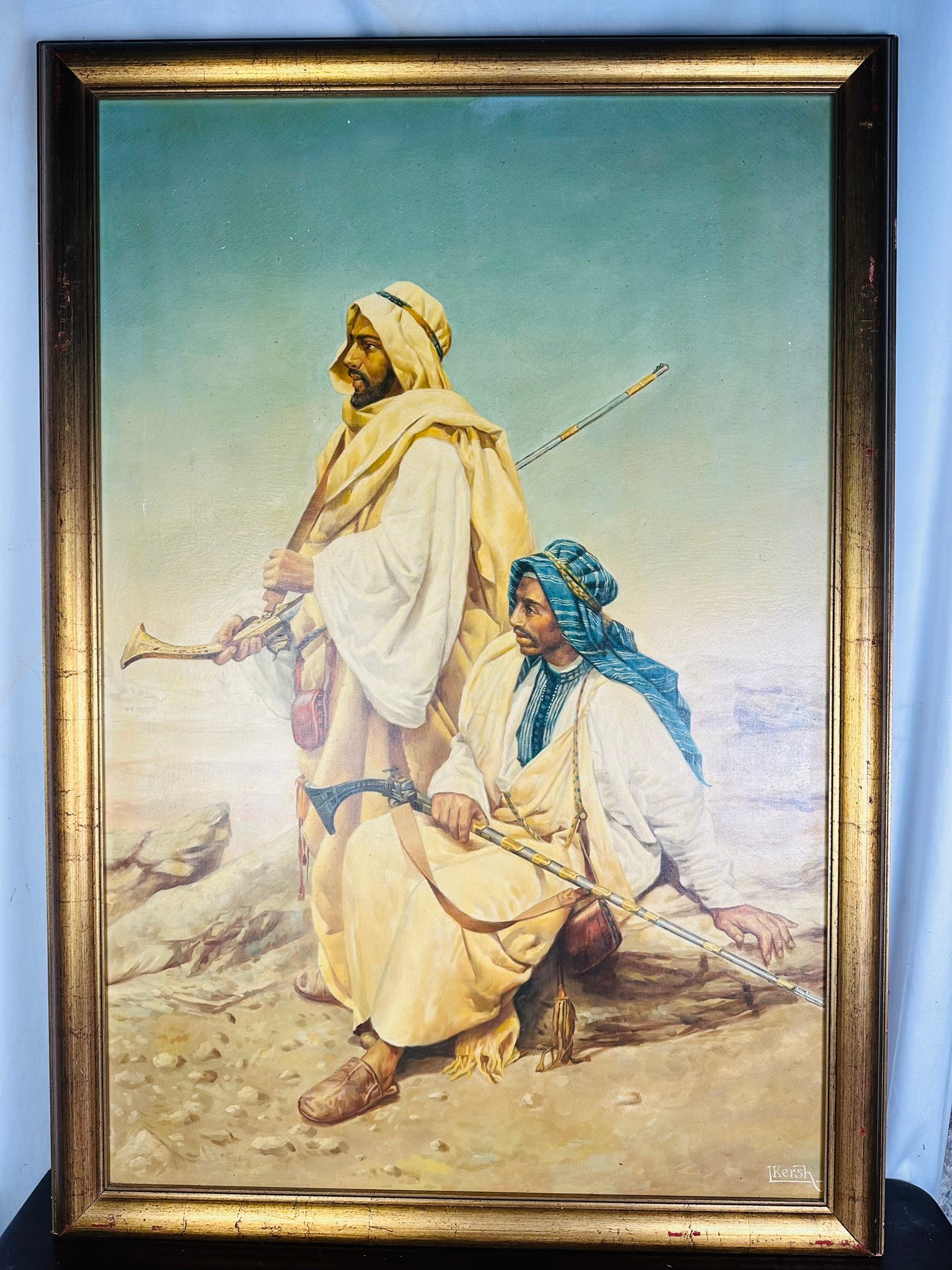 Charity Lot- I Kersh, Two Arabs,Oil painting, Frame 102cm x 71.5cm, Image 89cm x 59cm,sign