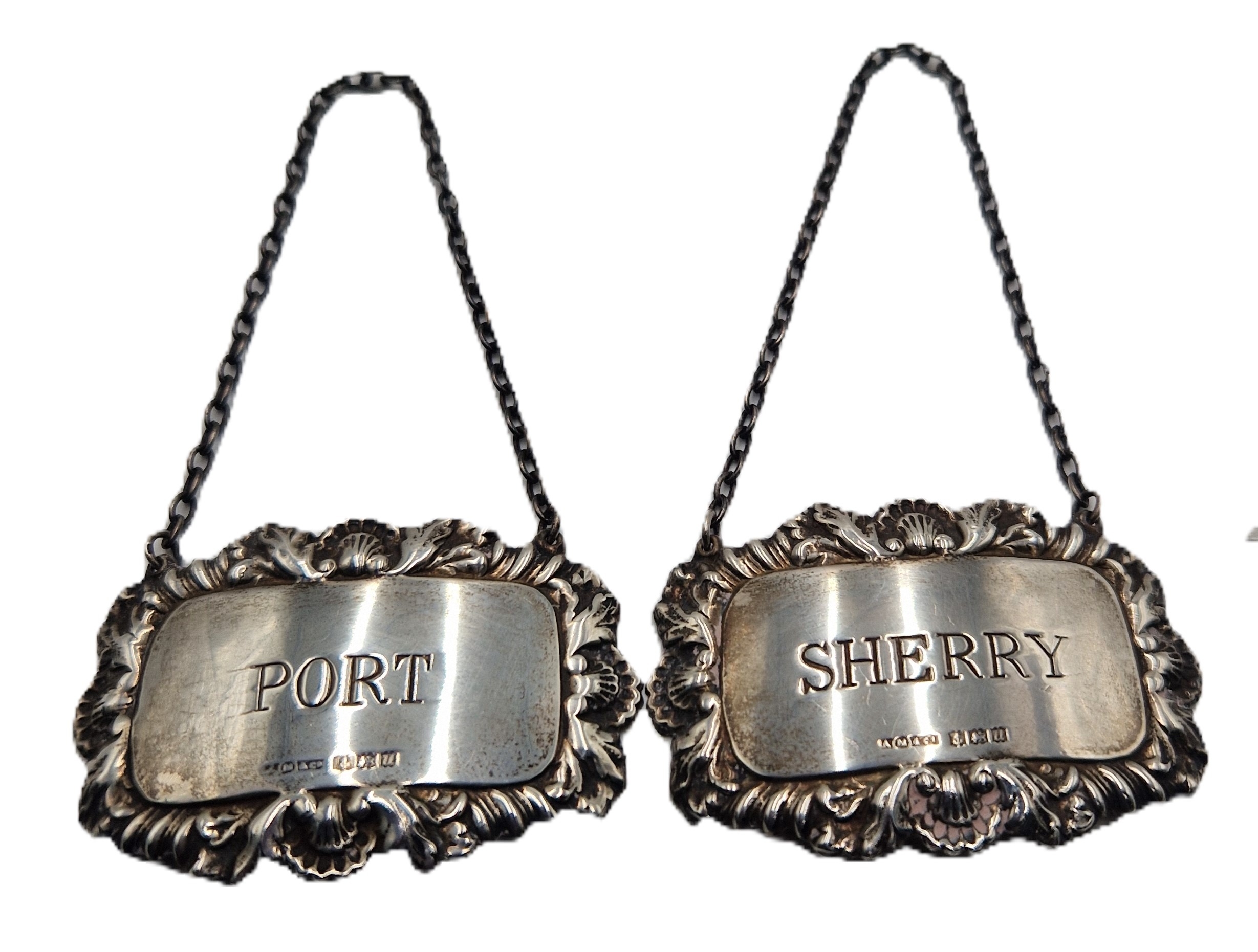 SILVER DECANTER LABELS (2) (Hallmarked For Birmingham 1969)