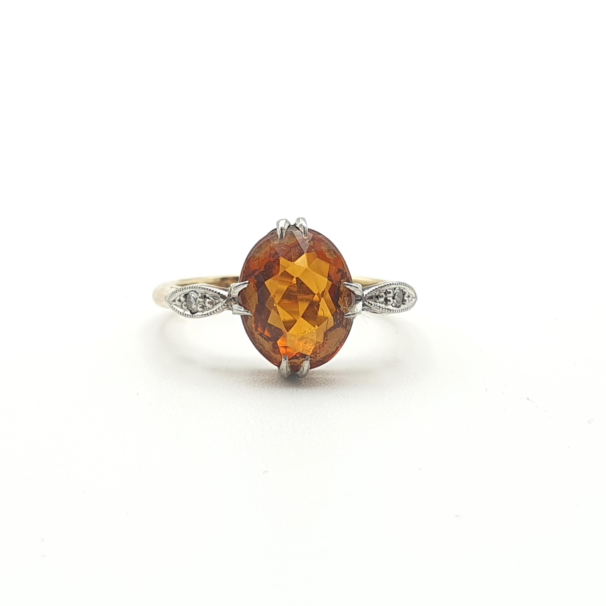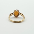 A Fire Opal and Diamond Ring claw-set oval-cut fire opal between two millegrain-set eight-cut diamonds in 18ct gold, ring size M, approx 3.3gms
