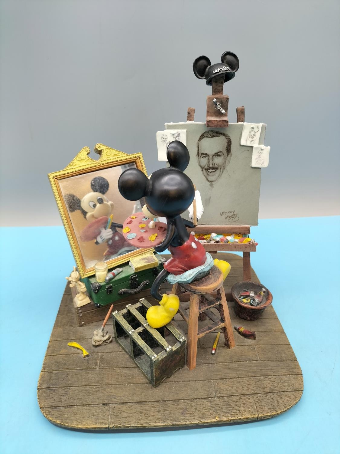 Disney 'Mickey Mouse Self Portrait' Figurine, Charles Boyer Edition. 20cm High, 17cm x 17cm.