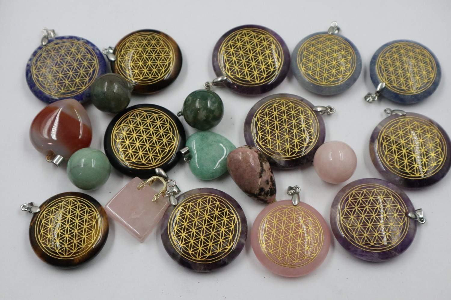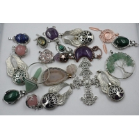 Twenty semi-precious stone pendants. UK P&P Group 2 (£24+VAT for the first lot and £5+VAT for subsequent lots)