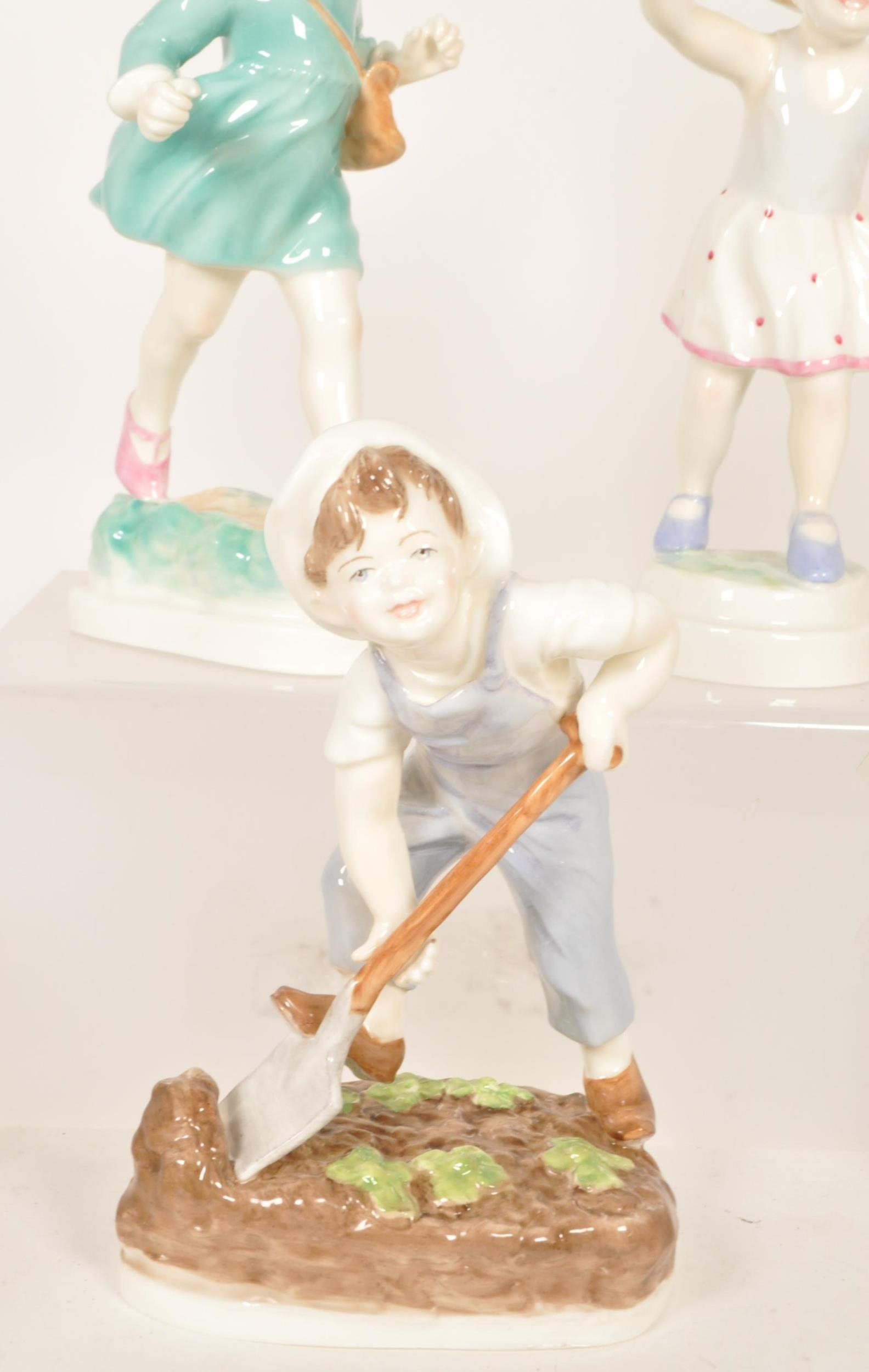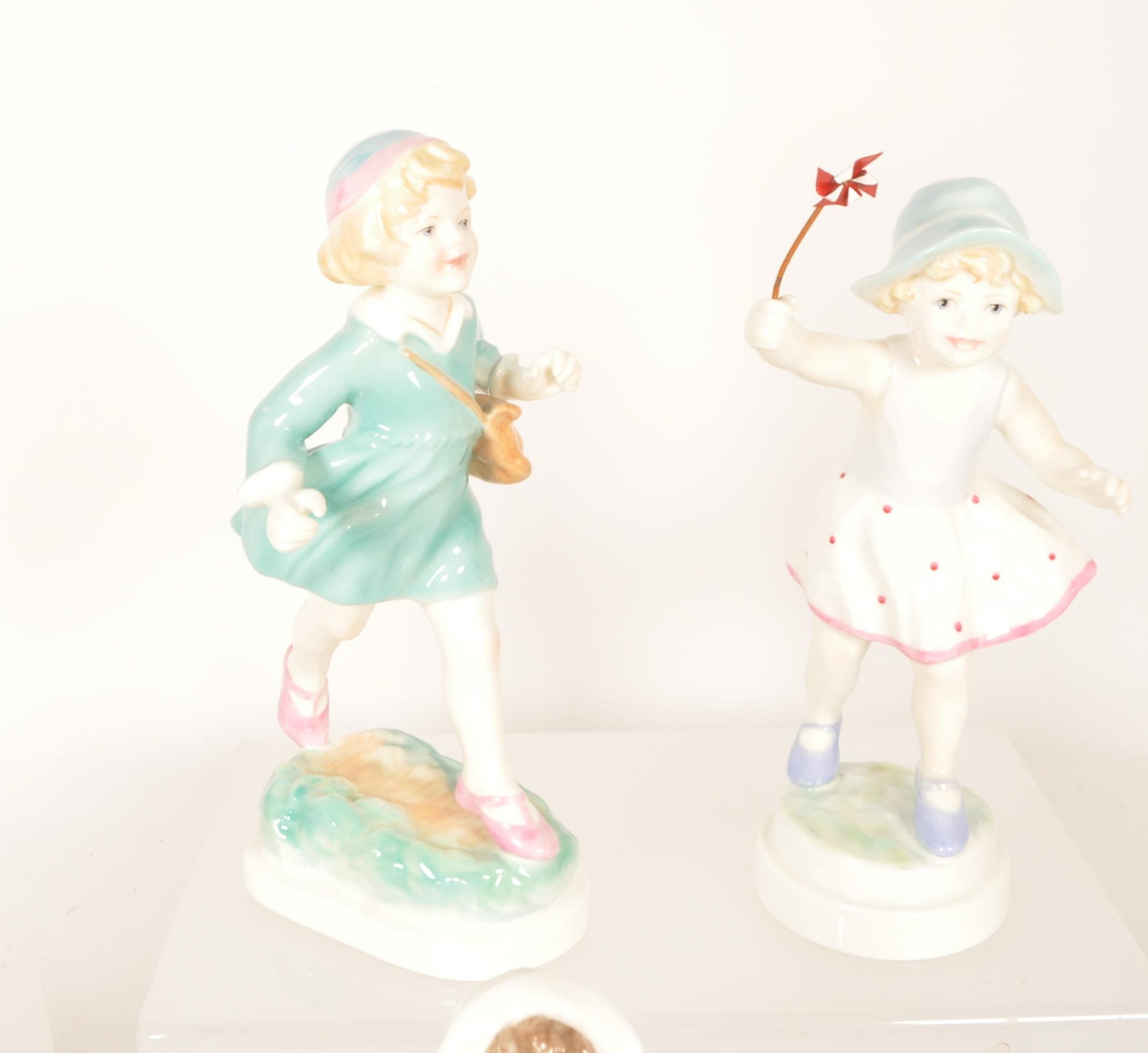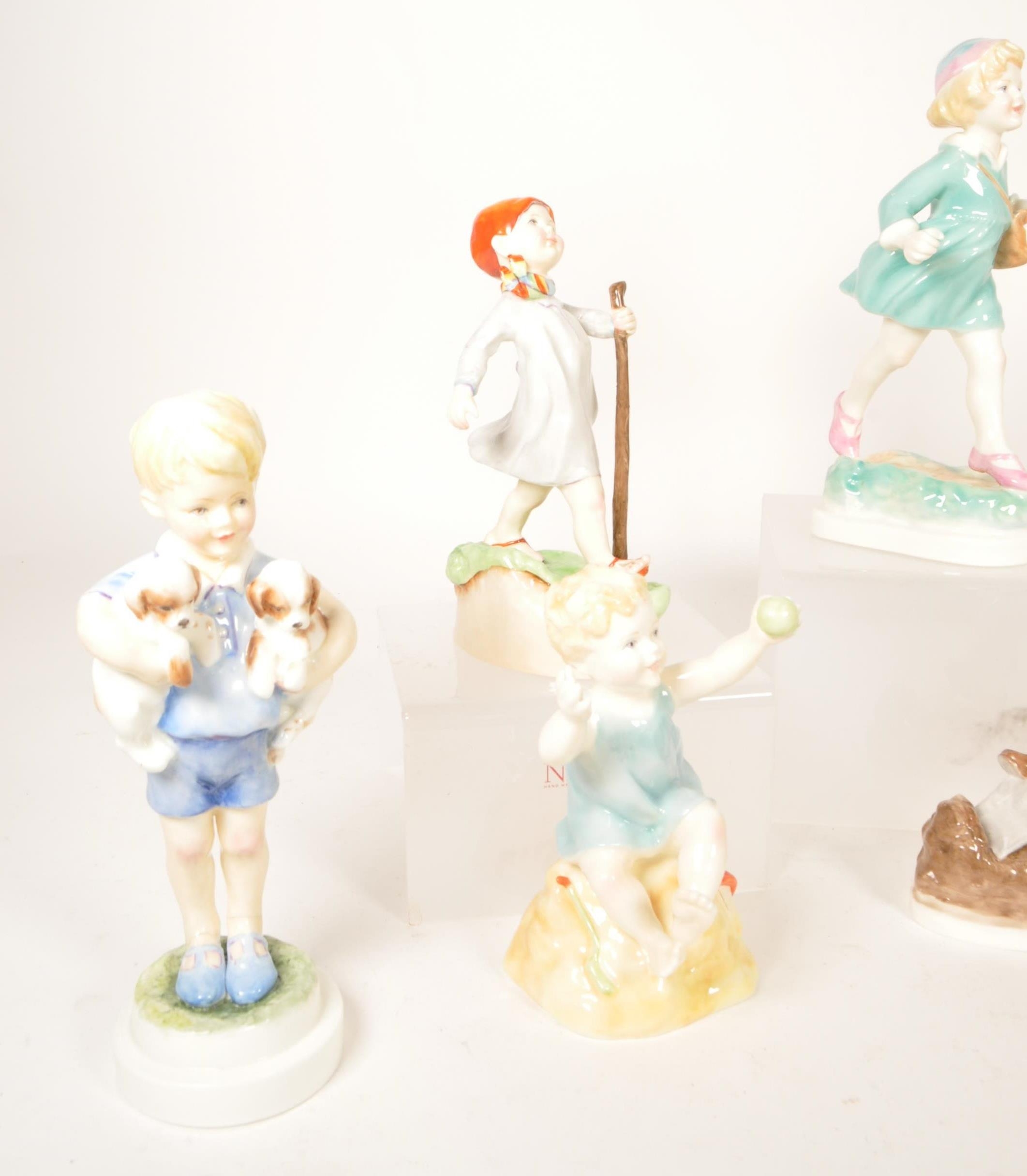 Royal Worcester - Collection of ten 20th century bone china Children of The Week figures. Examples including Monday's child if fair of face 3519, Wednesday's child is full of woe 3258, Thursday's child has far to go 3260, Friday's child is loving and giving, Saturday's child works hard for a living, and more. All with their makers marks to the underside. Largest measuring approx. 19.5cm tall.
