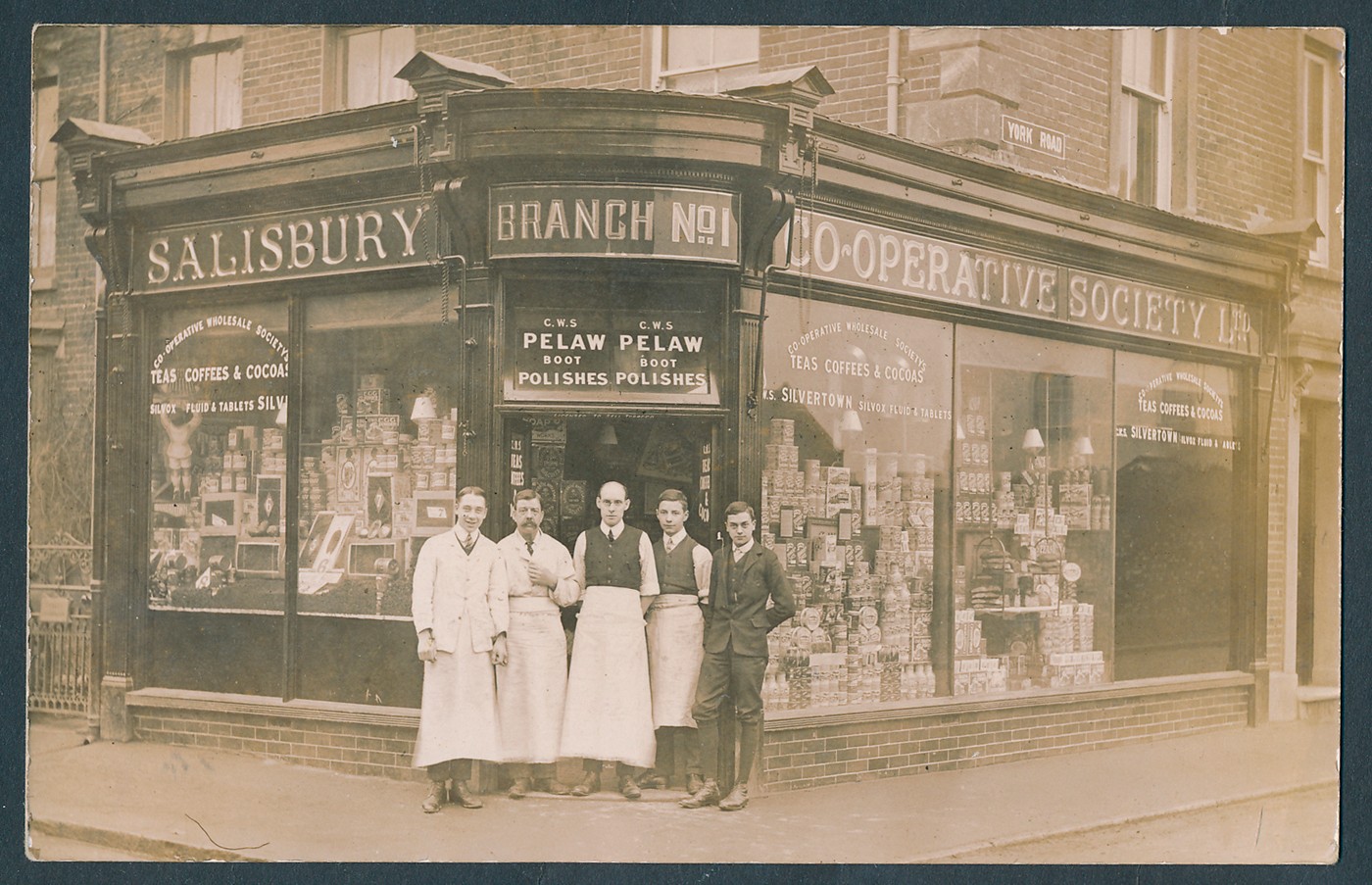 Wiltshire. Salisbury. Coln. in modern album and box of loose cards. RPs flood, Infirmary, processions, lorry accident W.M. Chalke and sons., market, Coronation celebrations, Manor Road, Devizes Road, Fairview Road, fire, carnival, shopfront Co-op York |Road (see photo), motorcycles at the Road Club, Silver Street, Petersfinger etc. Ptd. street scenes and general views. Photos also noted. Qty. approx. 500 (B)