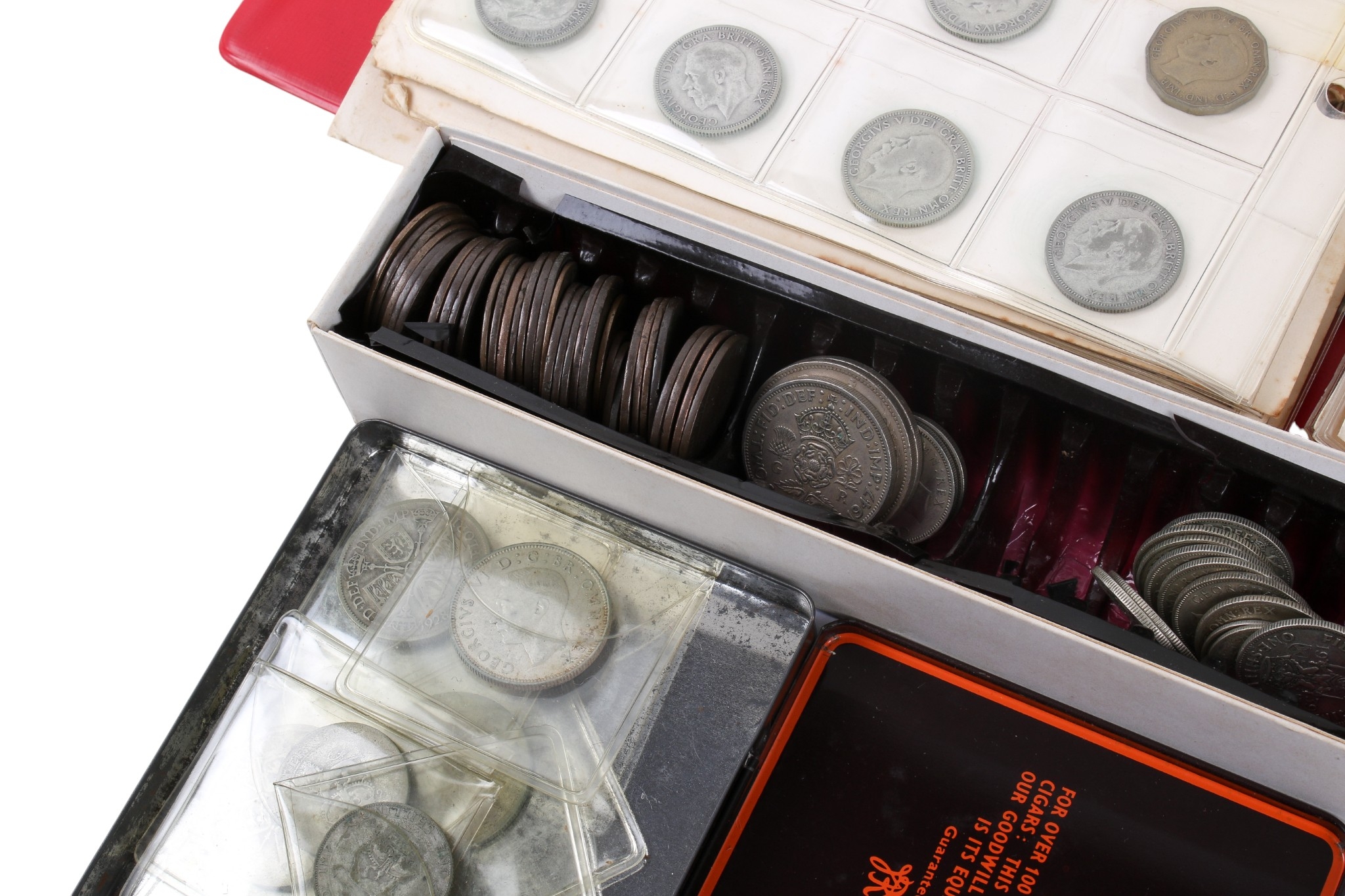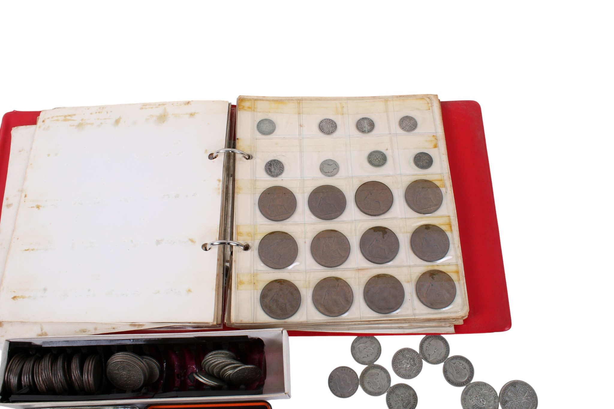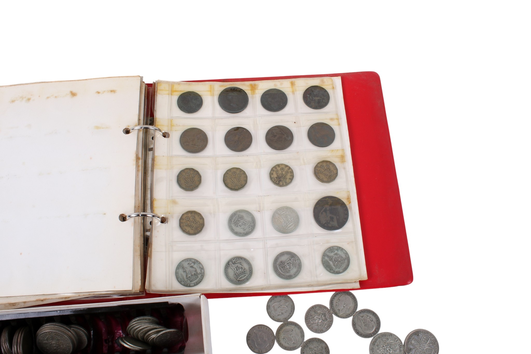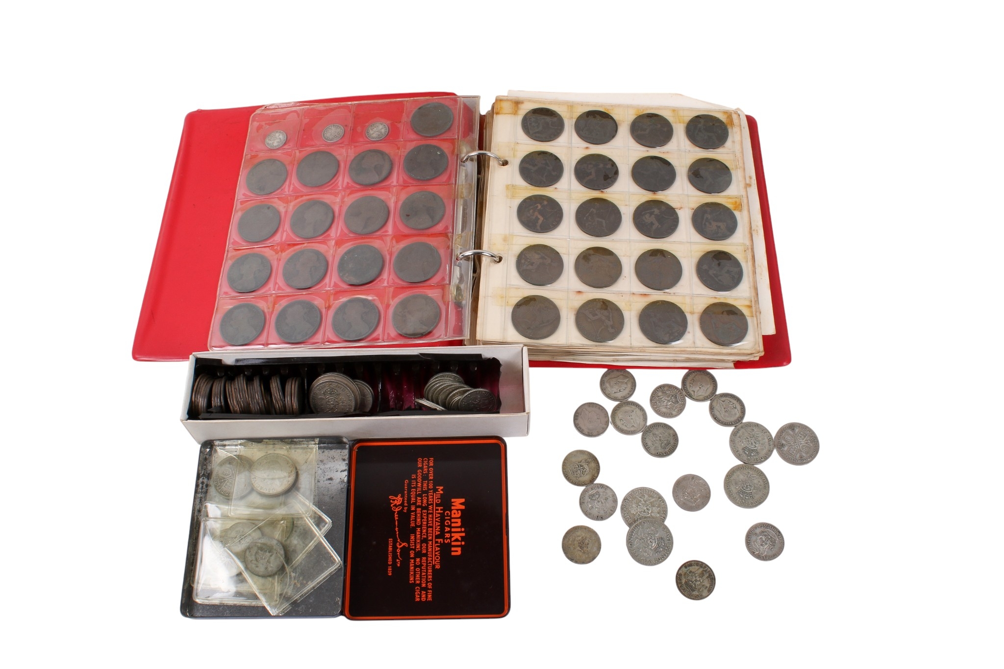 An album of pre-decimal coins. With a good quantity of pre-1947 silver and also pennies, 1/2 pennies and farthings