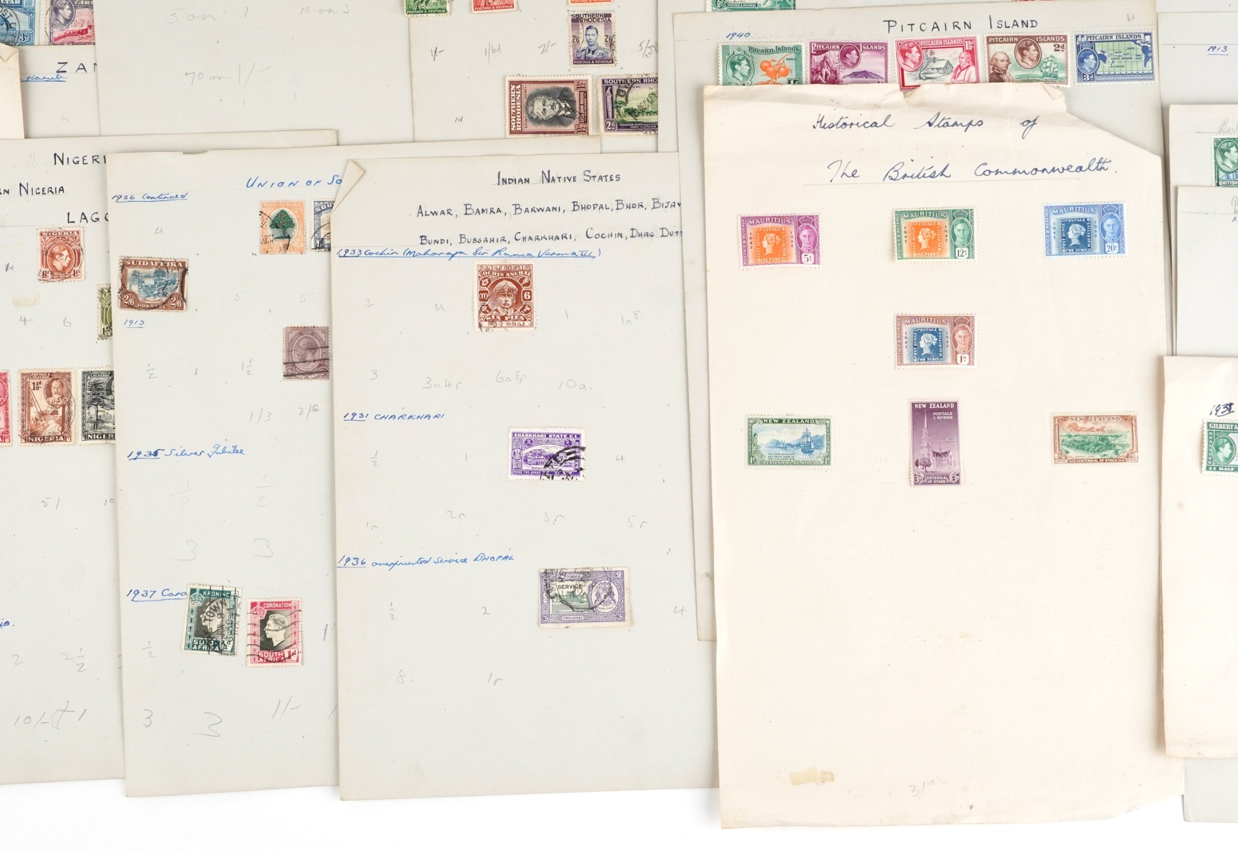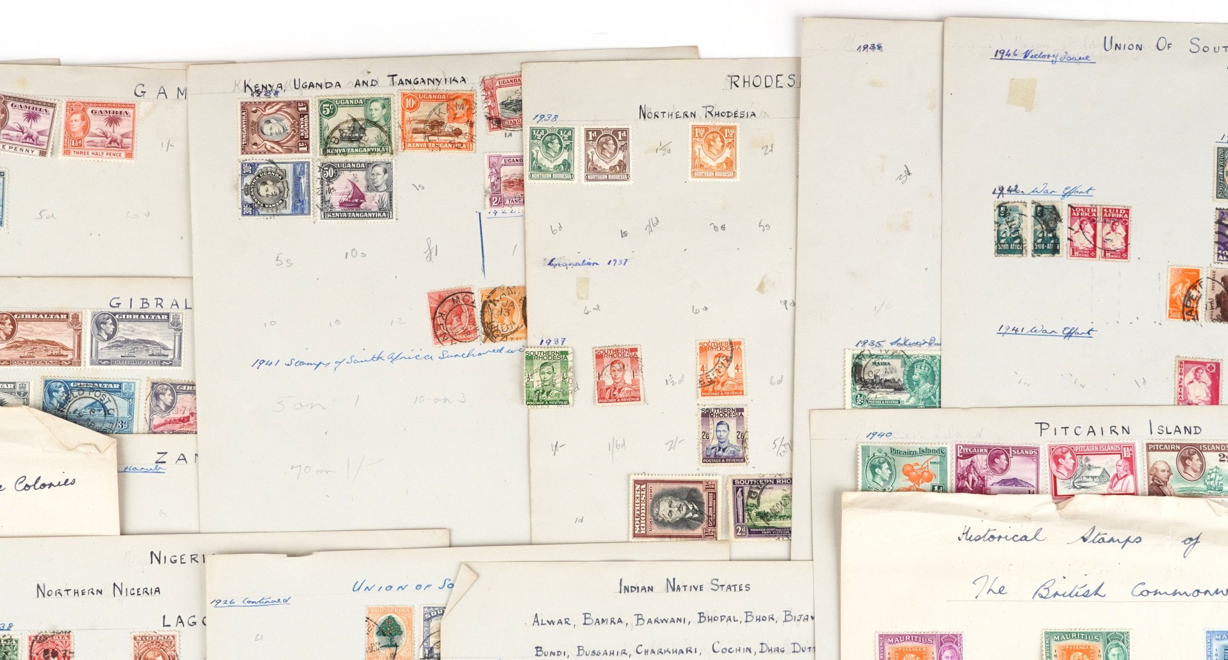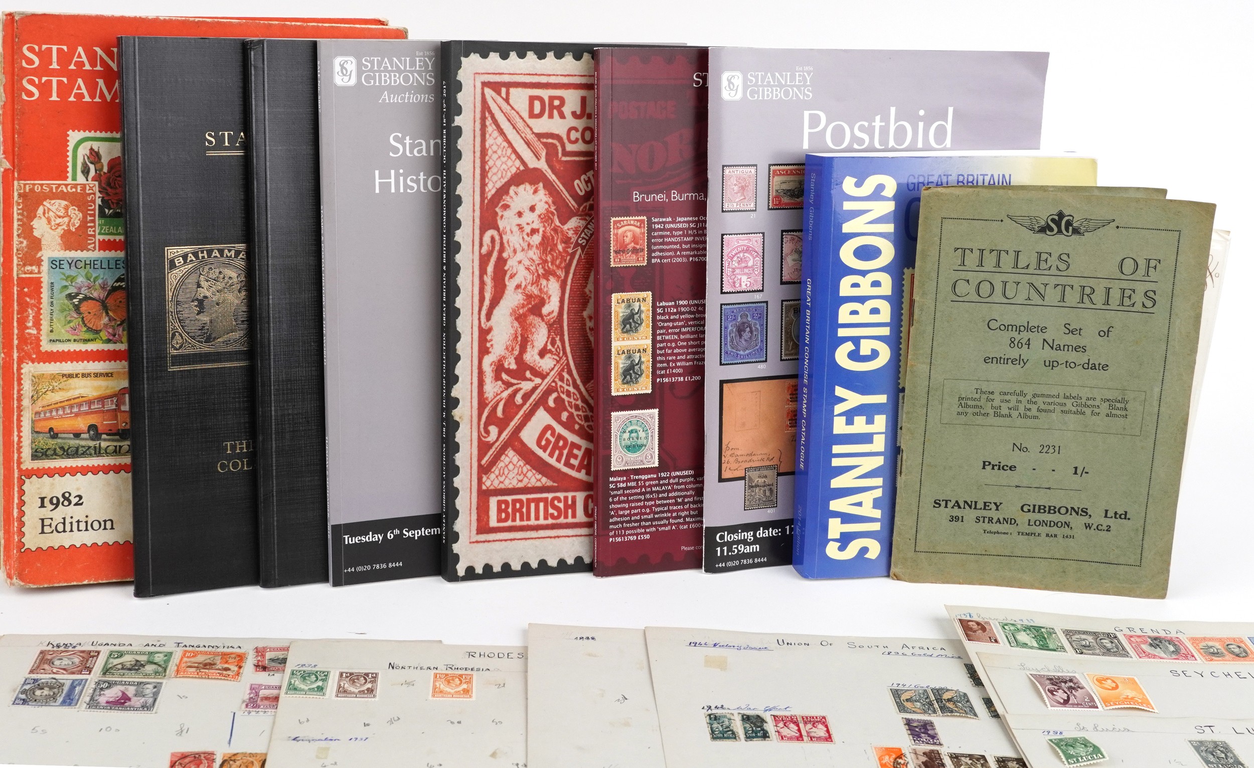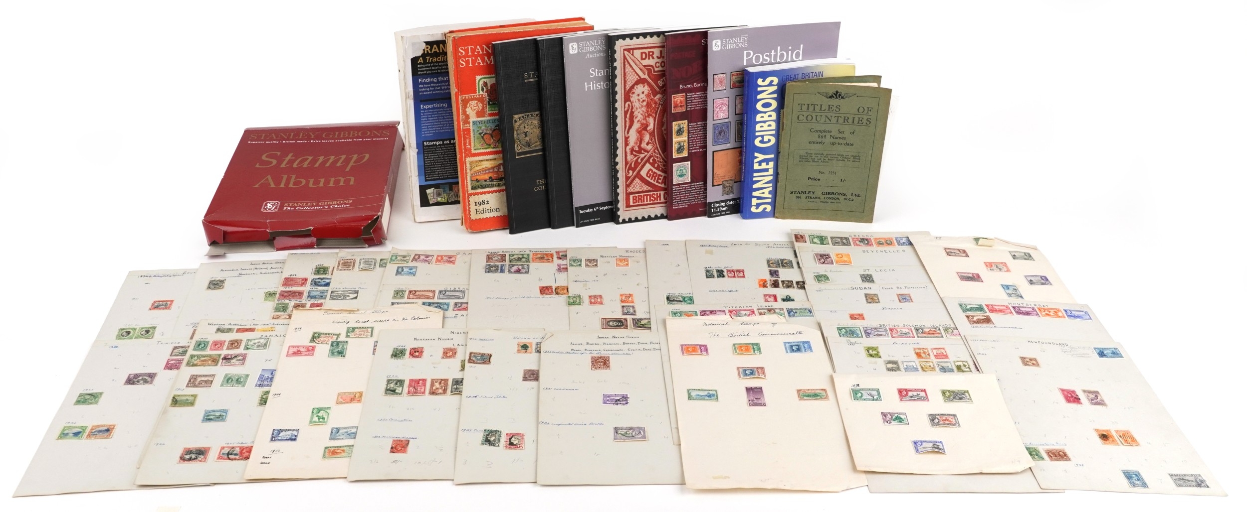 George V and later Commonwealth stamps in mint and used condition including Gambia, Somaliland, Grenada, Gilbert & Ellis Islands together with a quantity of Stanley Gibbons auction catalogues including The Charles Freeman Collection of Bahamas, auction dated March 2019, The Joseph Oster Collection of Long Island and Madagascar March 2019, a Stanley Gibbons 2017 auction catalogue for Dr. J.M. Dunlop Collection of Great Britain and Commonwealth stamps, a quantity of Stanley Gibbons loose leaf unused pages and a Great Britain Concise catalogue.