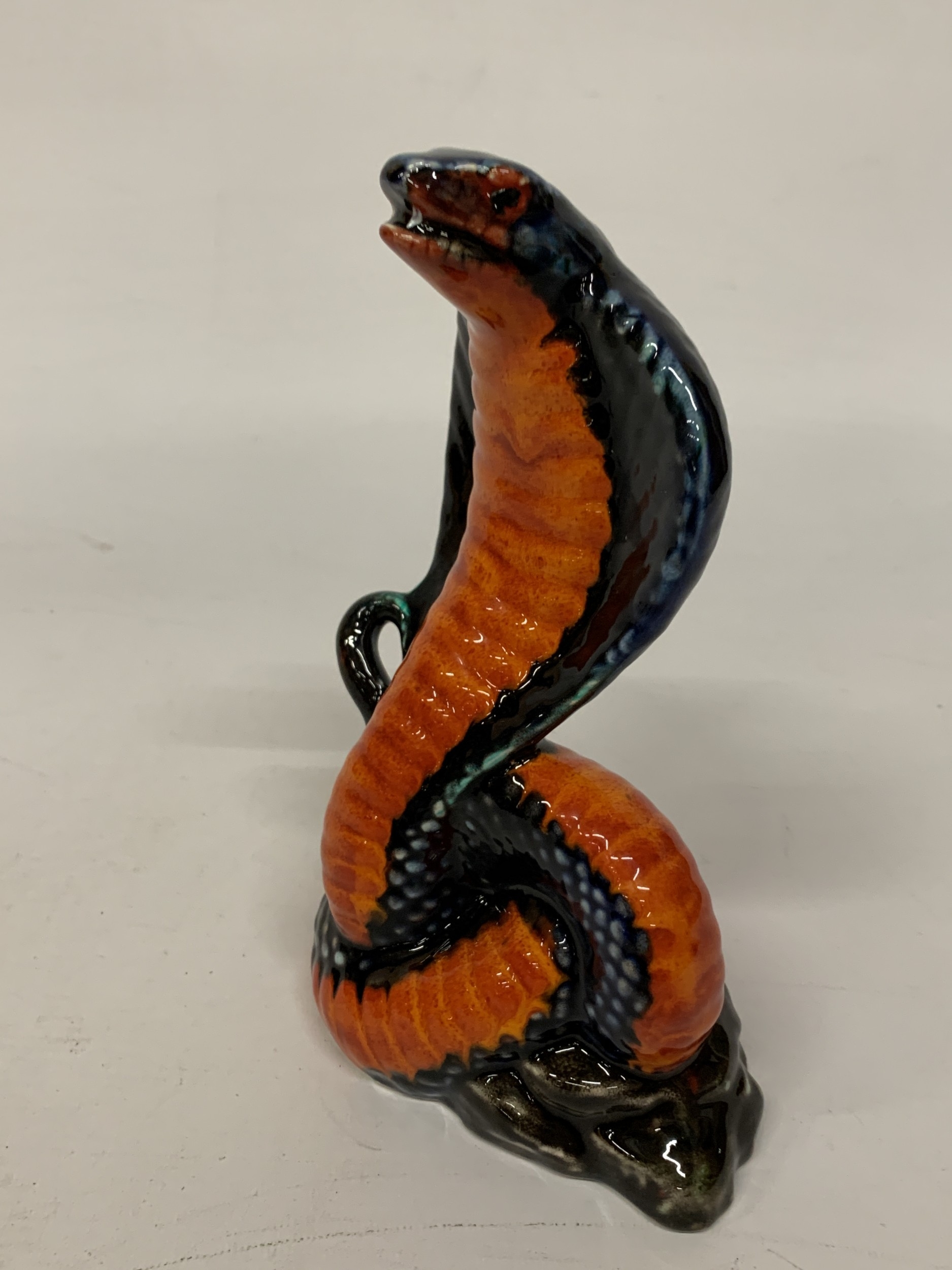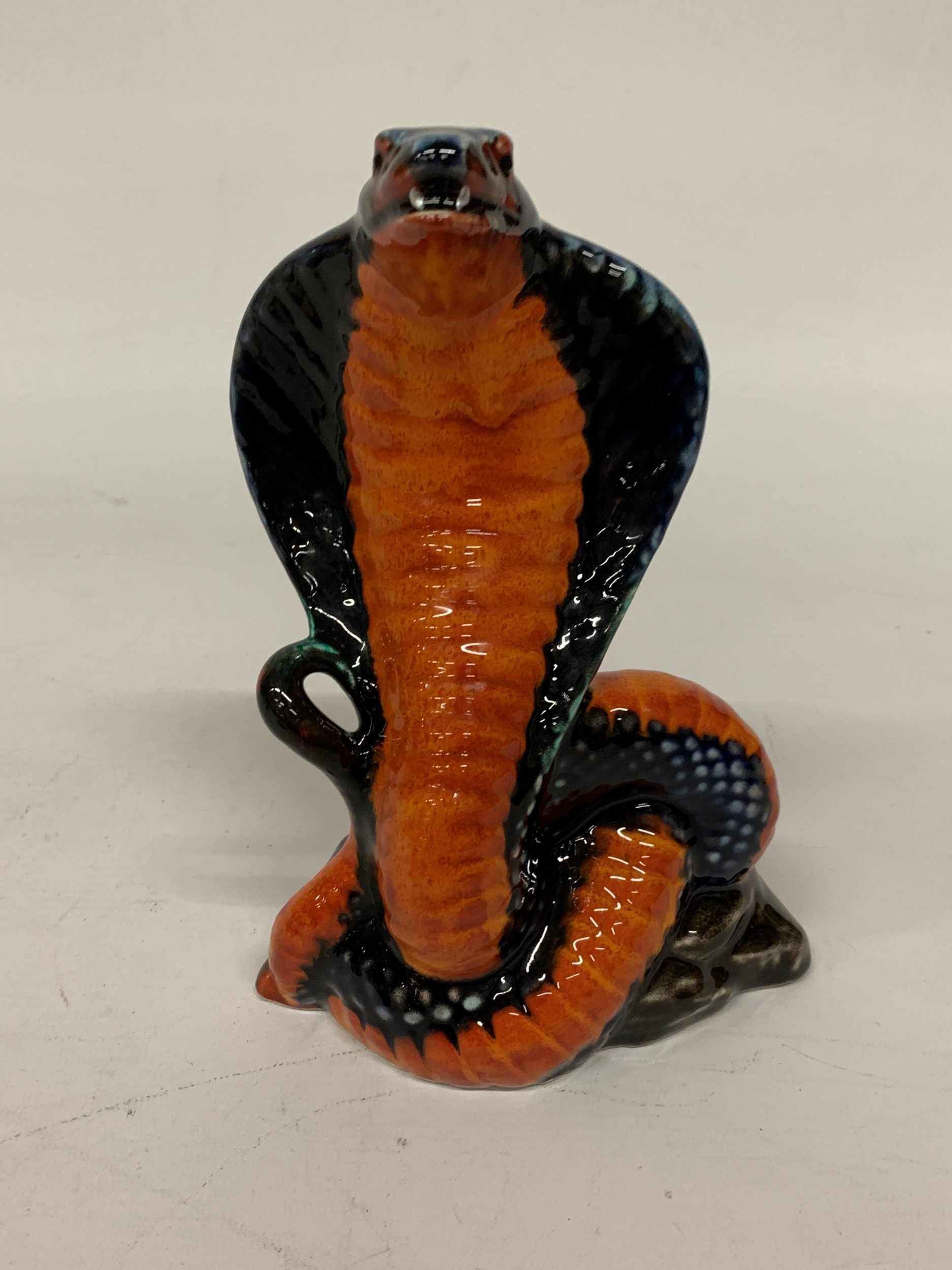 AN ANITA HARRIS KING COBRA SNAKE, SIGNED IN GOLD