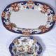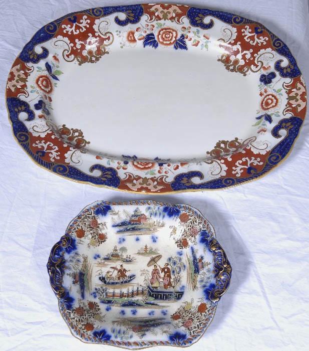 Large Victorian red & blue pattern Ironstone meat platter & a smaller oriental pattern platter -